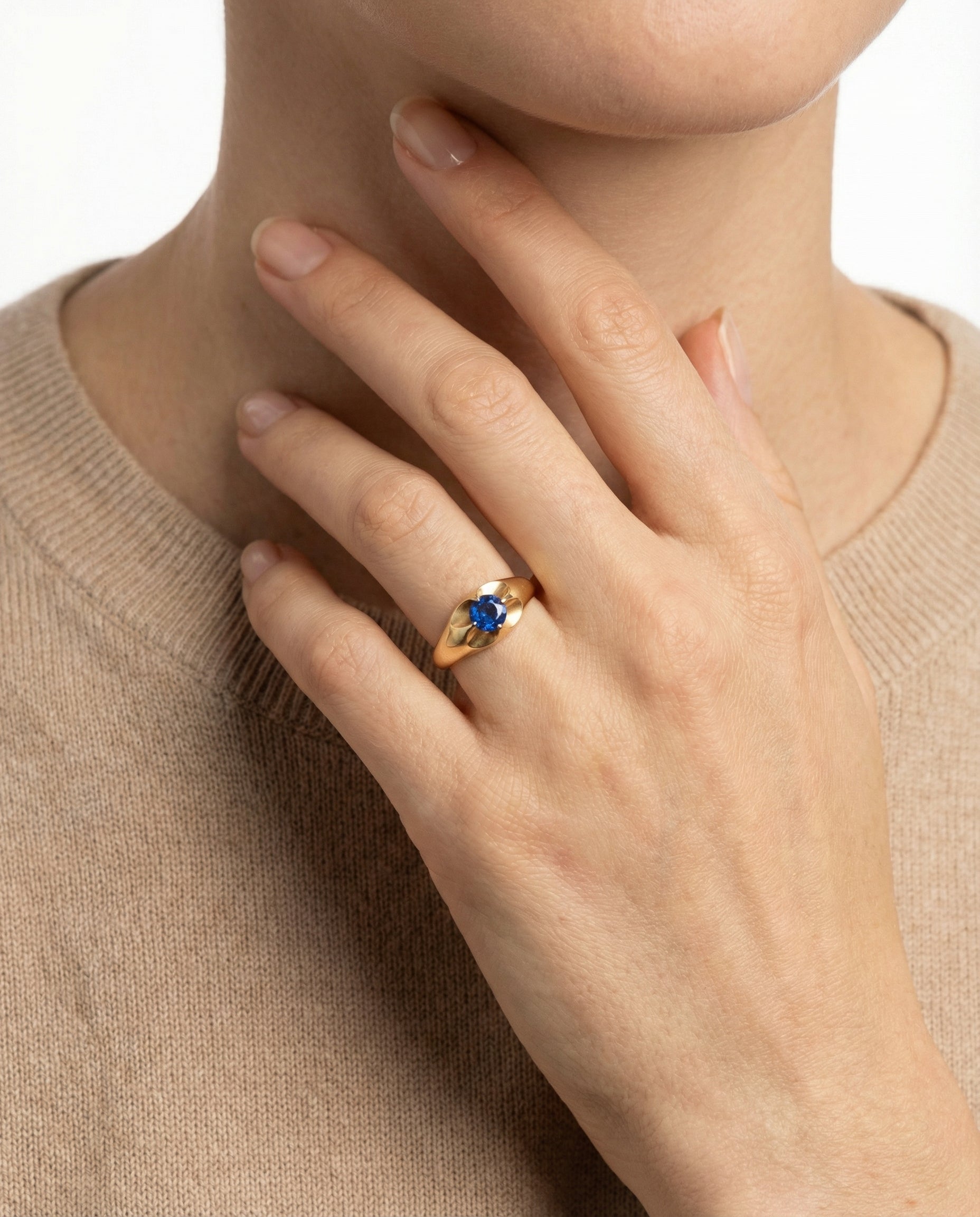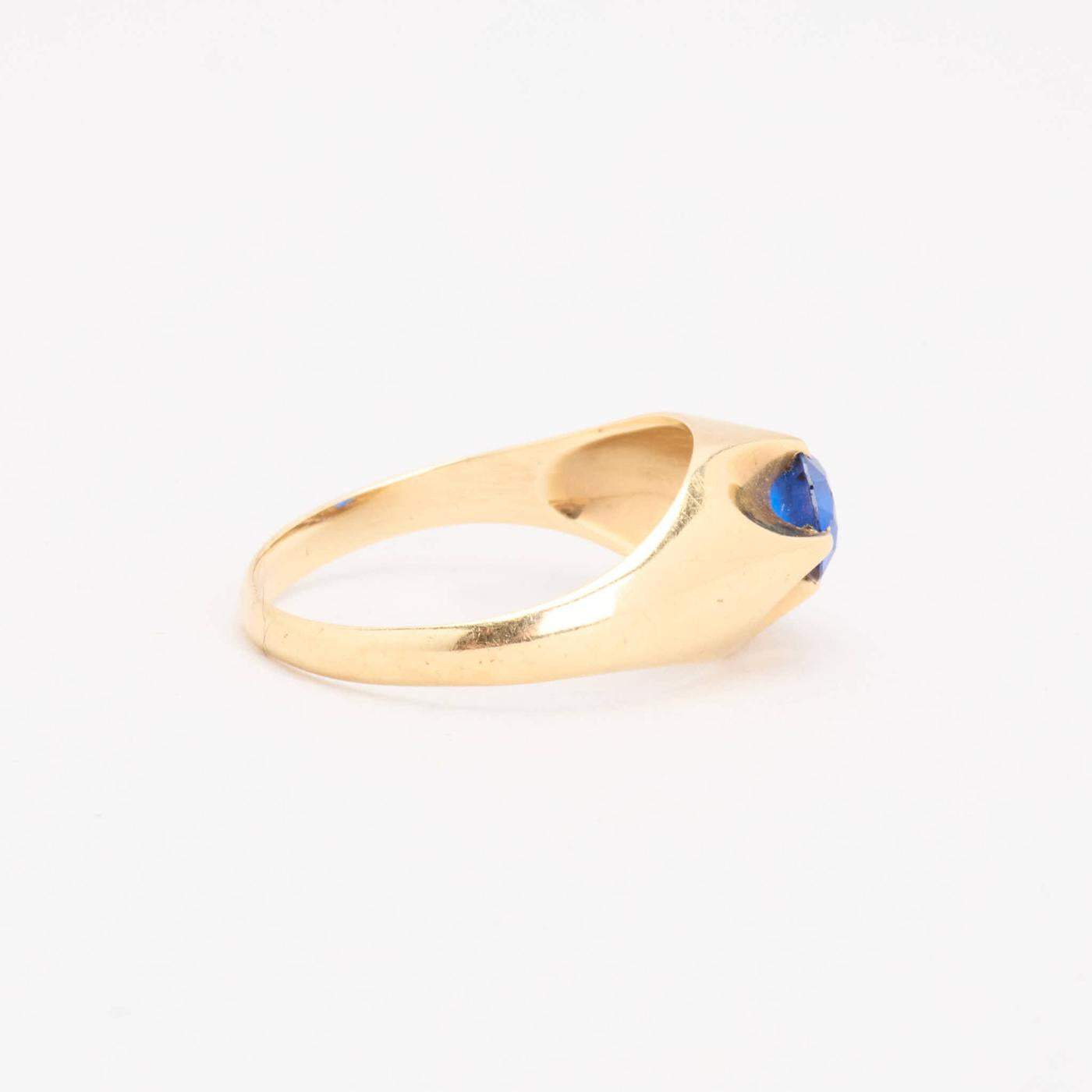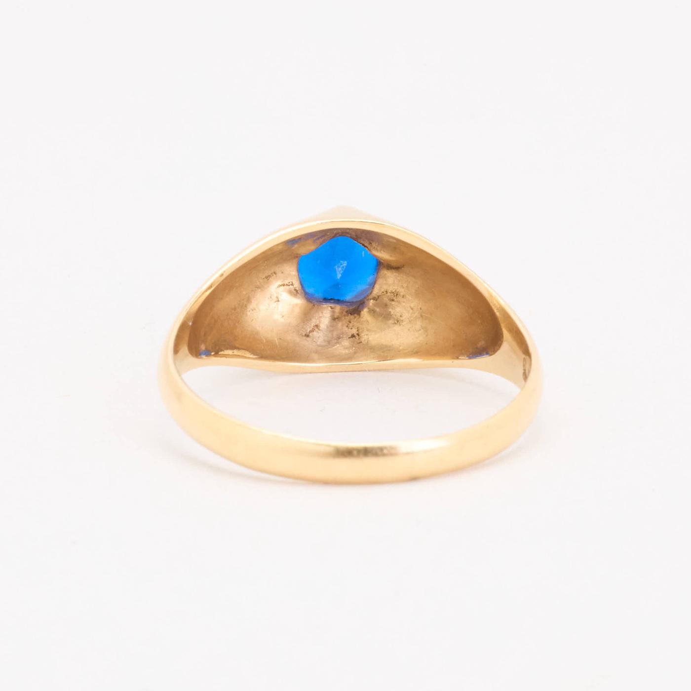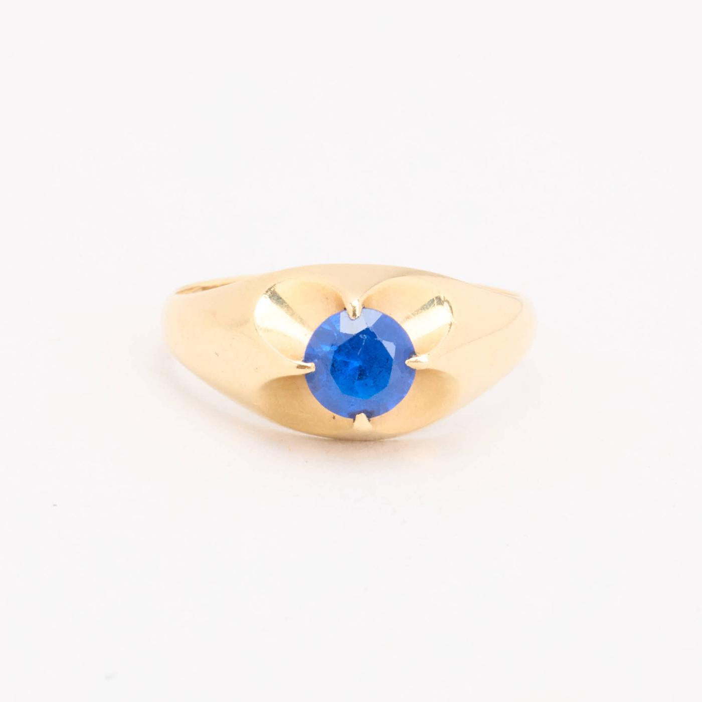 Signetring i 14K guld med en blå sten, Str. 55, 2.4 g