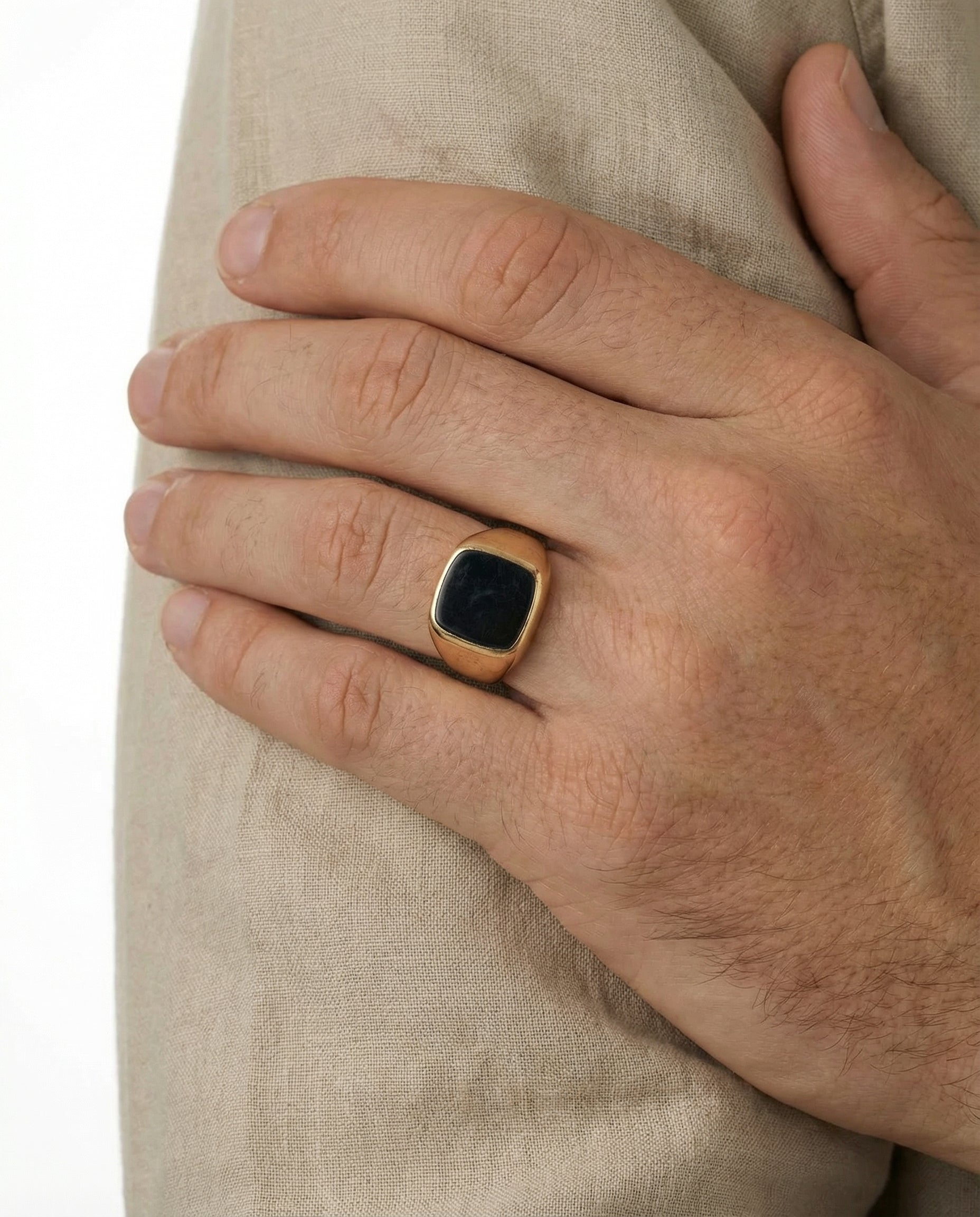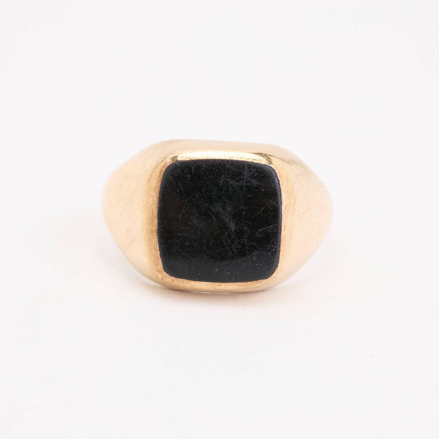 Signetring i 8K guld med onyks, Str. 70, 4.2 g