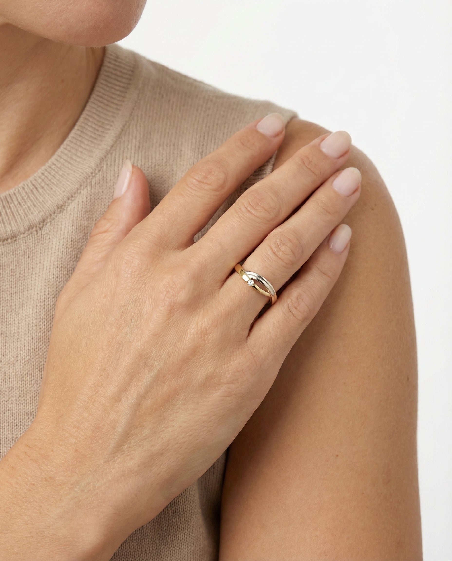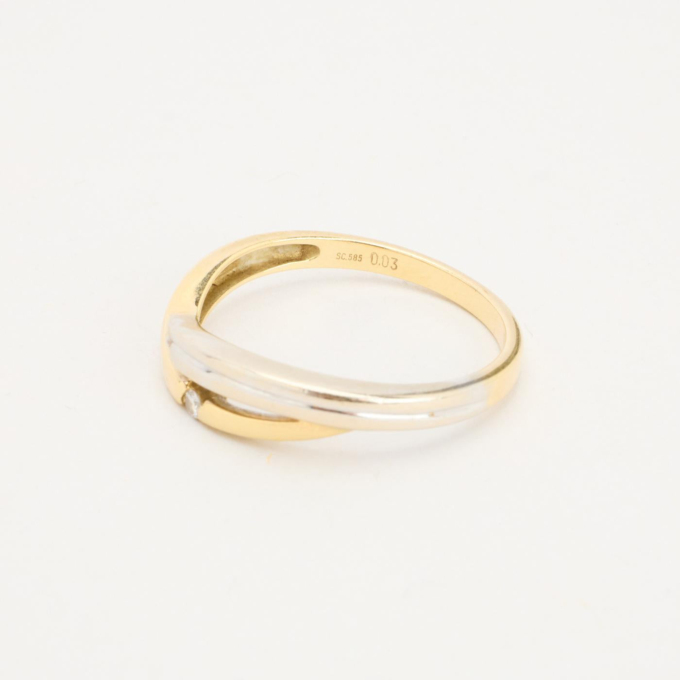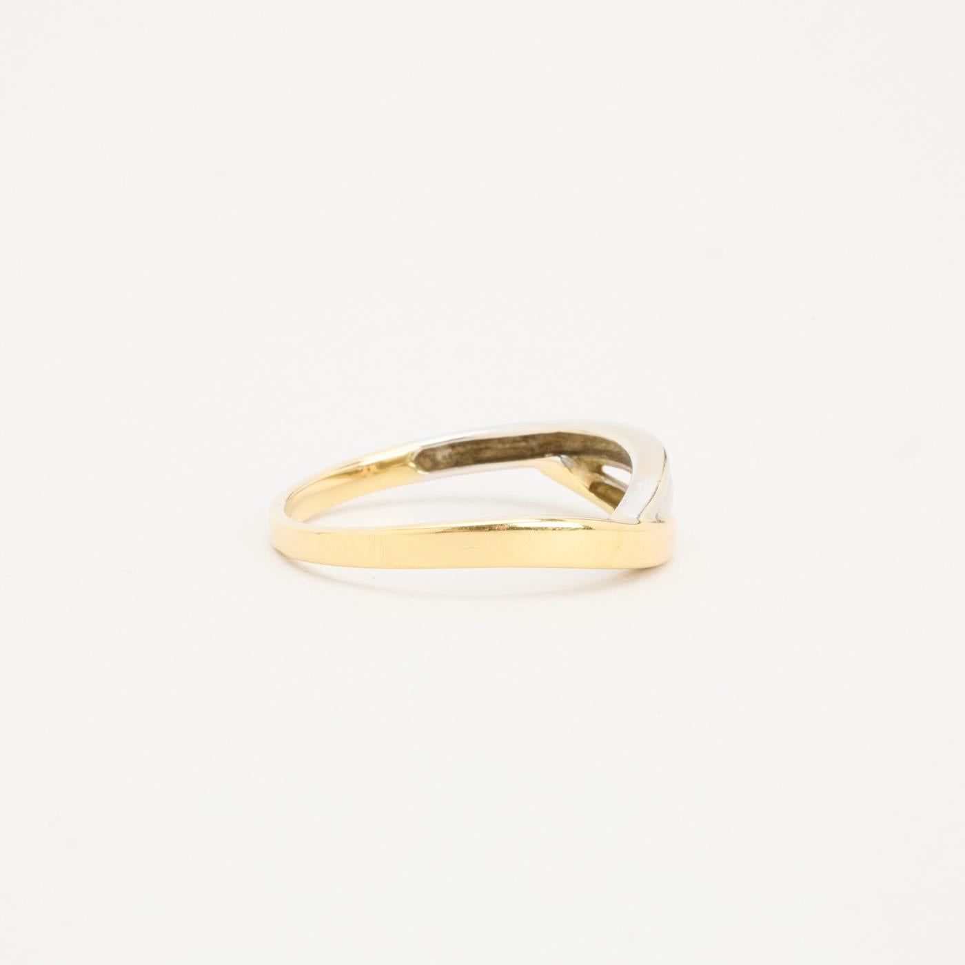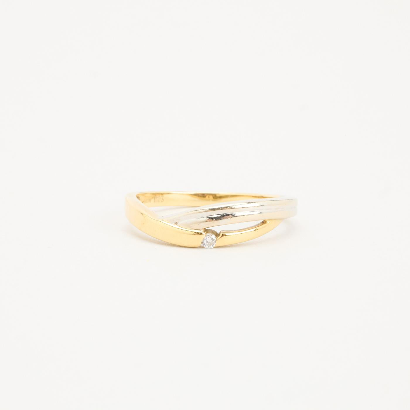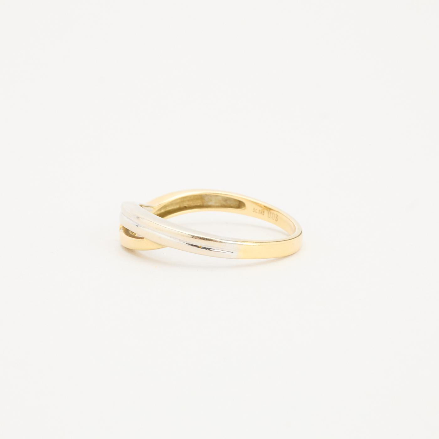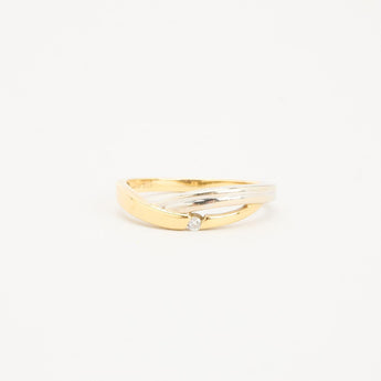 Crossoverring i 14K guld og hvidguld med en diamant (0.03 ct), Str. 57