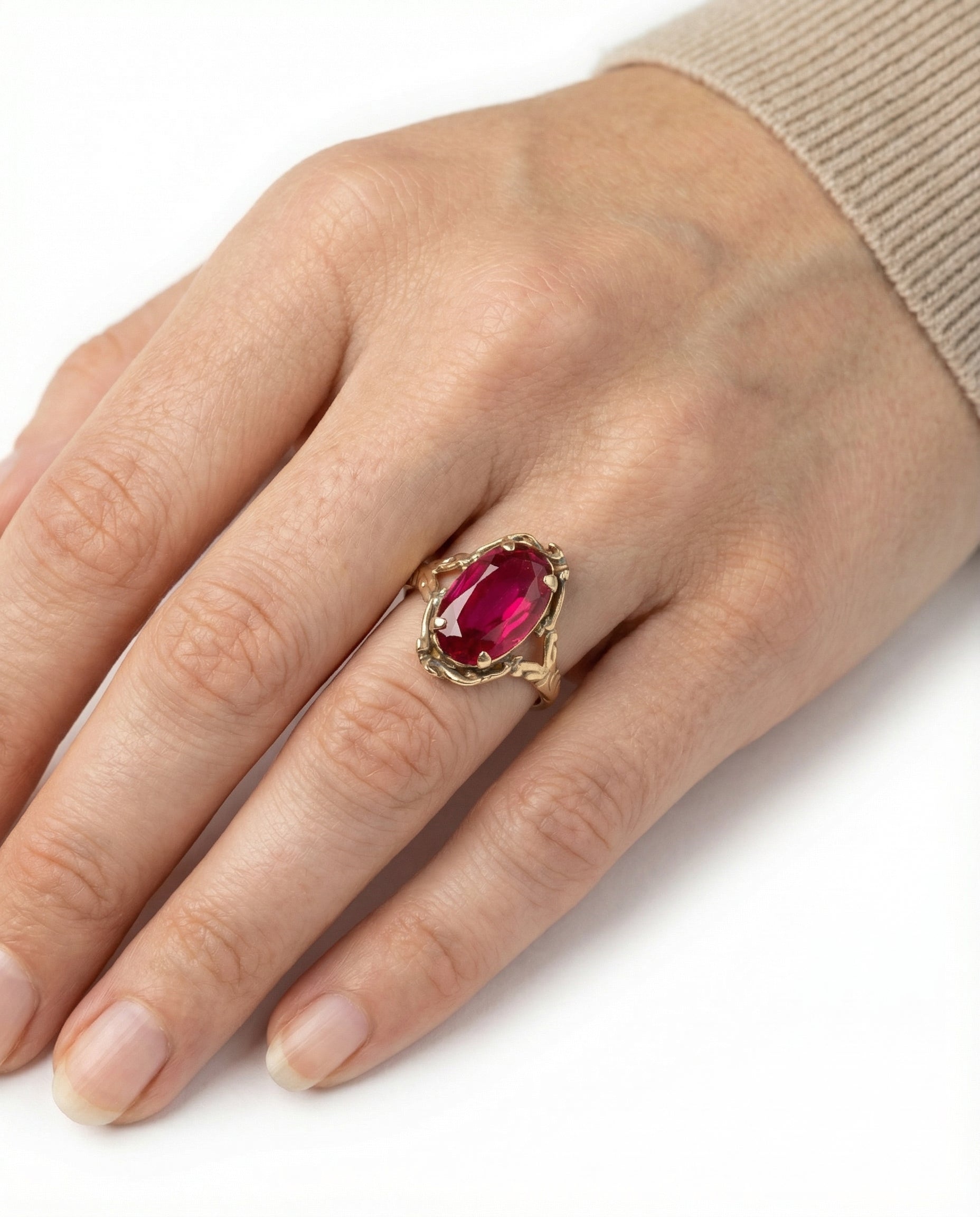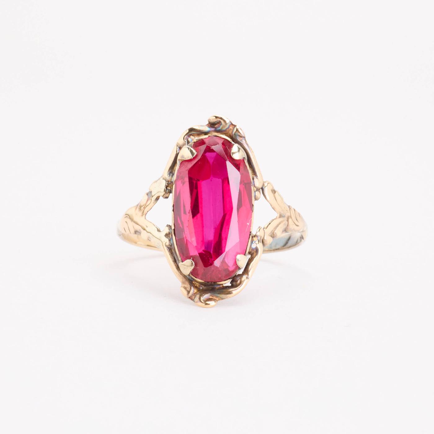 Navettering i 8K guld med en syntetisk safir, Str. 60, 1.8 g