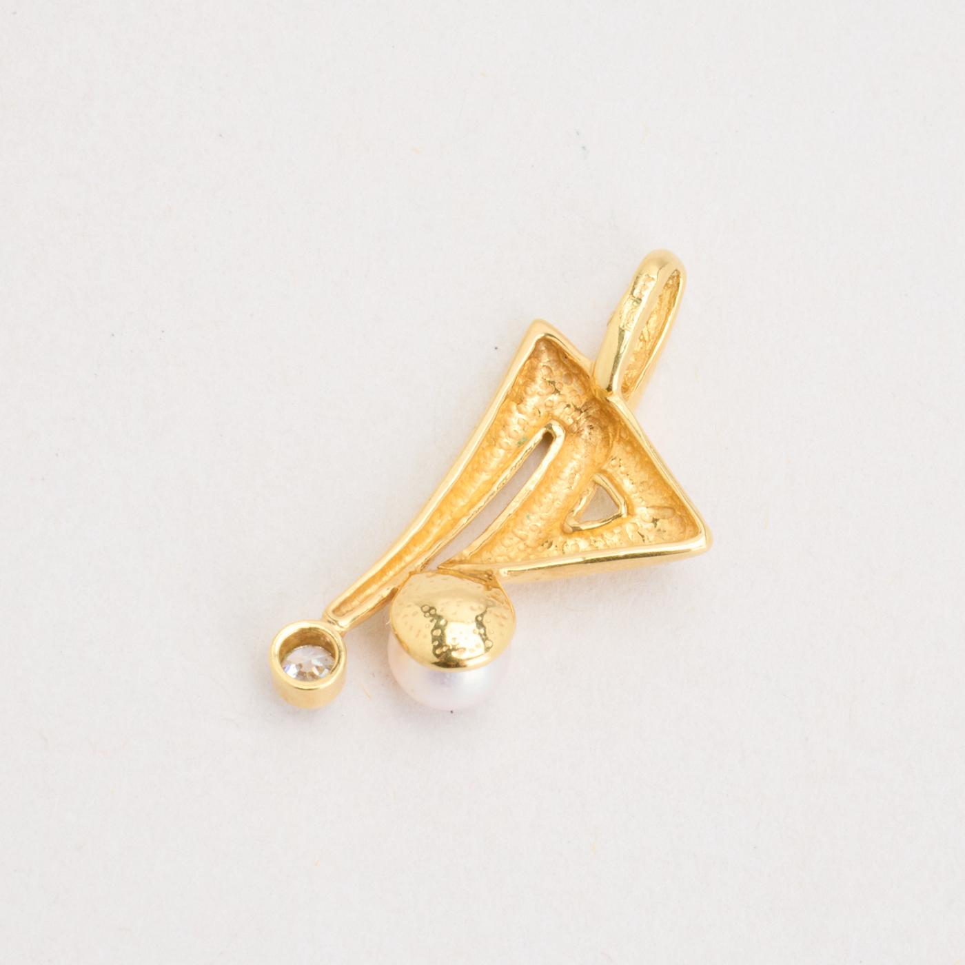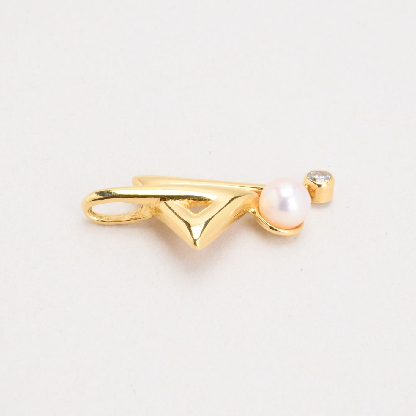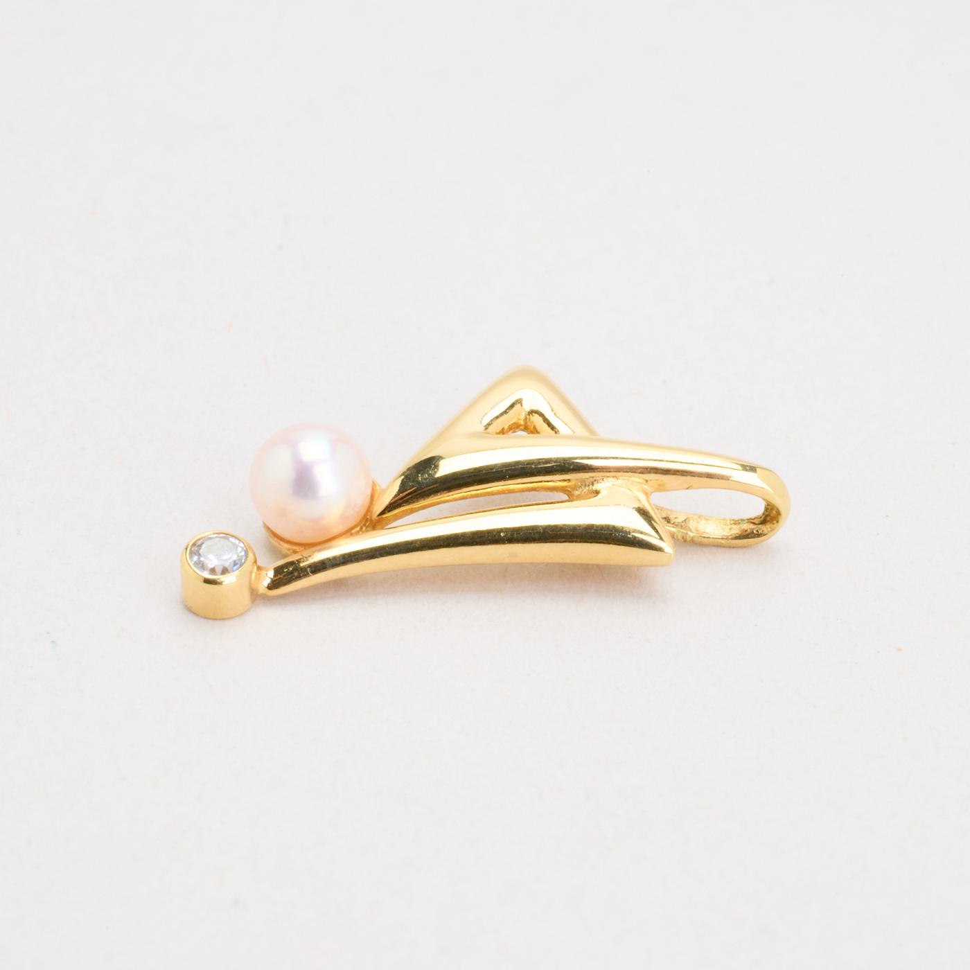 Vedhæng i 8K guld med en zirkonia og en perle, 2,5 cm, 0,93 g