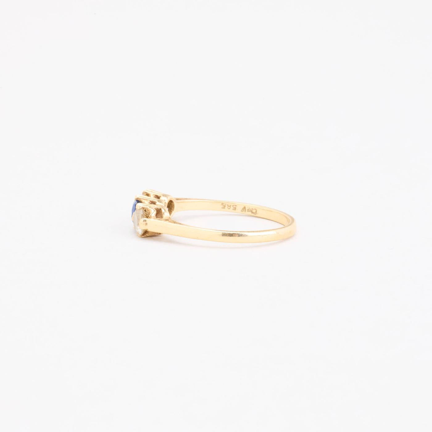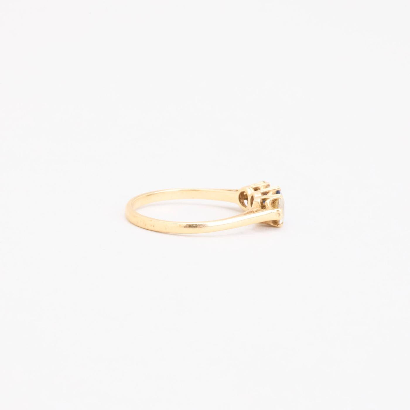 Trestensring i 14 karat med farvede sten str. 51