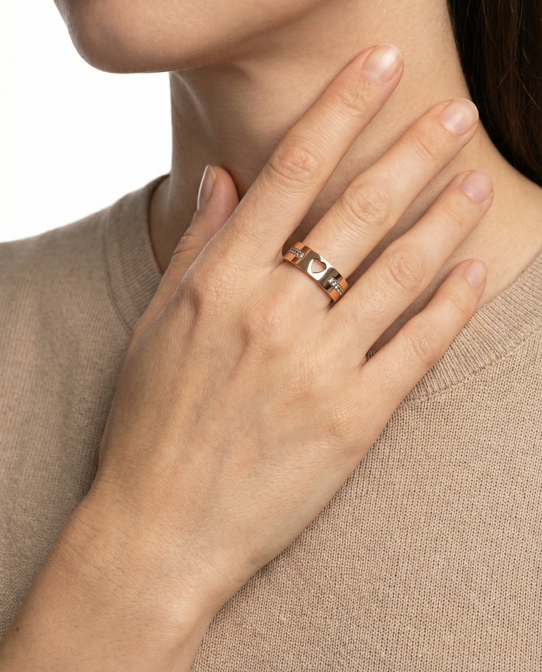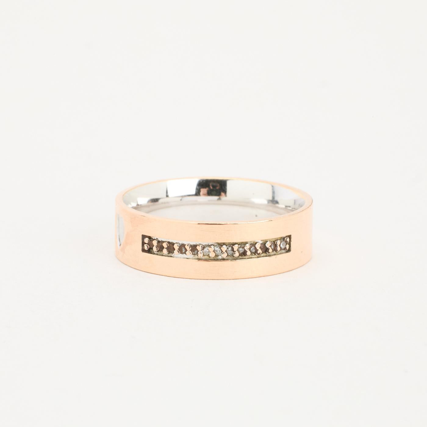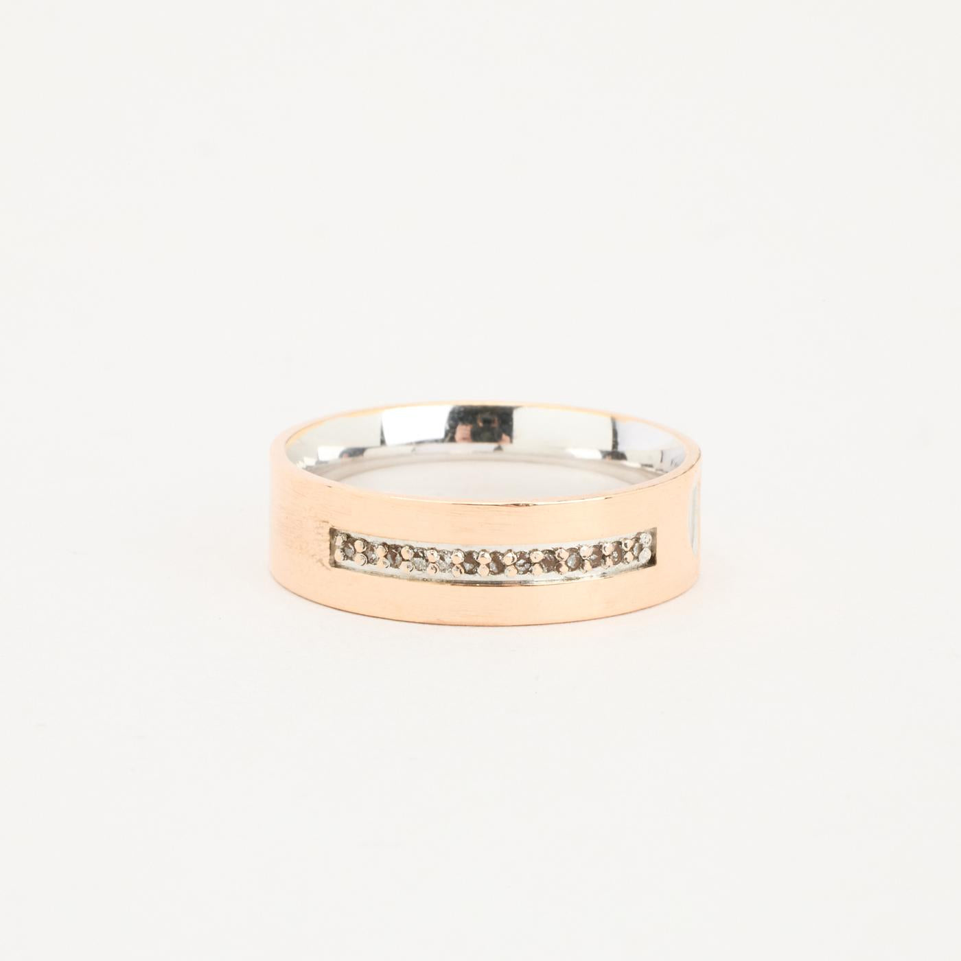 Bånd i 14K guld med hvide sten (0.08 ct), Str. 58, 6.68 g