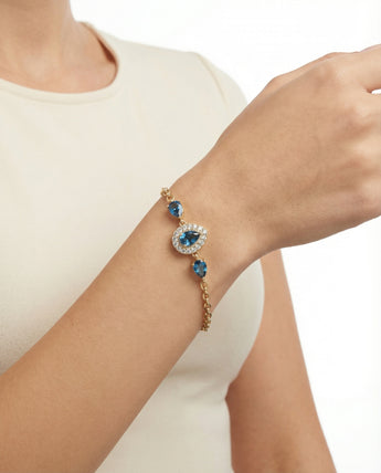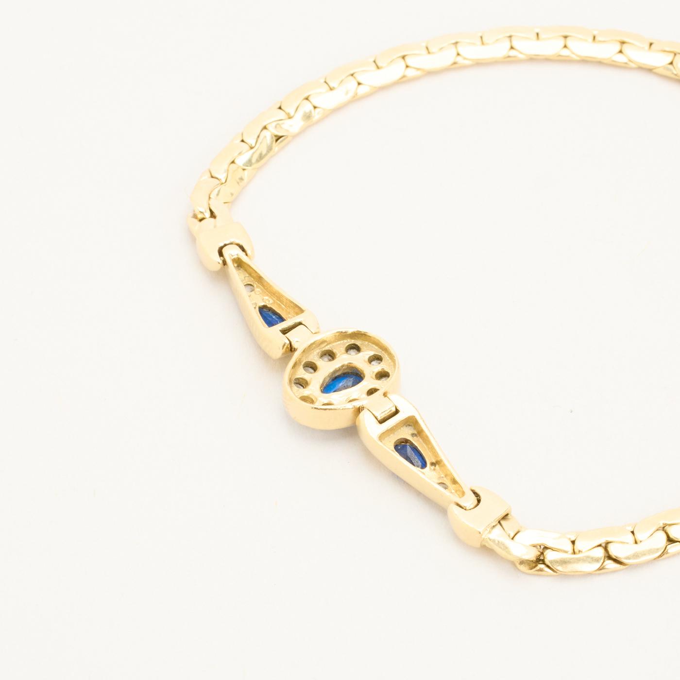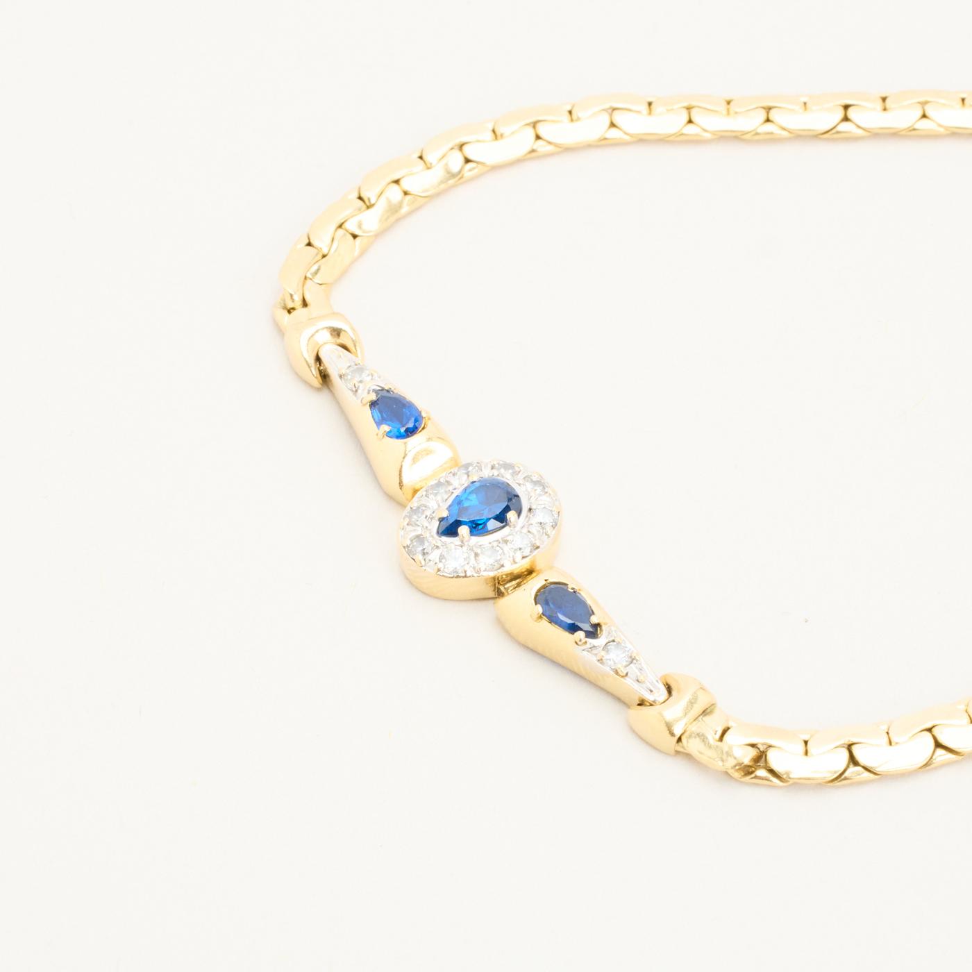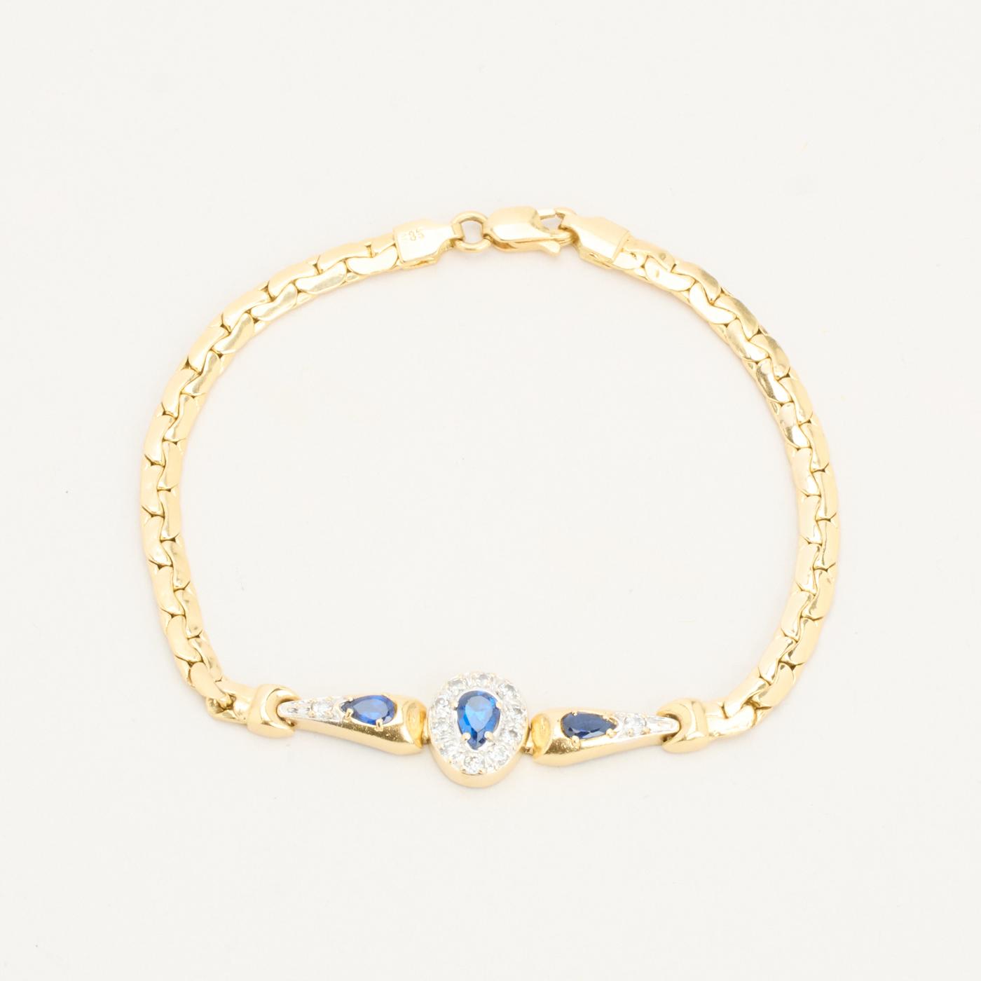 Armbånd i 14K guld med flere blå sten og hvide sten, 20 cm, 8.52 g