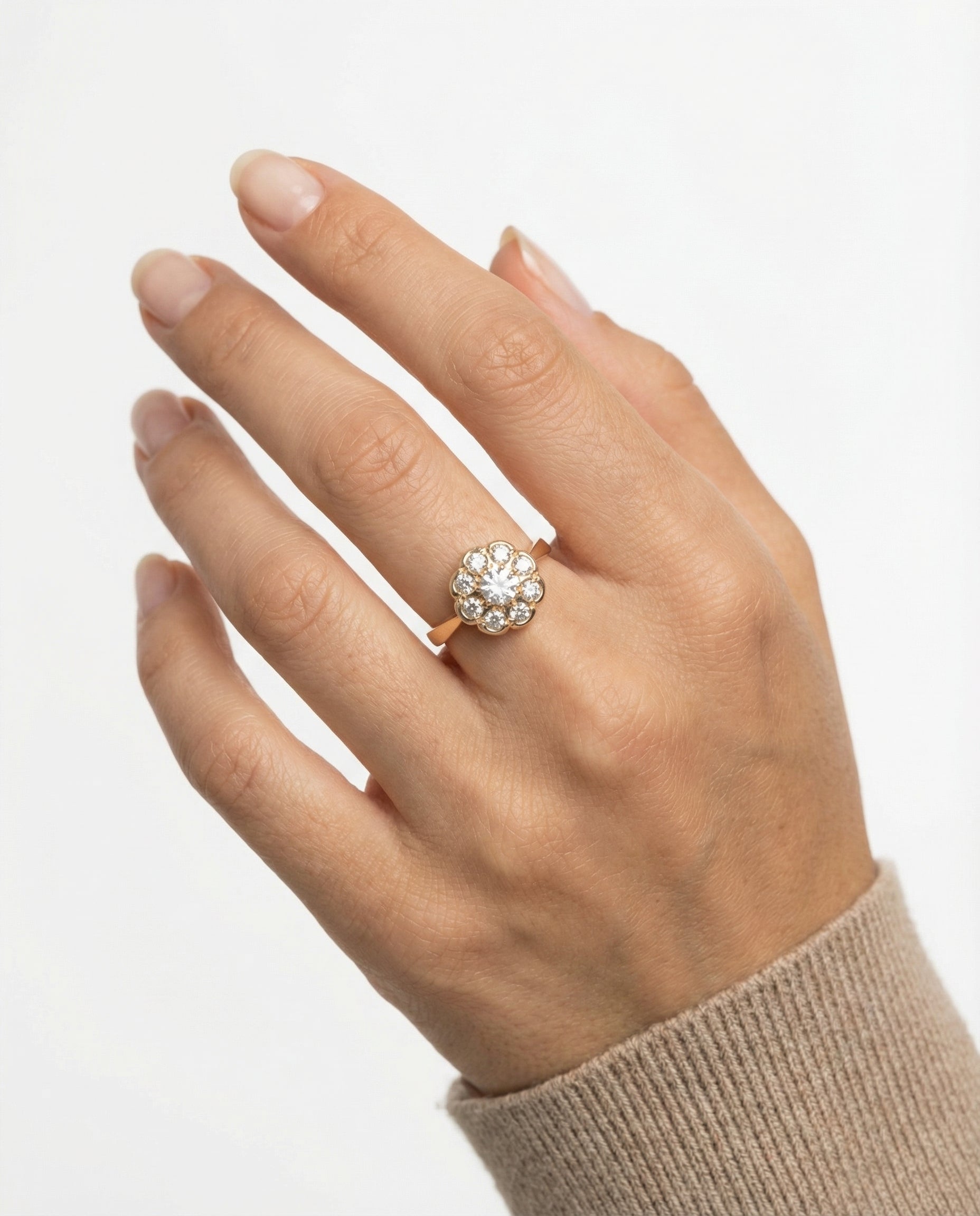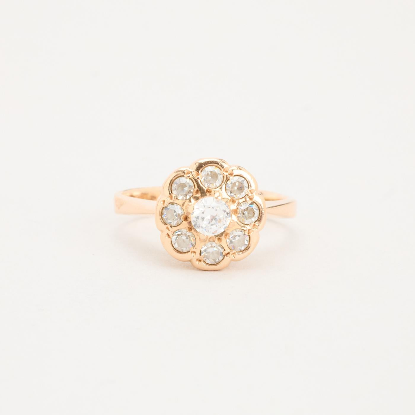 Rosetring i 14K guld med flere zirkoniaer, Str. 54, 4.09 g