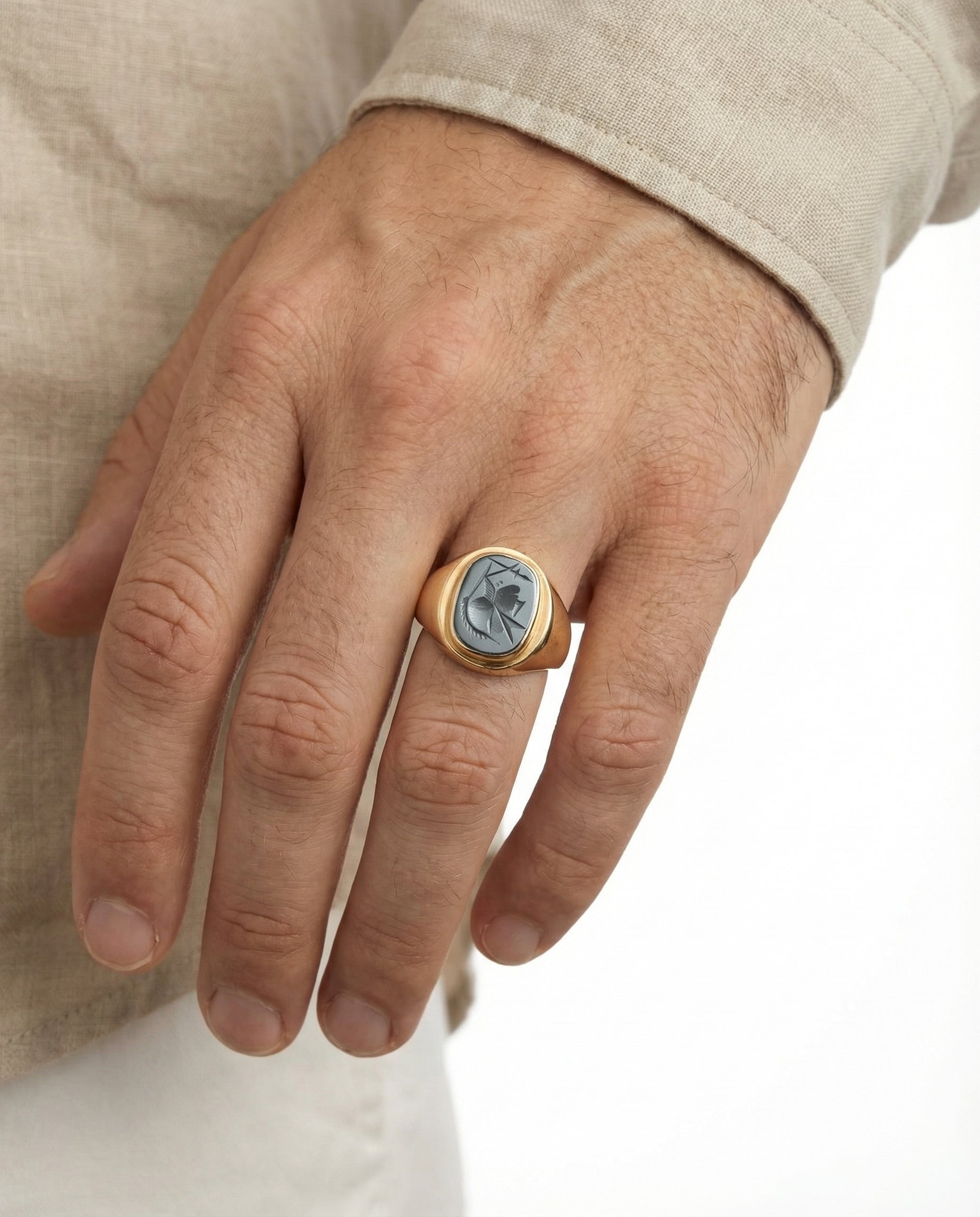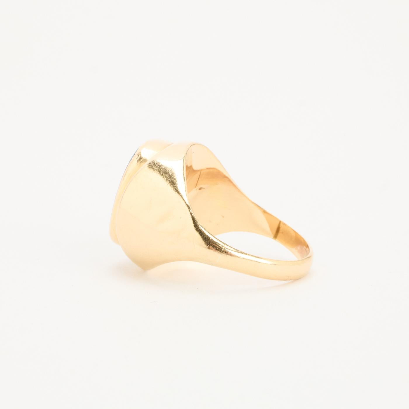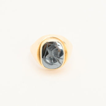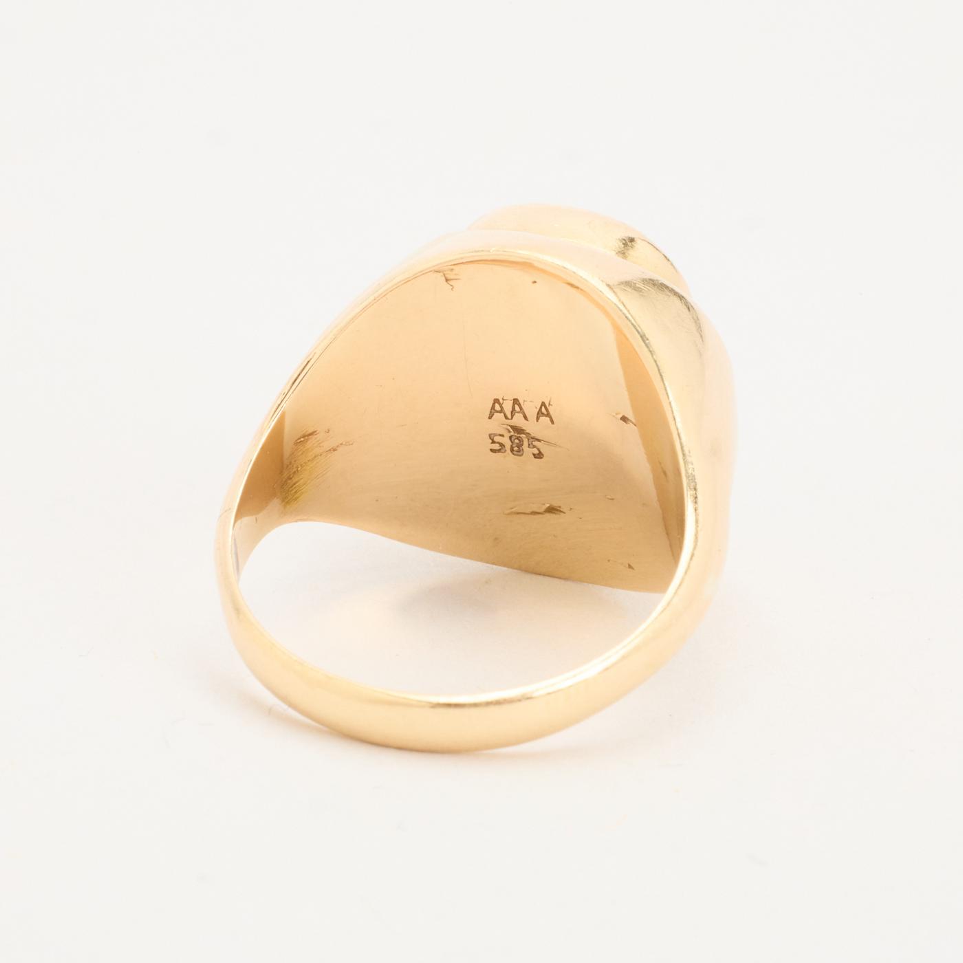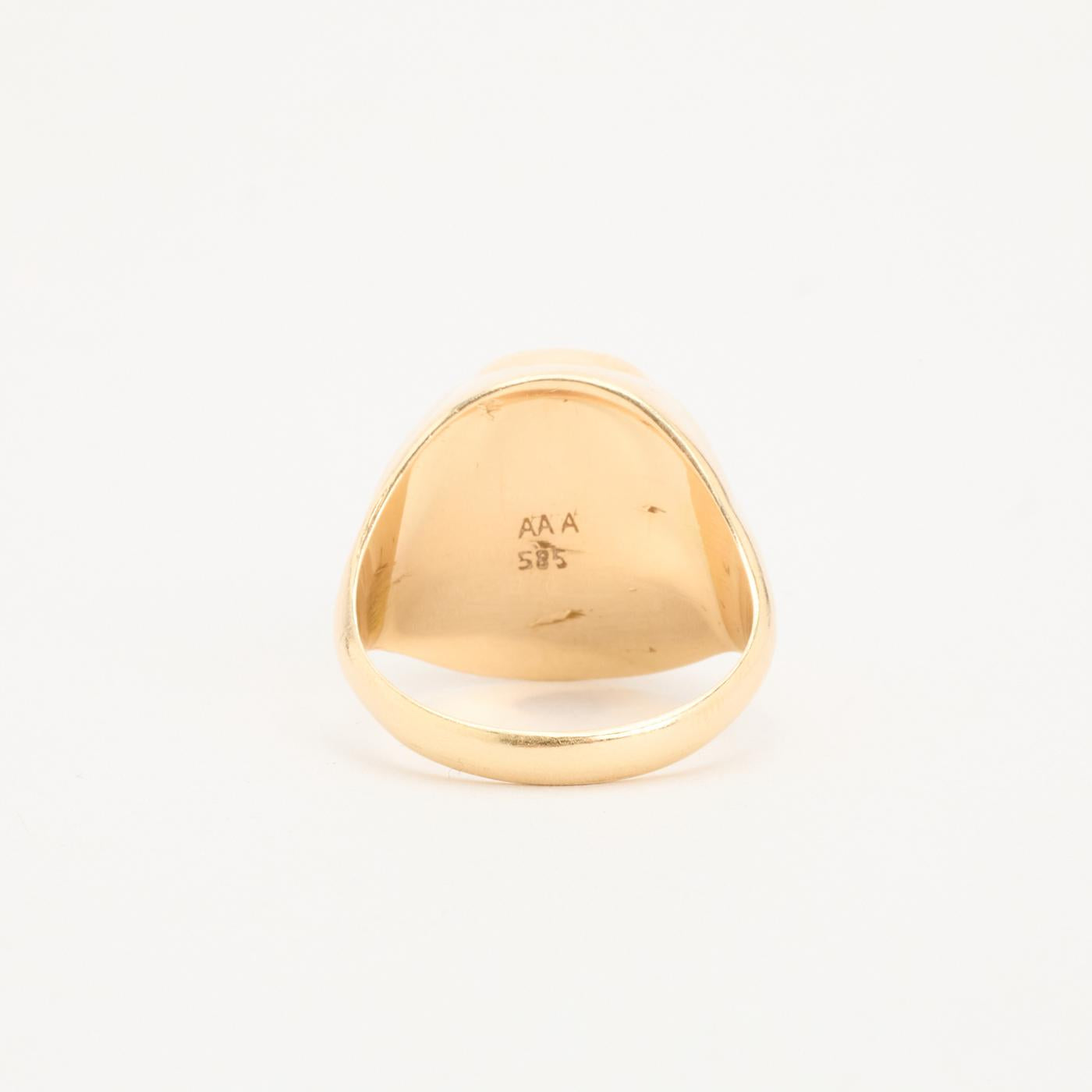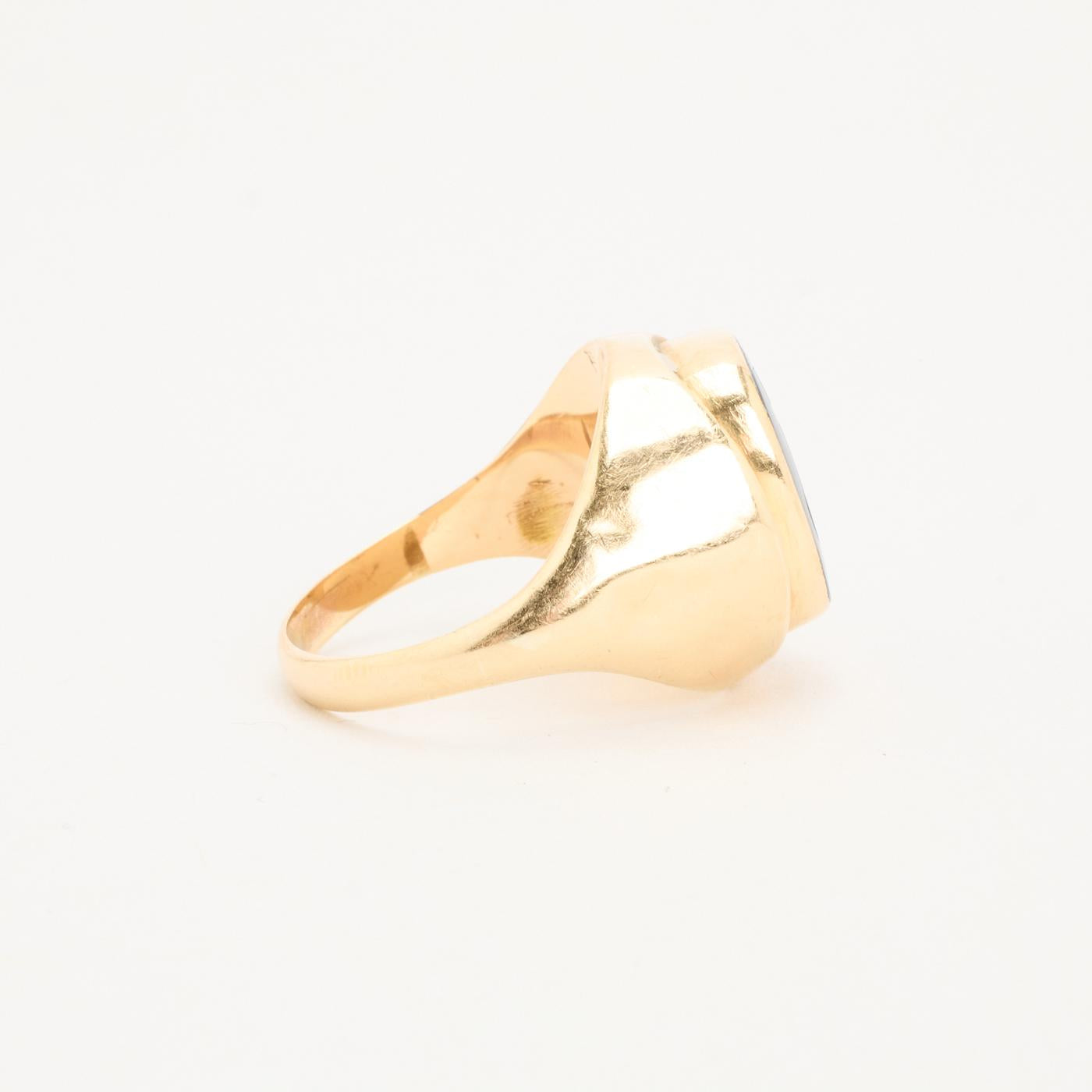 Signetring i 14K guld med grå sten, Str. 62, 5 g
