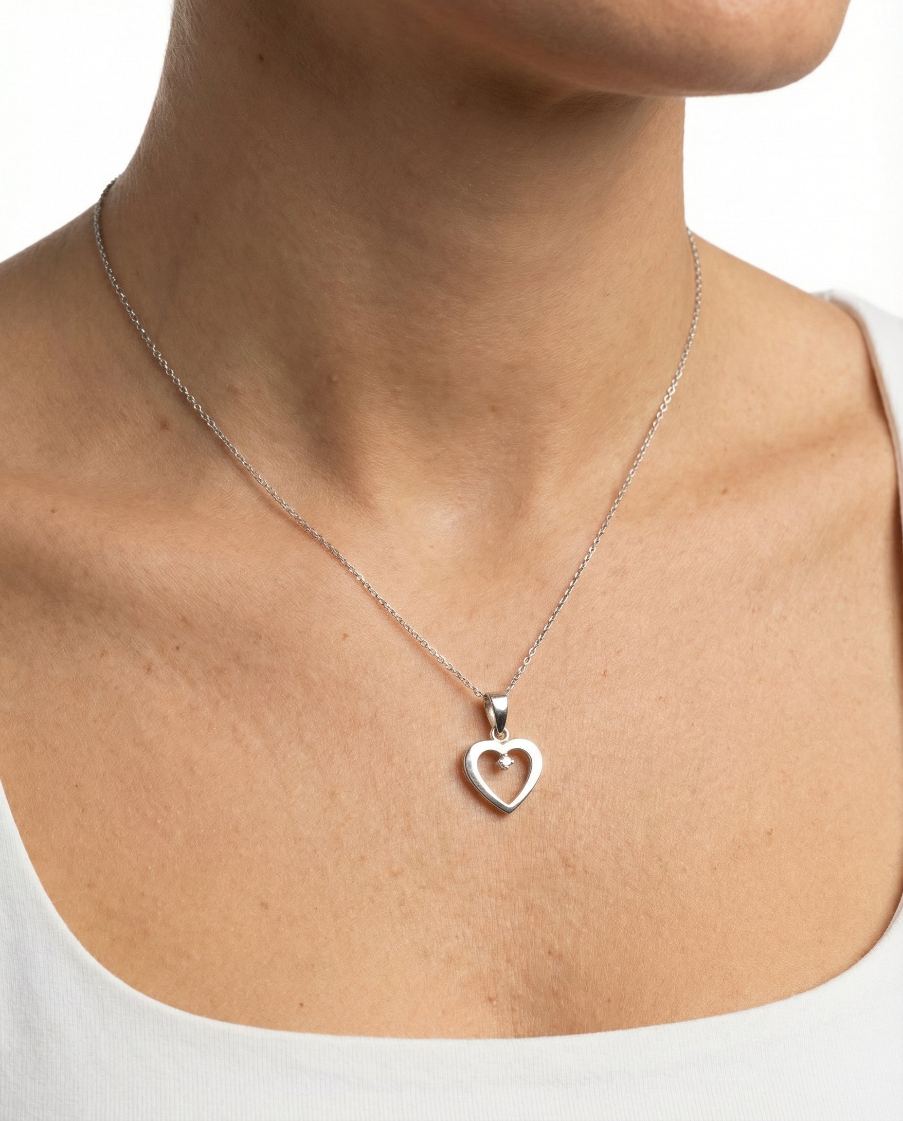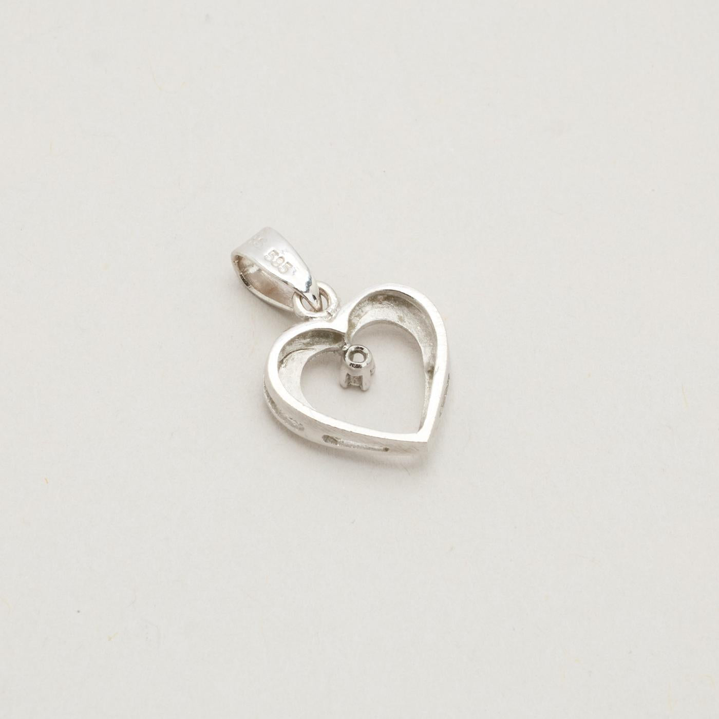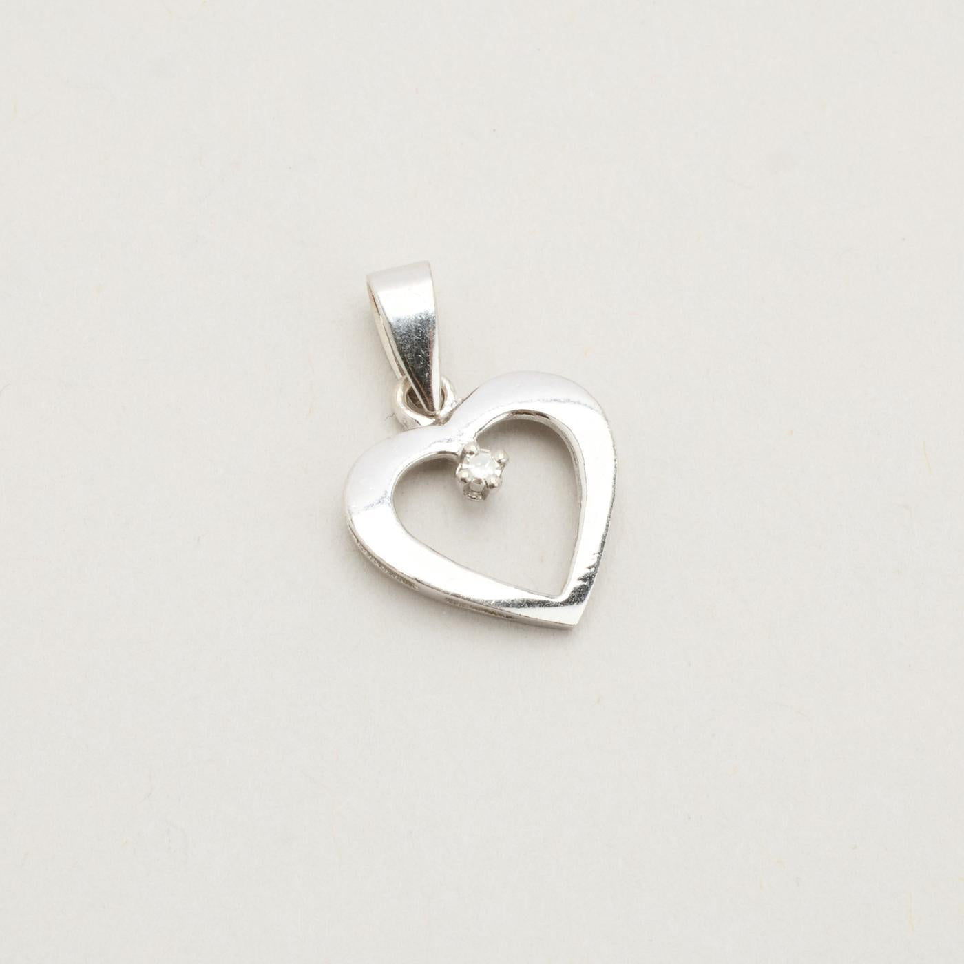 Hjerte vedhæng med diamant (0.02 ct) i 14K hvidguld, 1.8 cm, 0.73 g