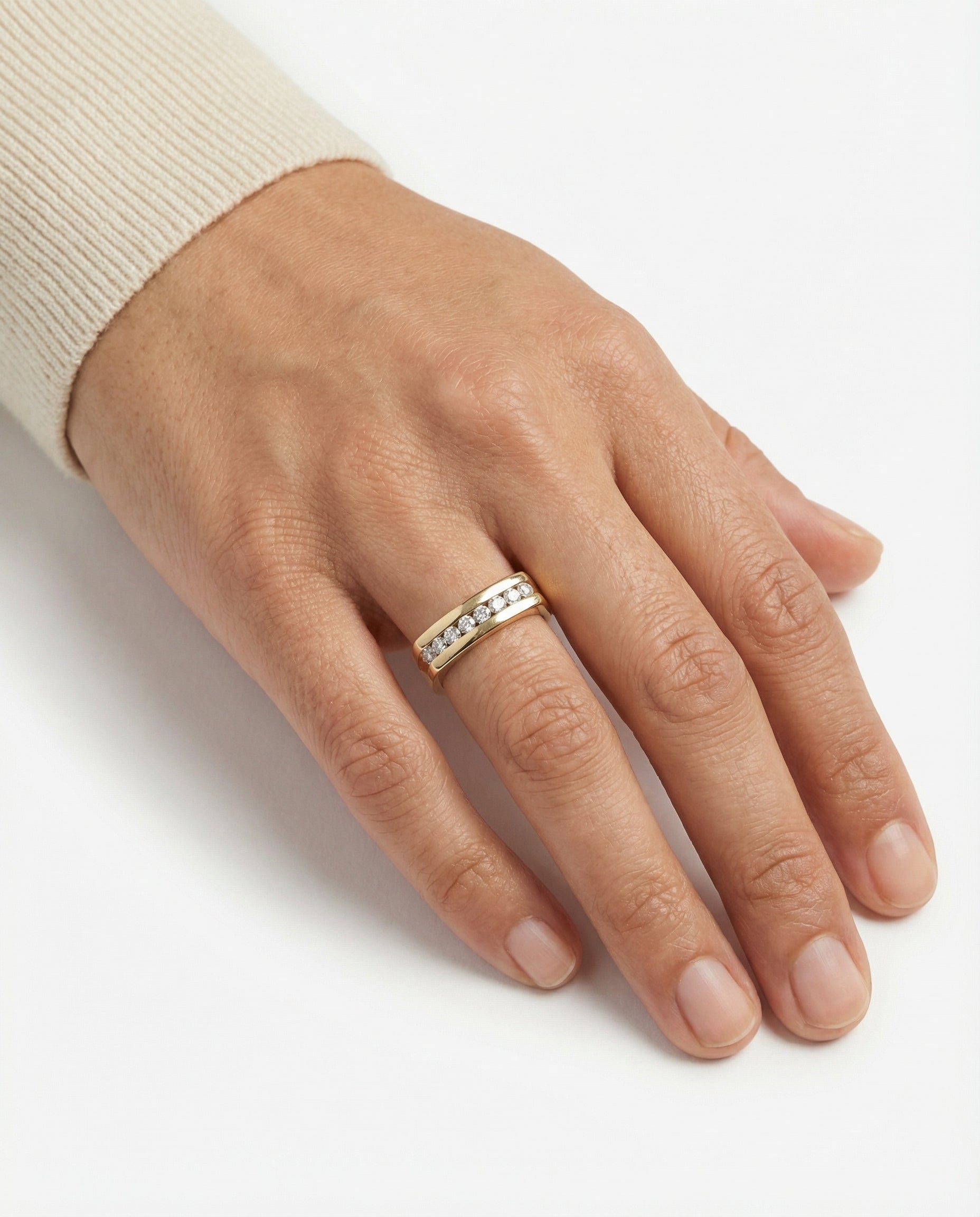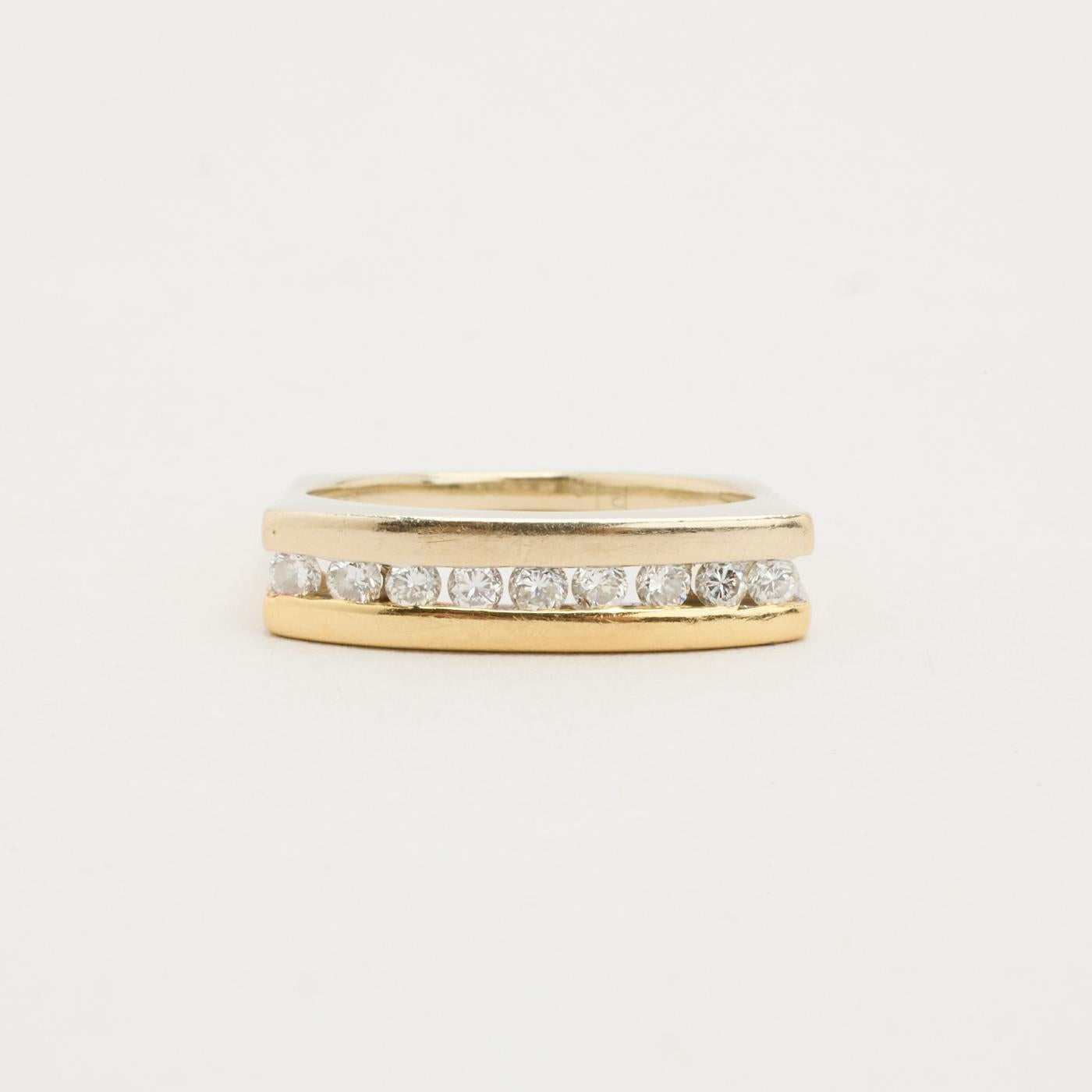 Geometrisk ring med diamant (0.33 ct) i 14K guld str. 55, 4 g