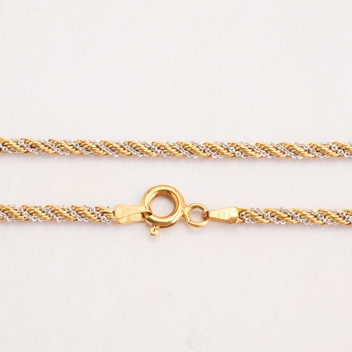 Reb Halskæde i 14K guld og hvidguld, 42 cm, 4.48 g