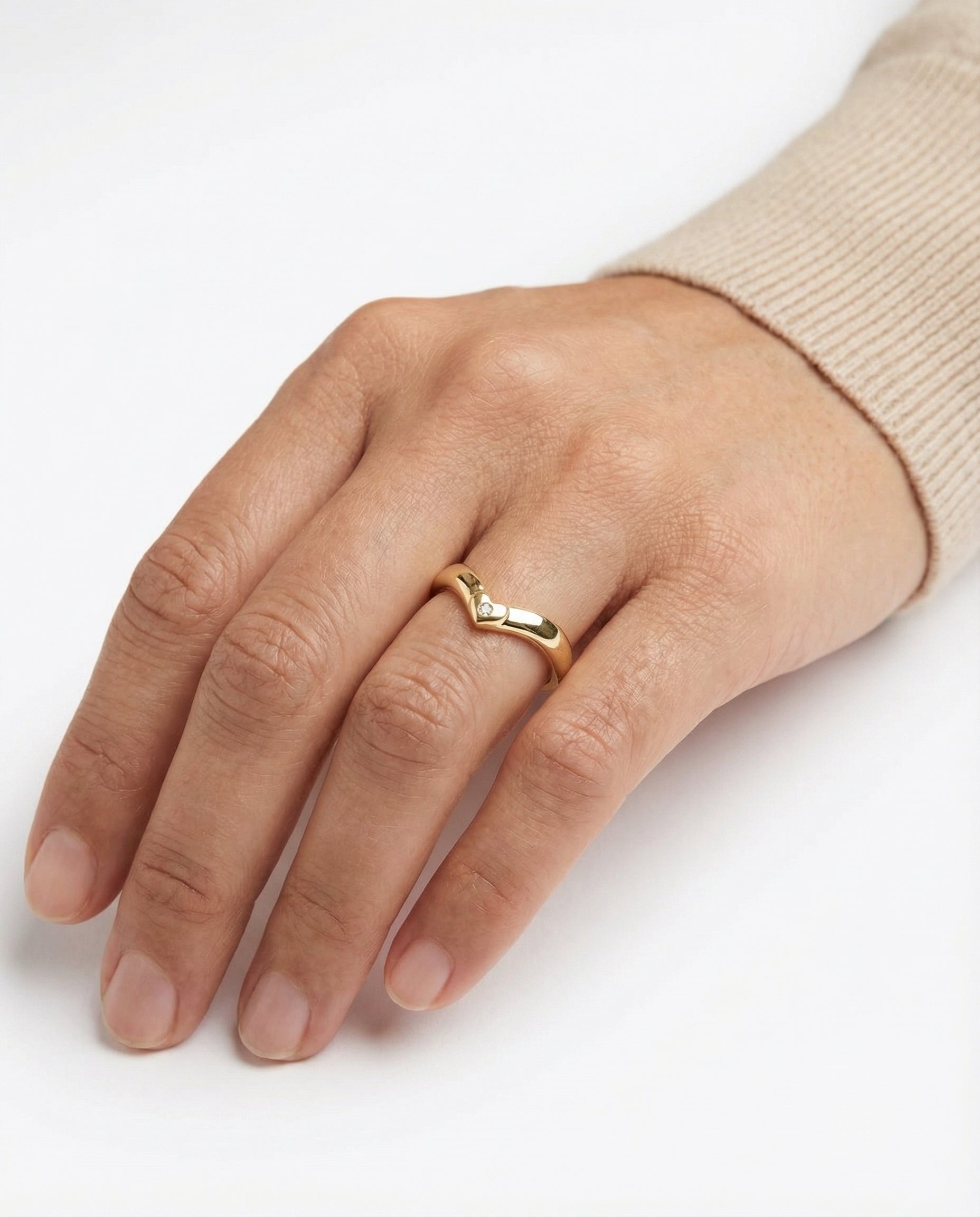 Hjertering med diamant (0.01 ct) i 14K guld, str. 55