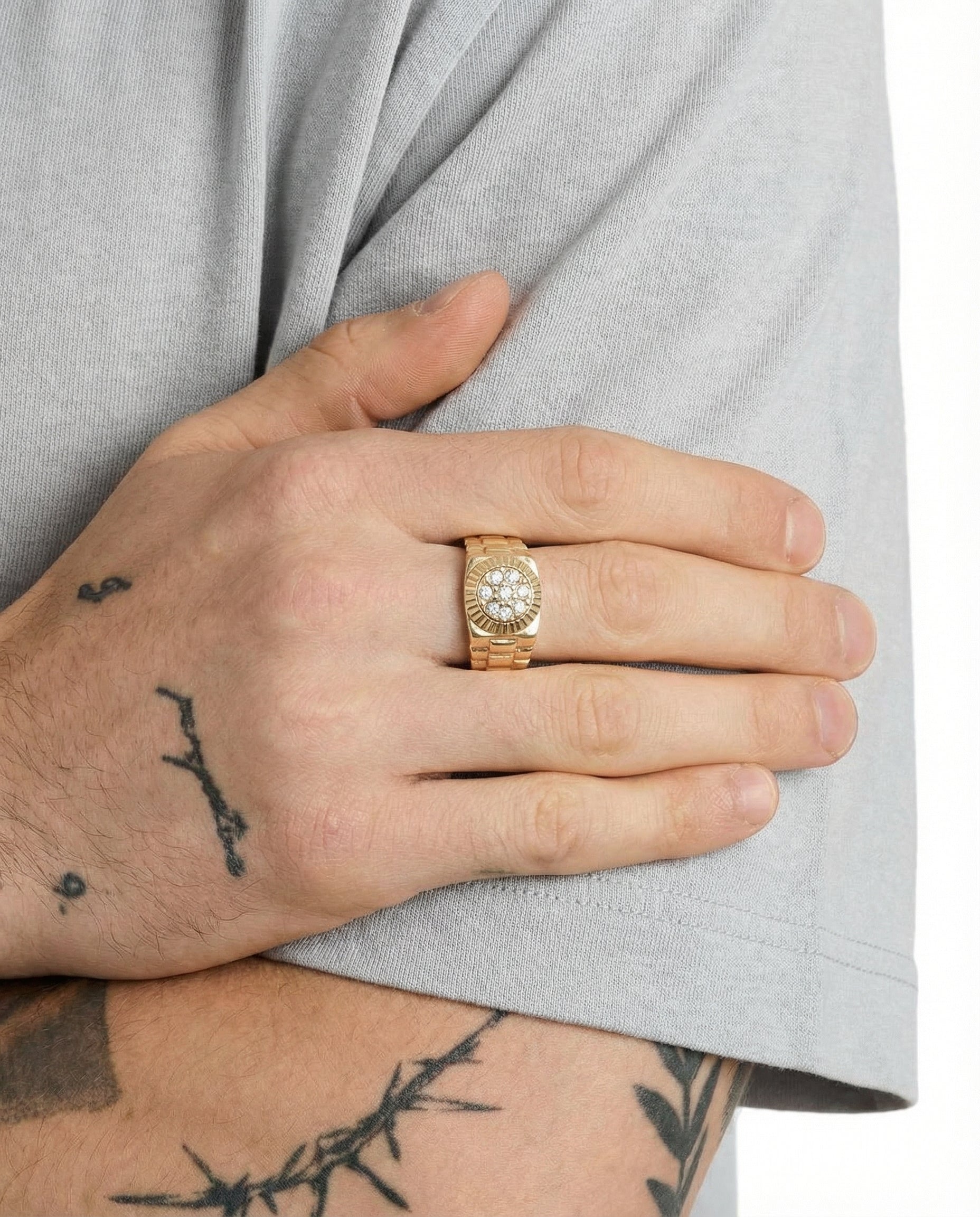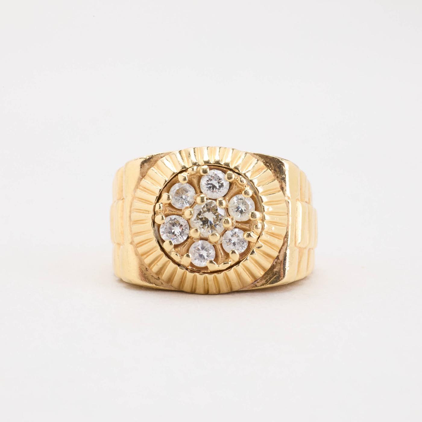 Signetring i 14K guld med diamanter (0.68 ct), Str. 58