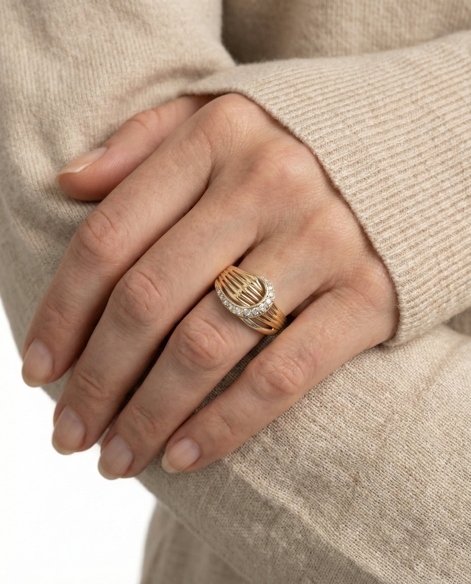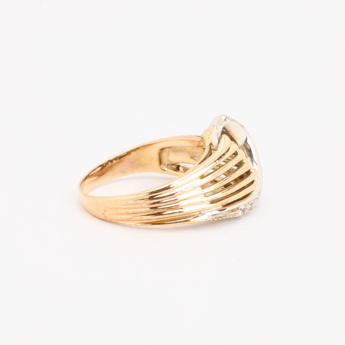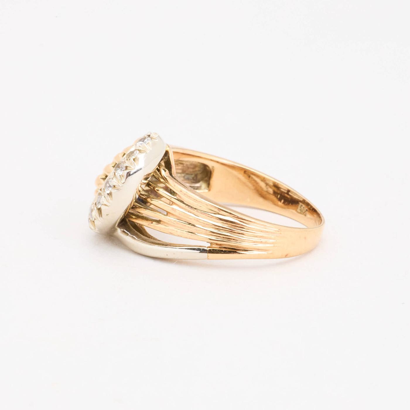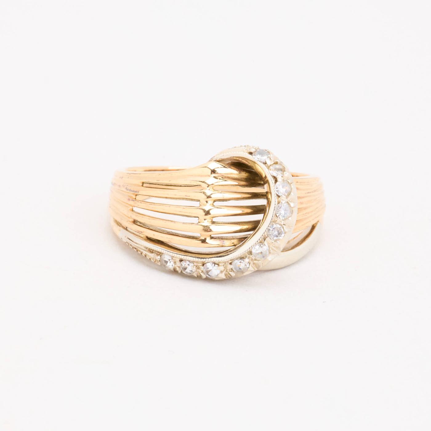 Crossoverring i 14K guld og hvidguld med hvide sten, Str. 55, 5.1 g