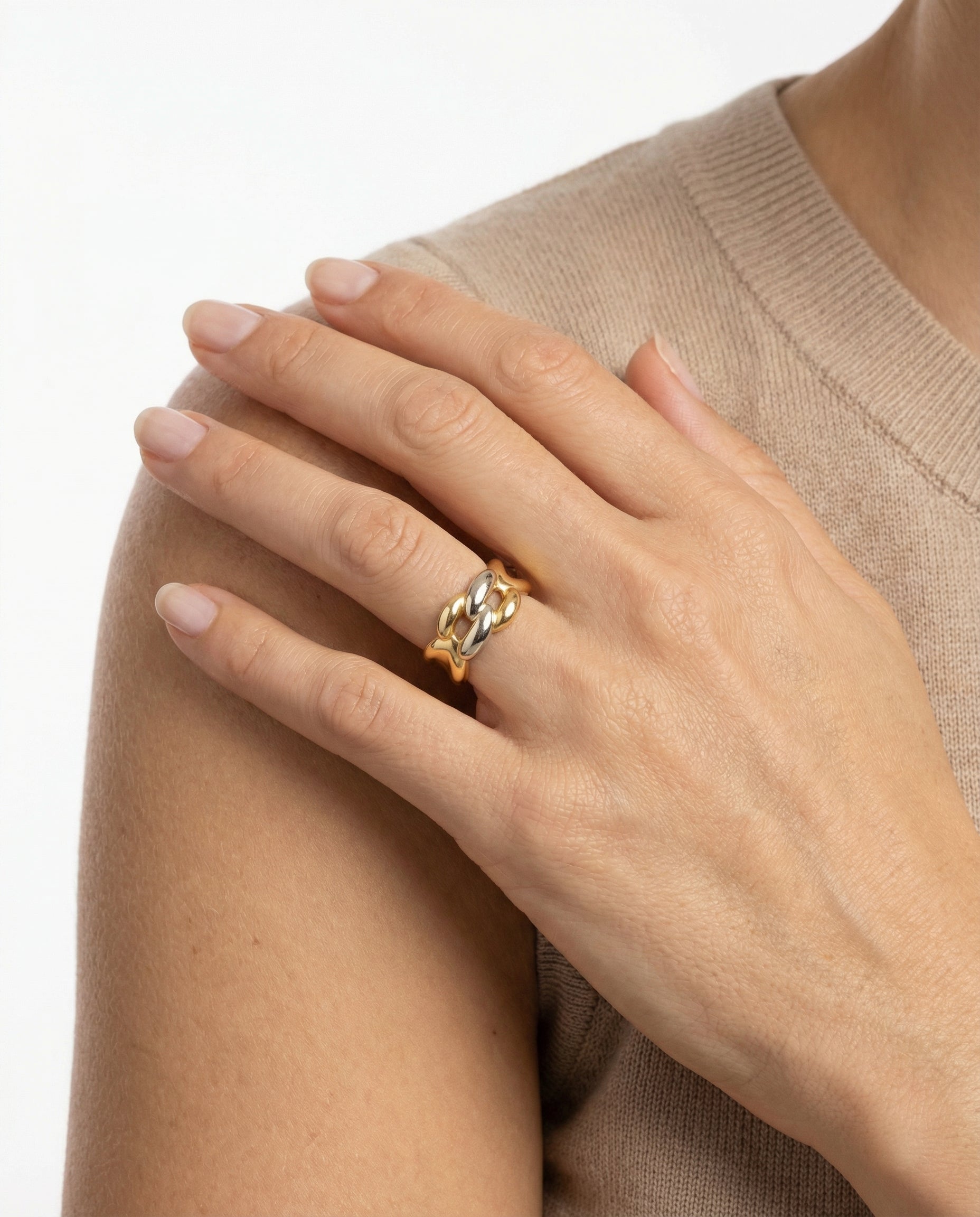 Statement ring i 18K guld og hvidguld str. 53, 6.4 g