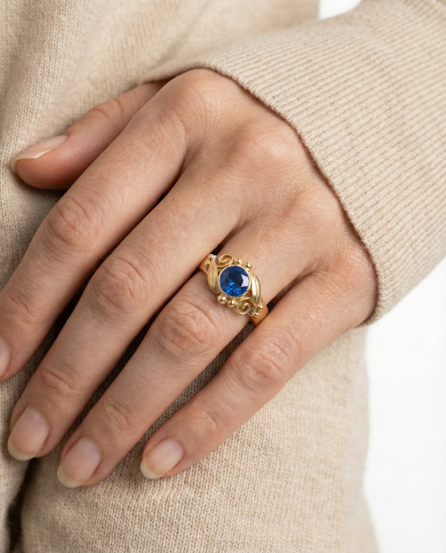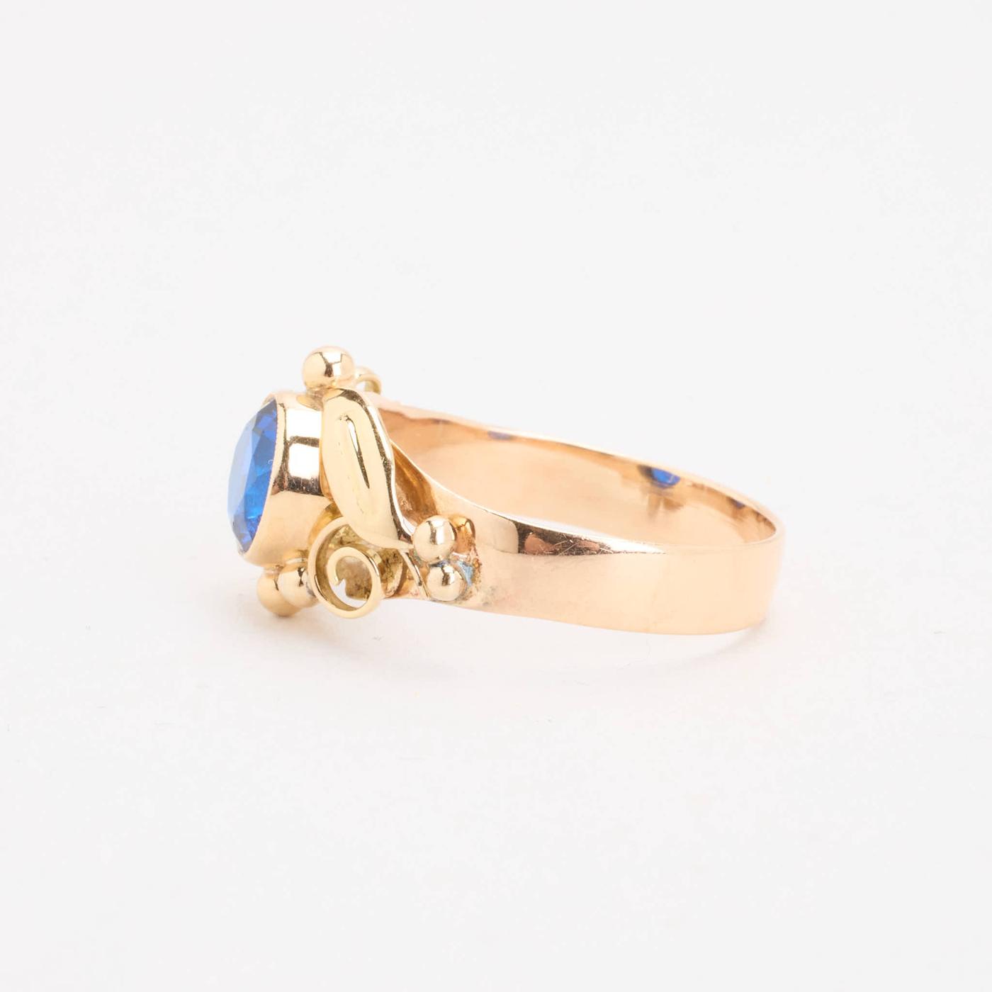 Gypsyring i 14K guld med en blå sten, Str. 57