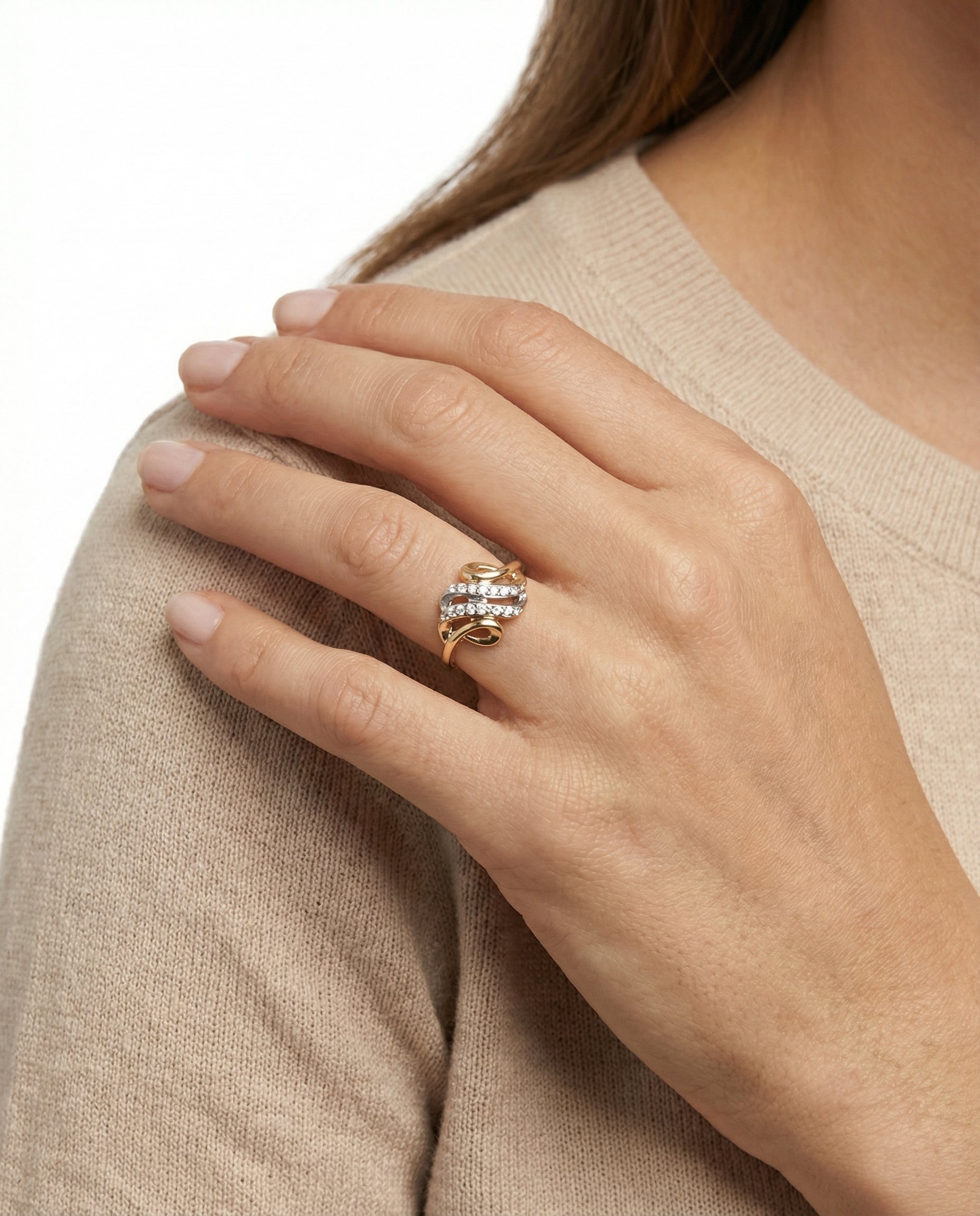 Crossoverring i 14K guld og hvidguld med en zirkonia, str. 51