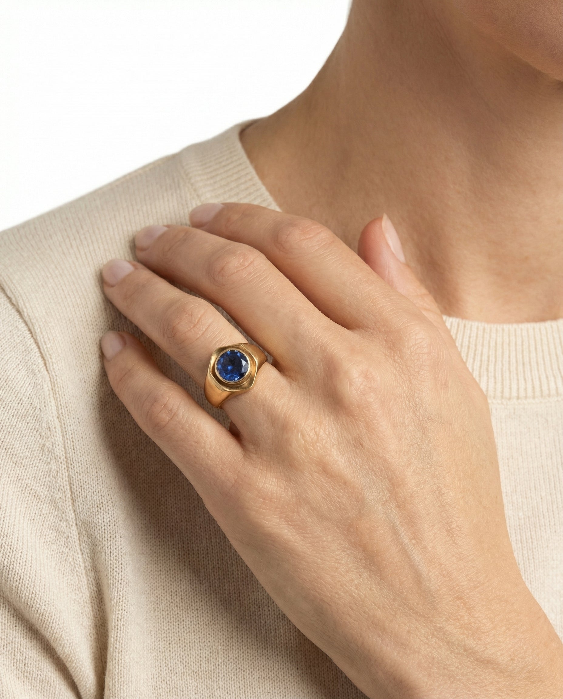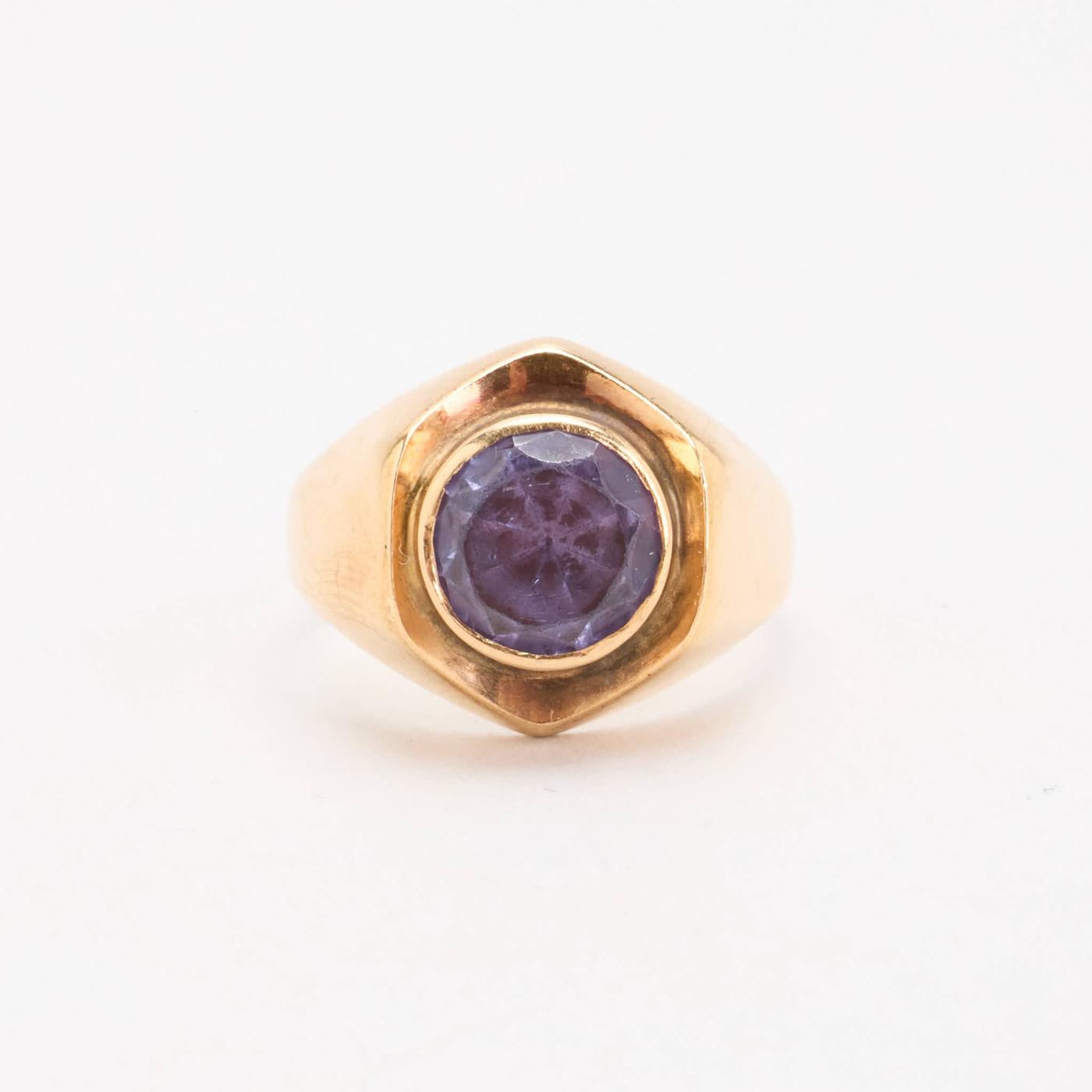 Signetring i 14K guld med blå sten, str. 53, 2.85 g