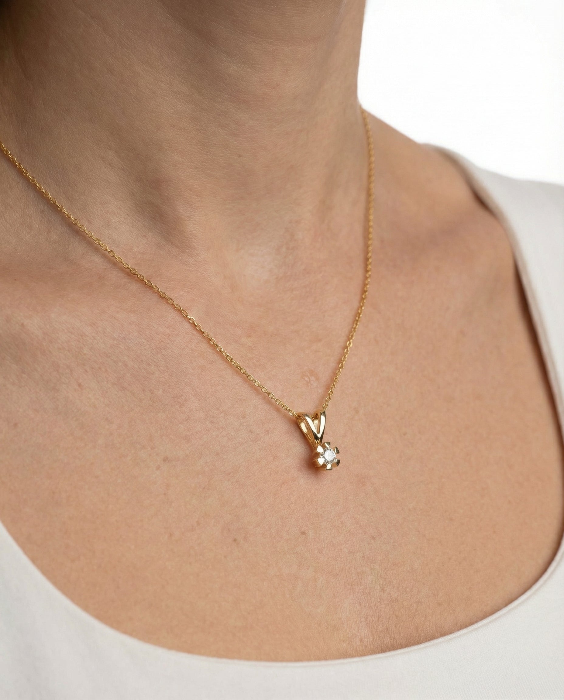 Solitaire vedhæng med diamant (0.04 ct) i 14K guld, 0.9 cm, 0.39 g