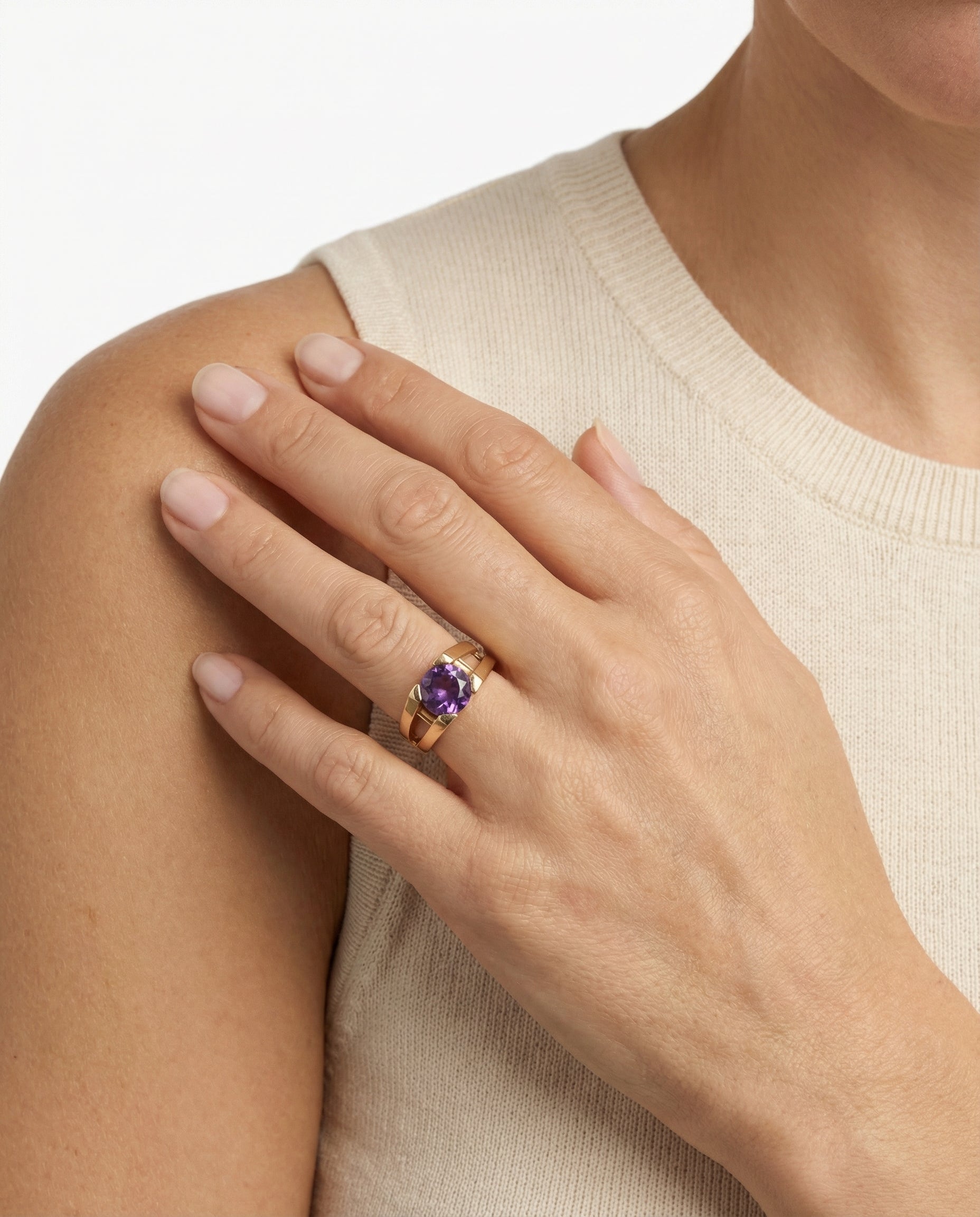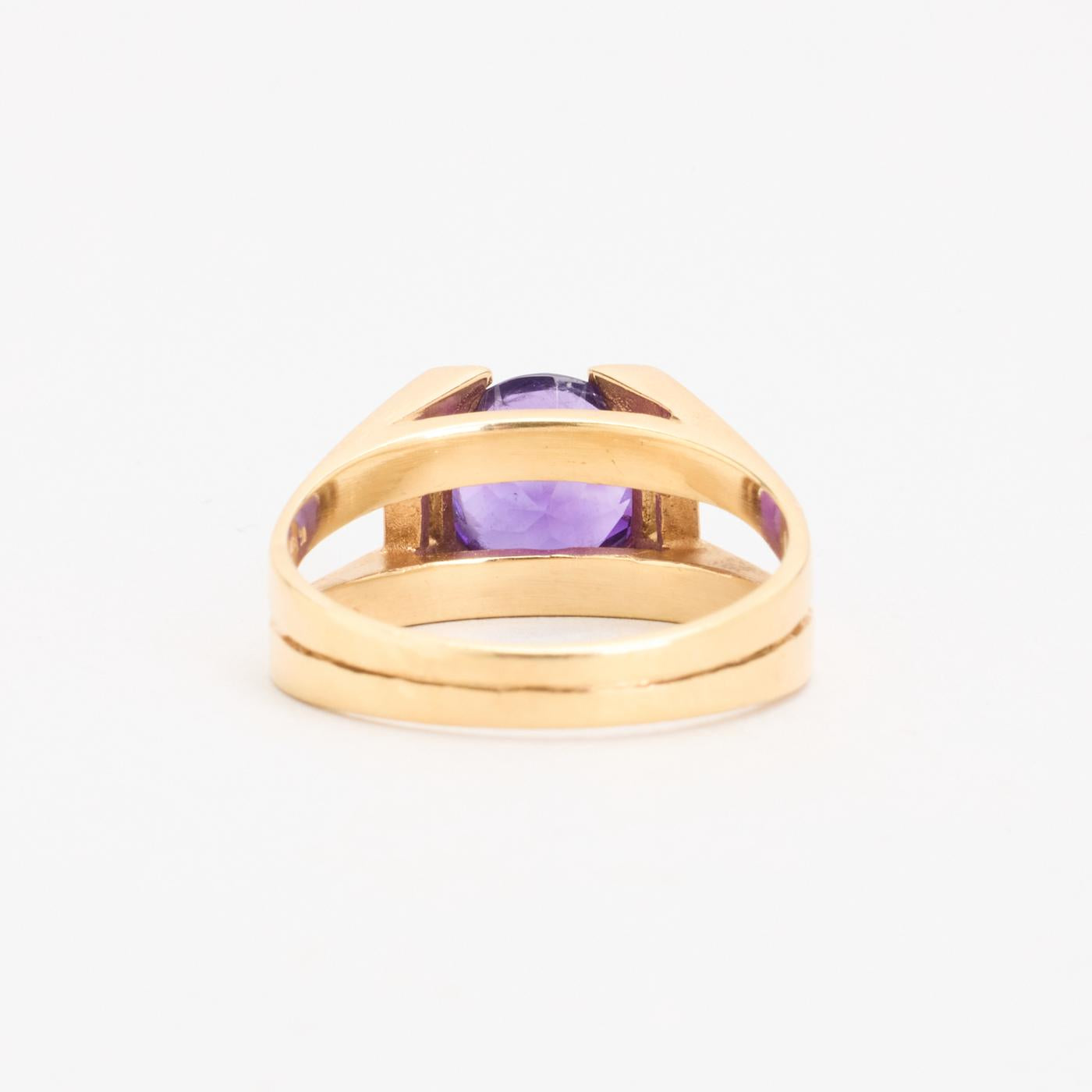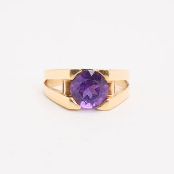 Cocktailring i 14K guld med en lilla sten, Str. 56