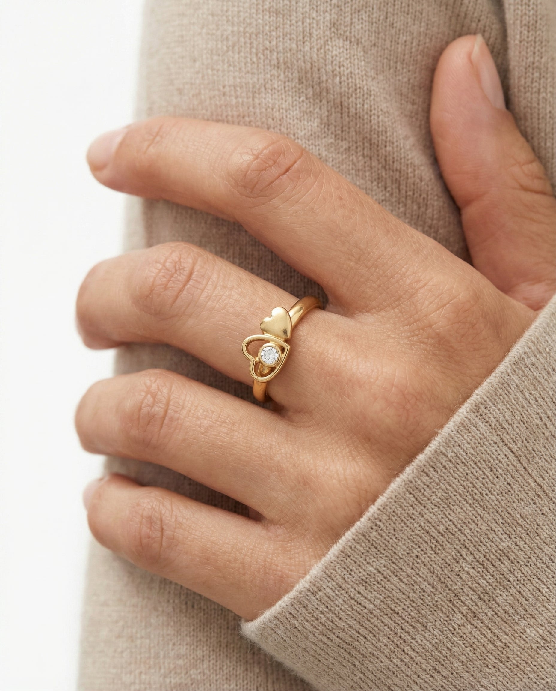 Spinning hjertering i 8K guld med zirkonia, Str. 57