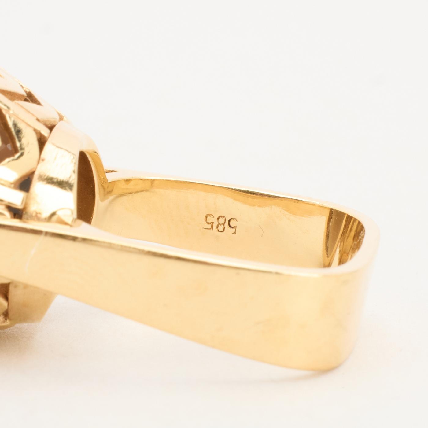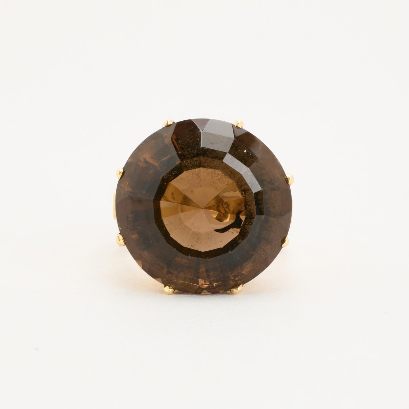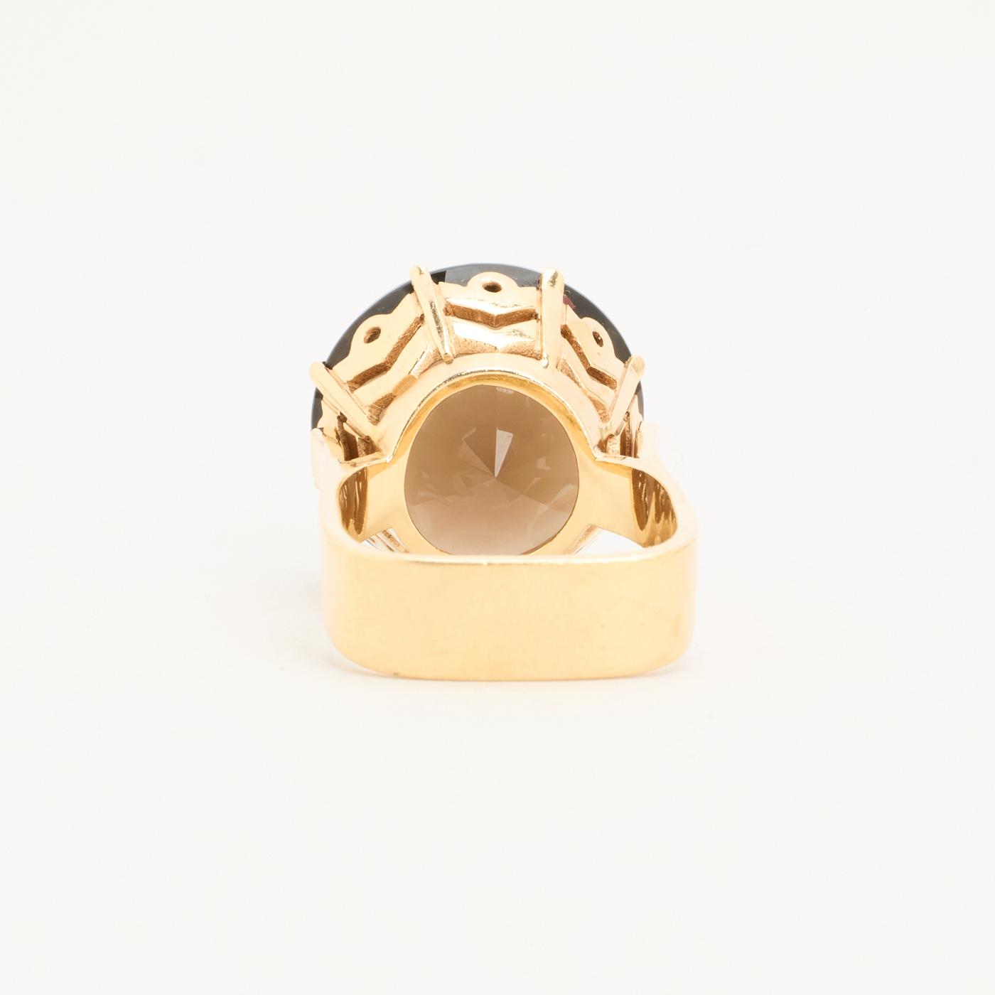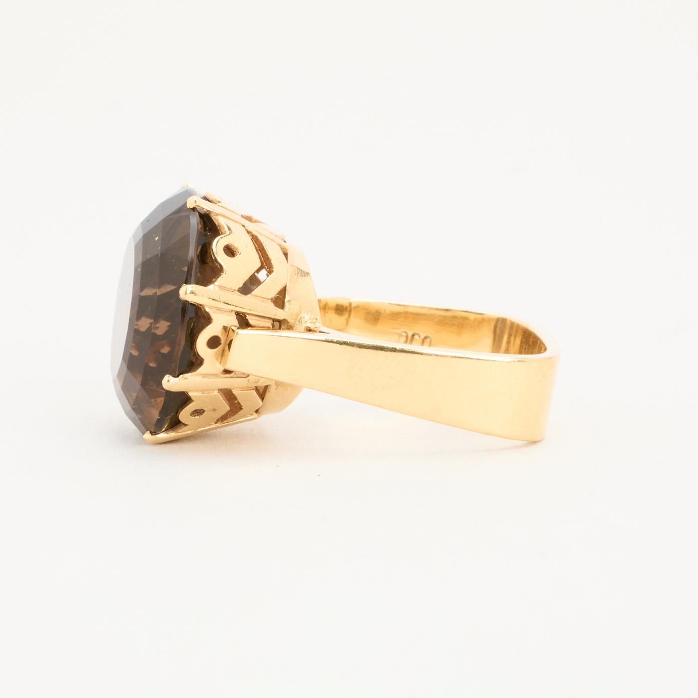 Cocktail ring i 14K guld med en røg kvarts, str. 53, 8.46 g