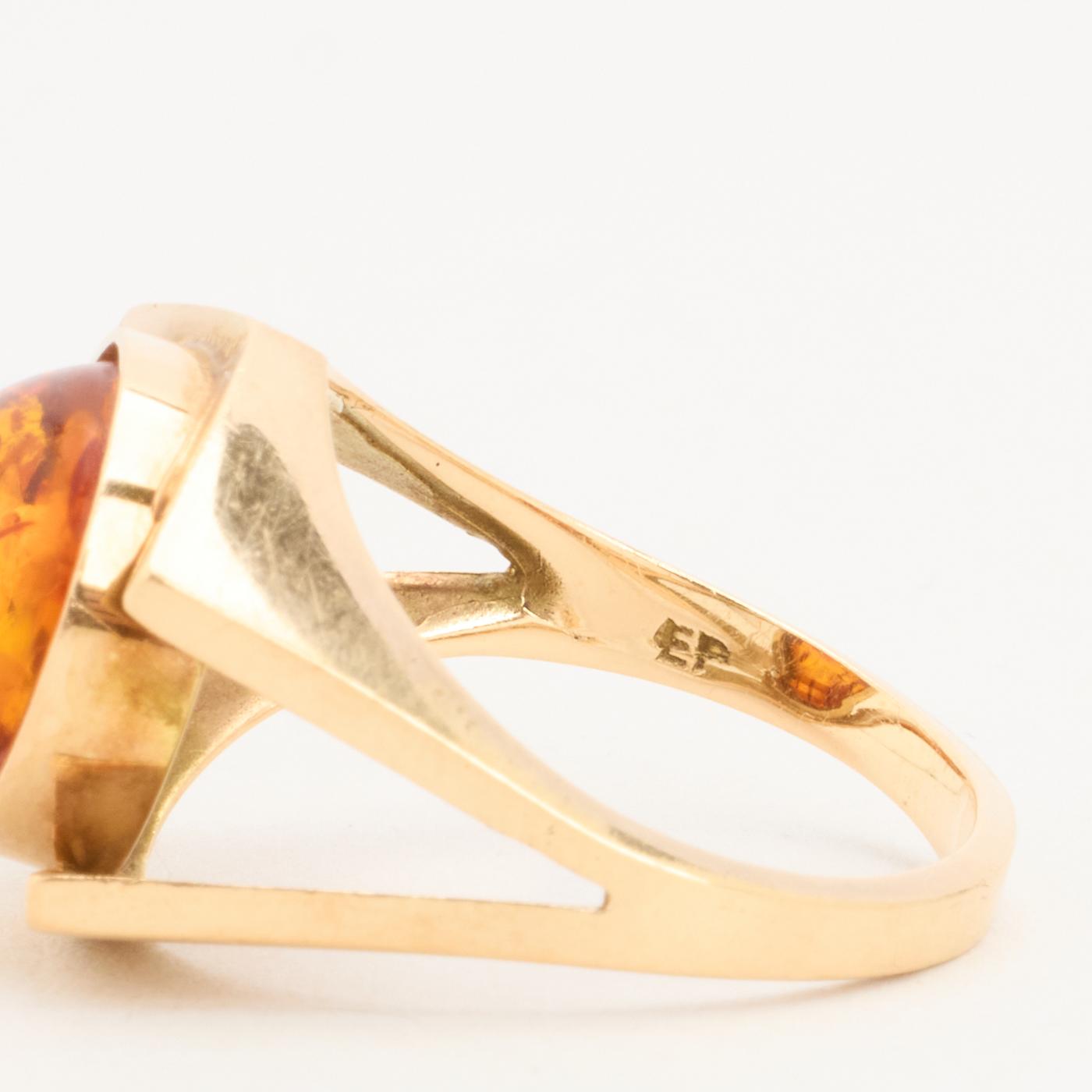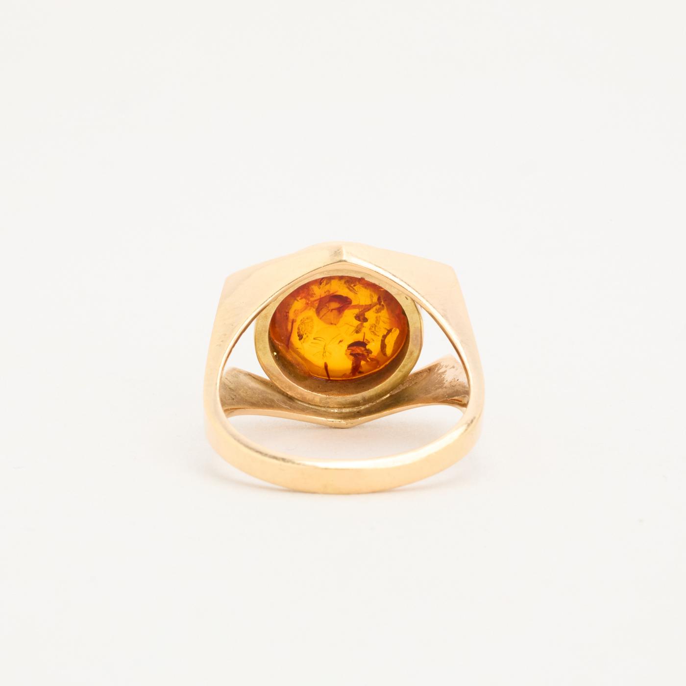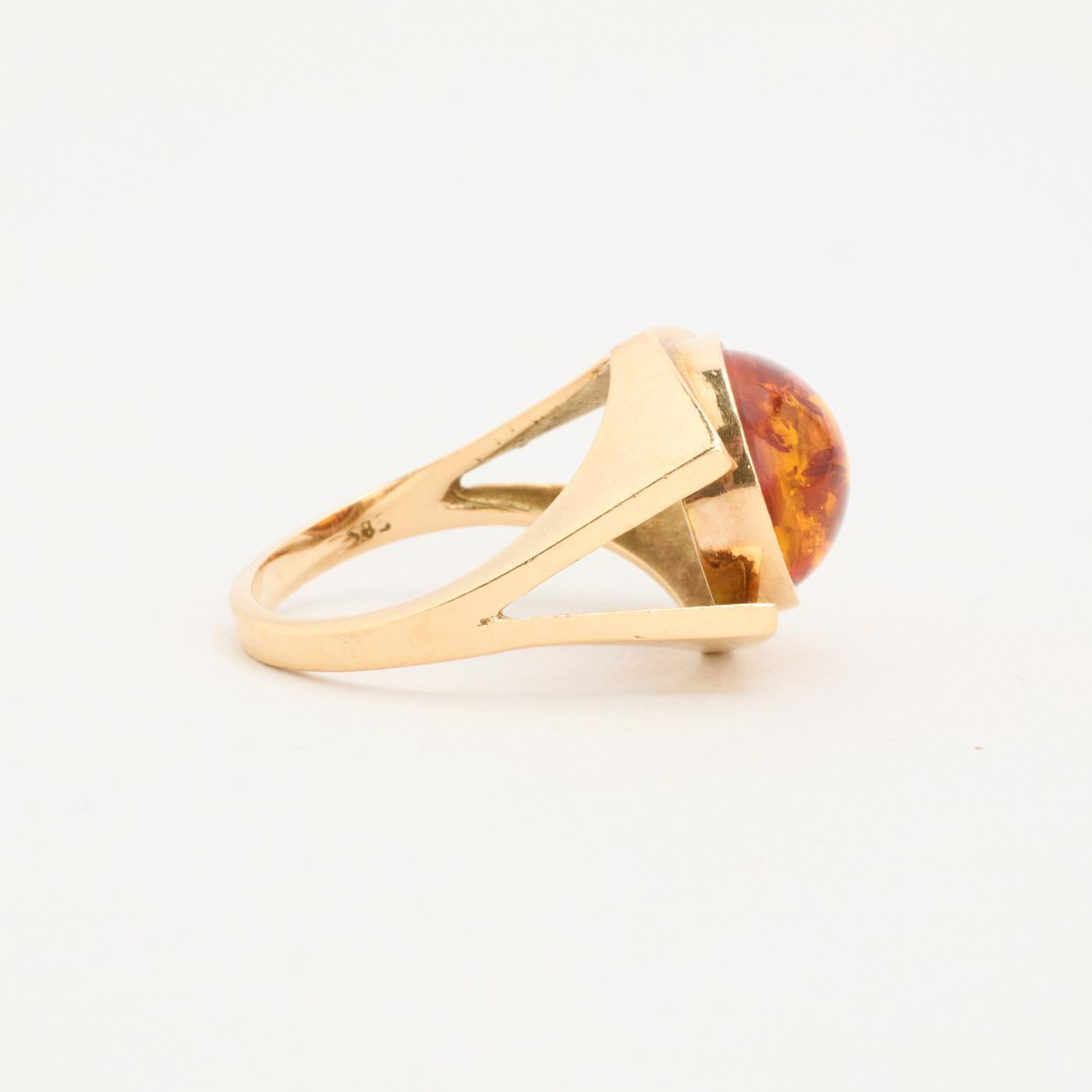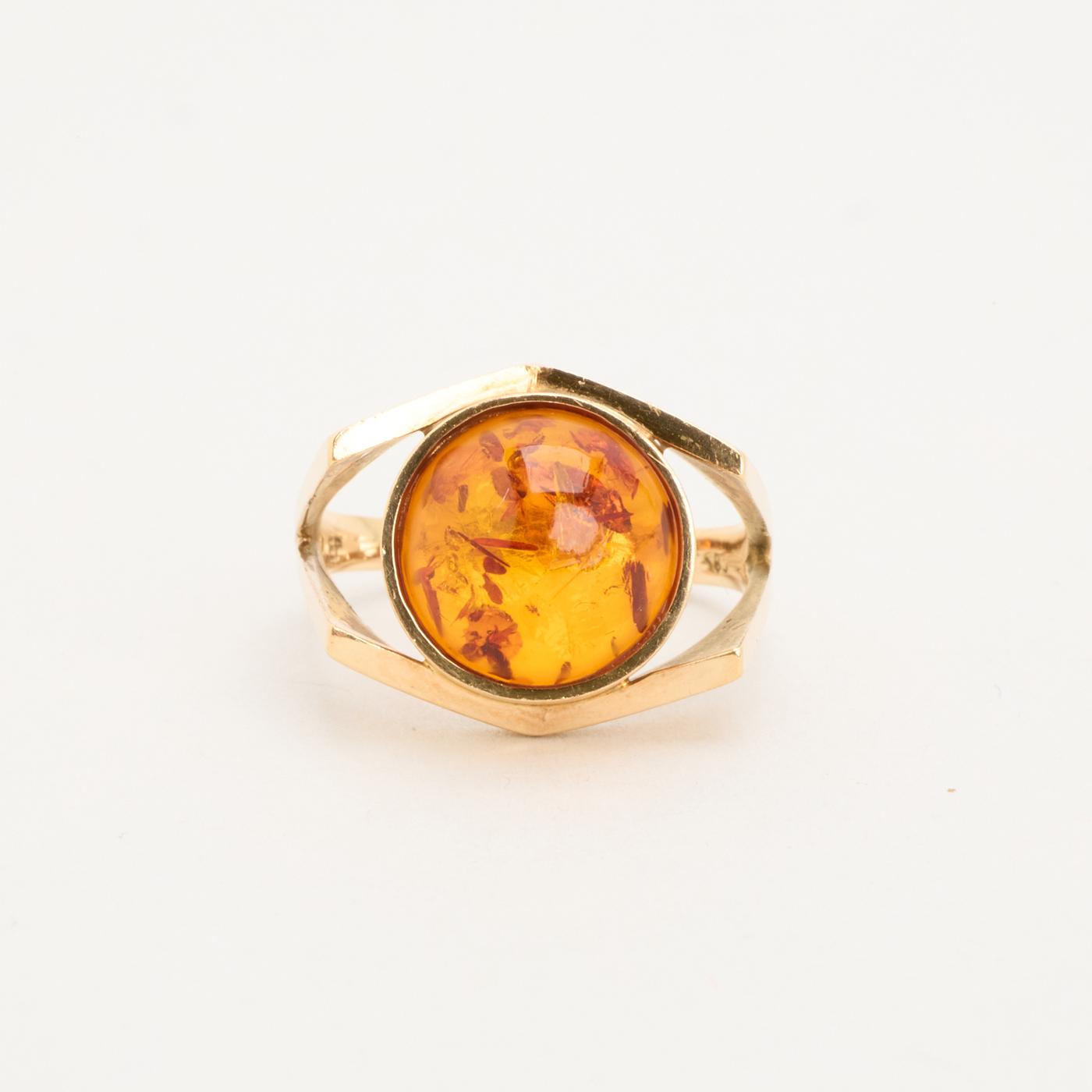 Geometrisk ring i 14K guld med en rav, str. 53 - 54, 3.93 g