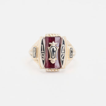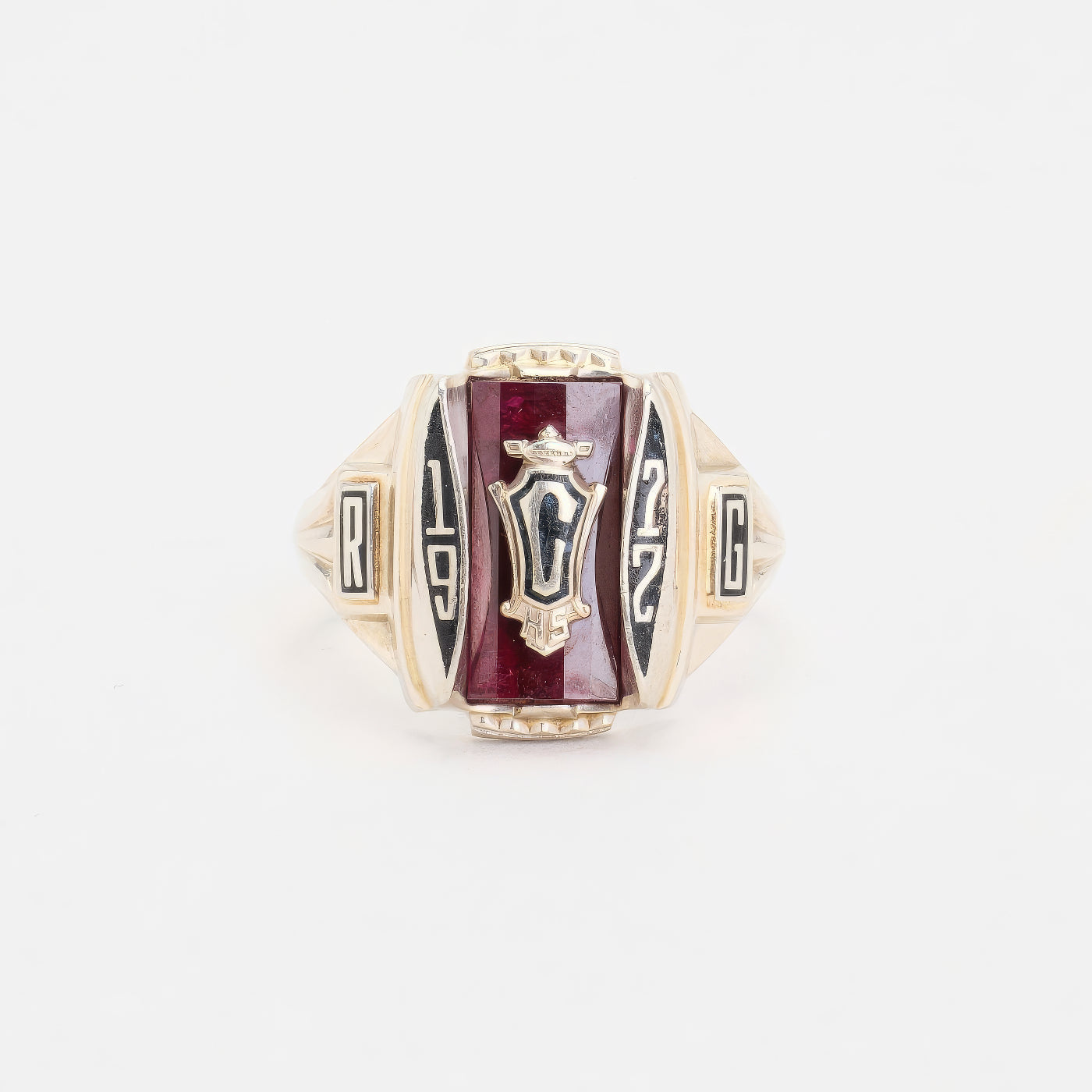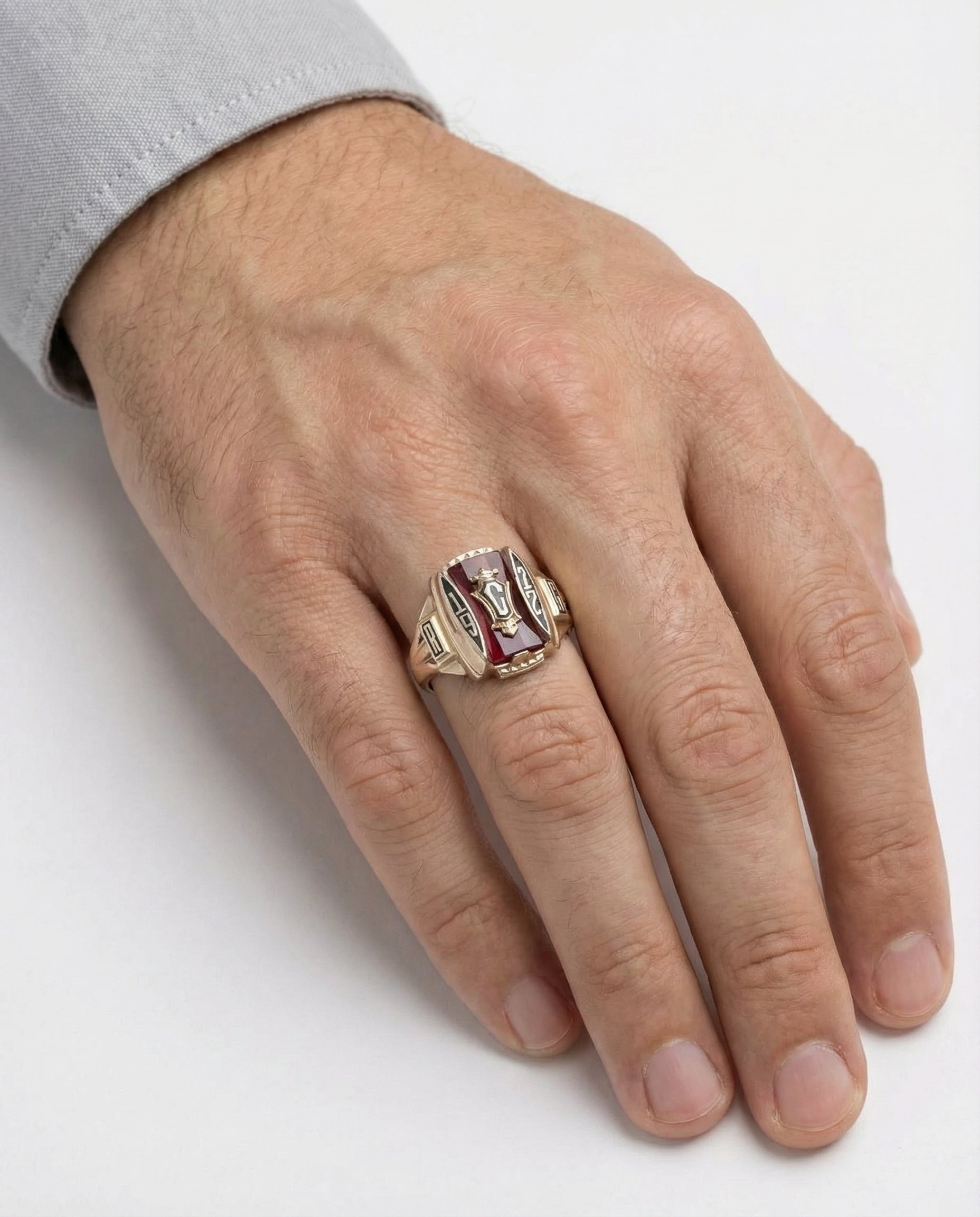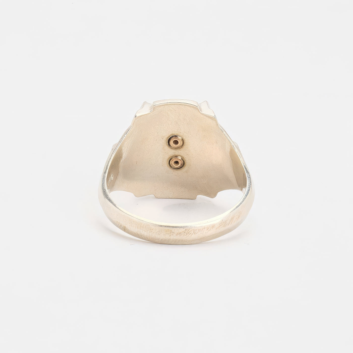 Signetring i 8K hvidguld med røde sten, Str. 65