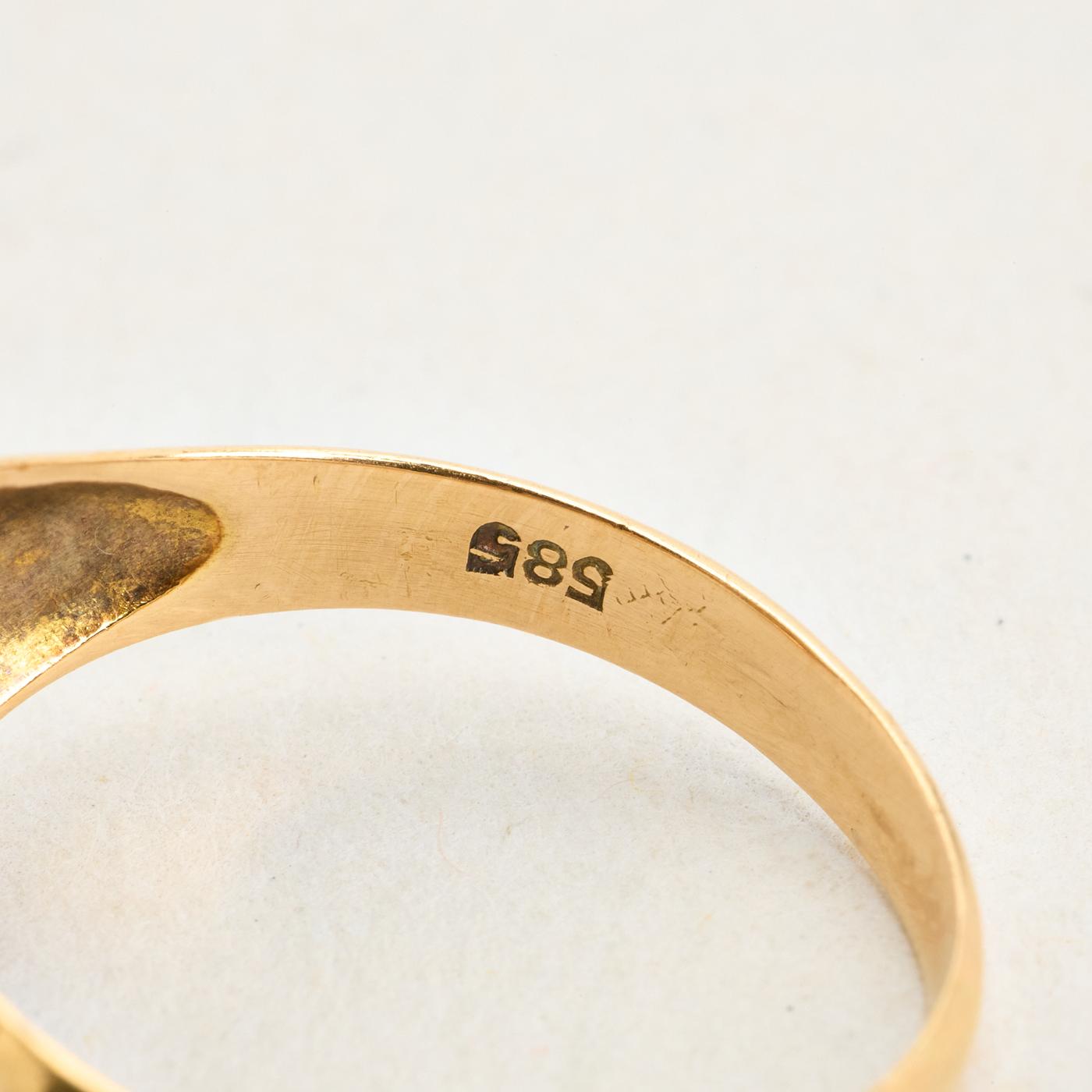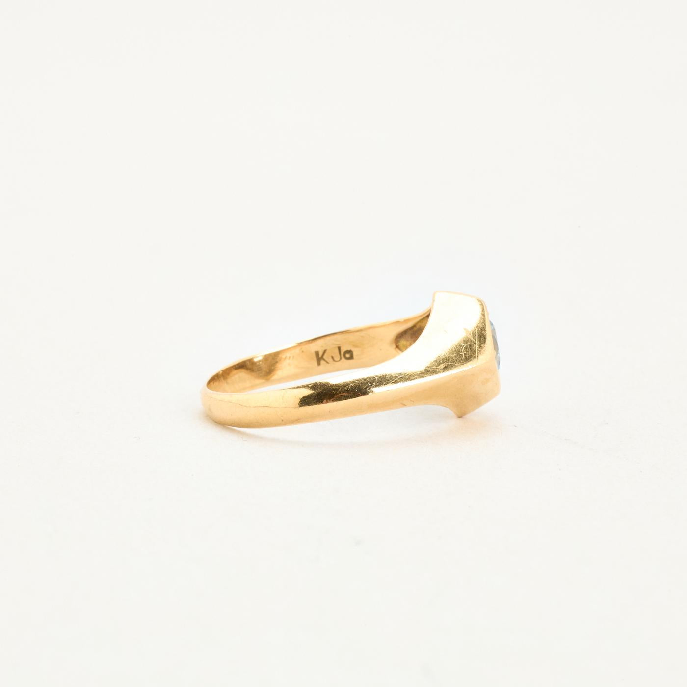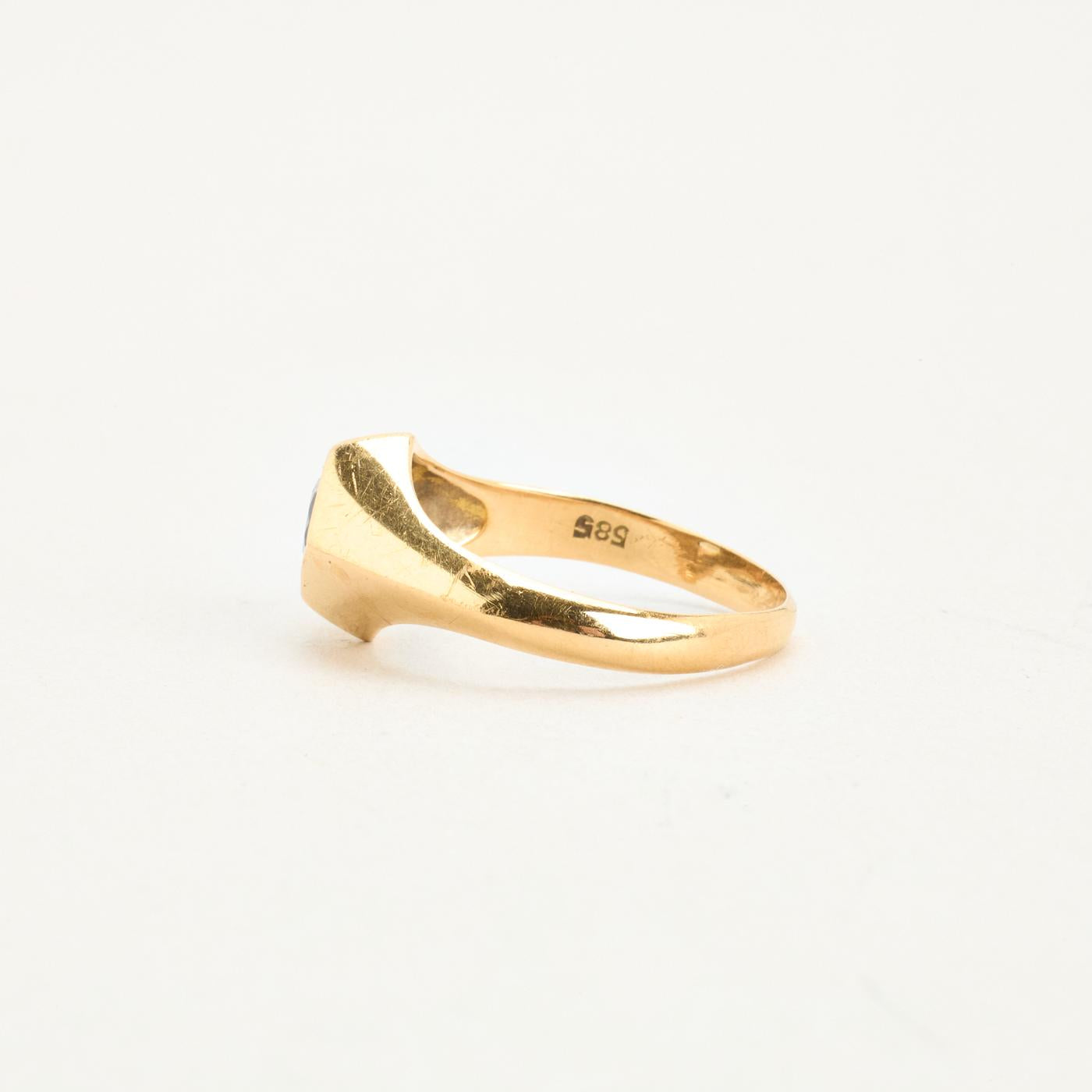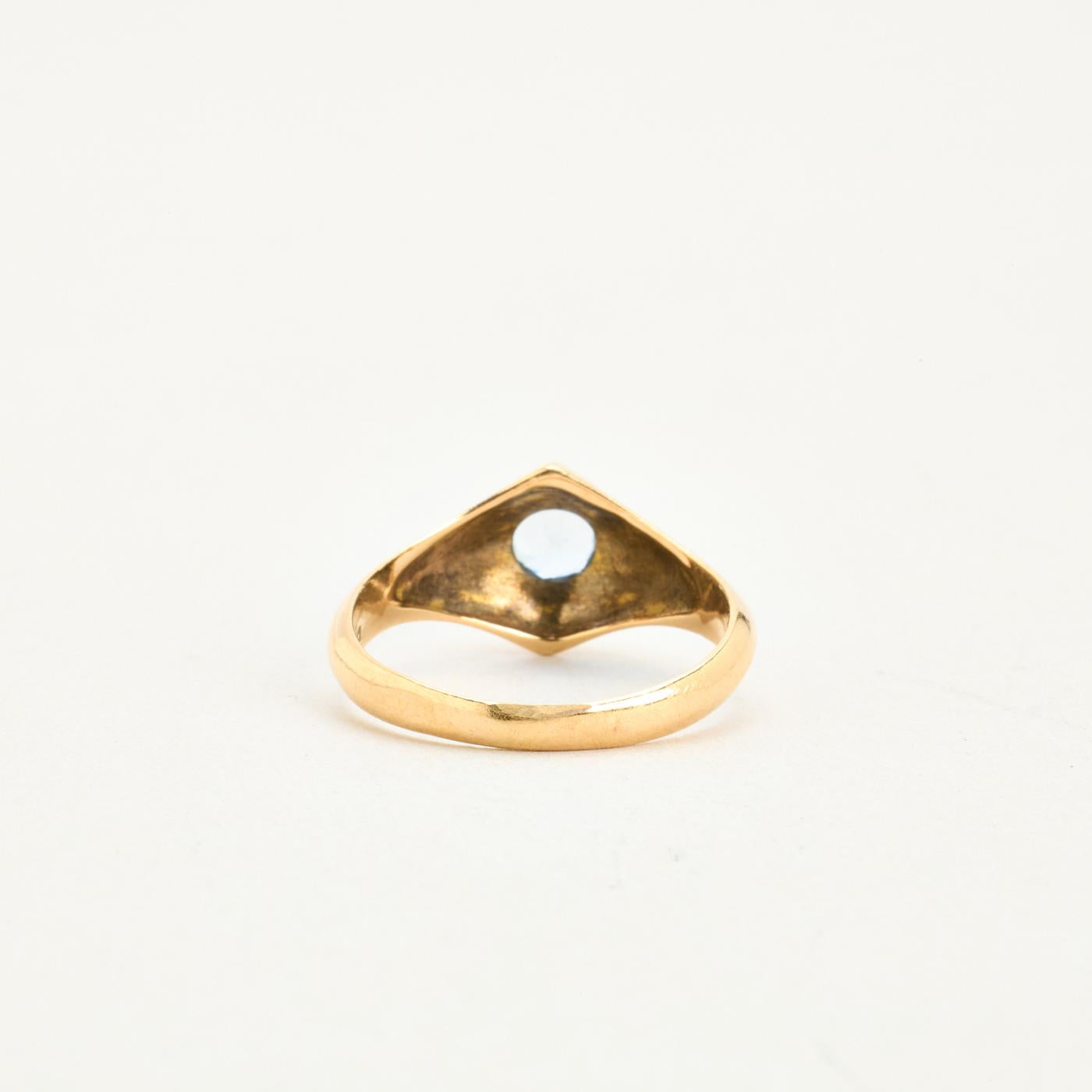 Signetring i 14K guld med lyseblå sten, str. 56