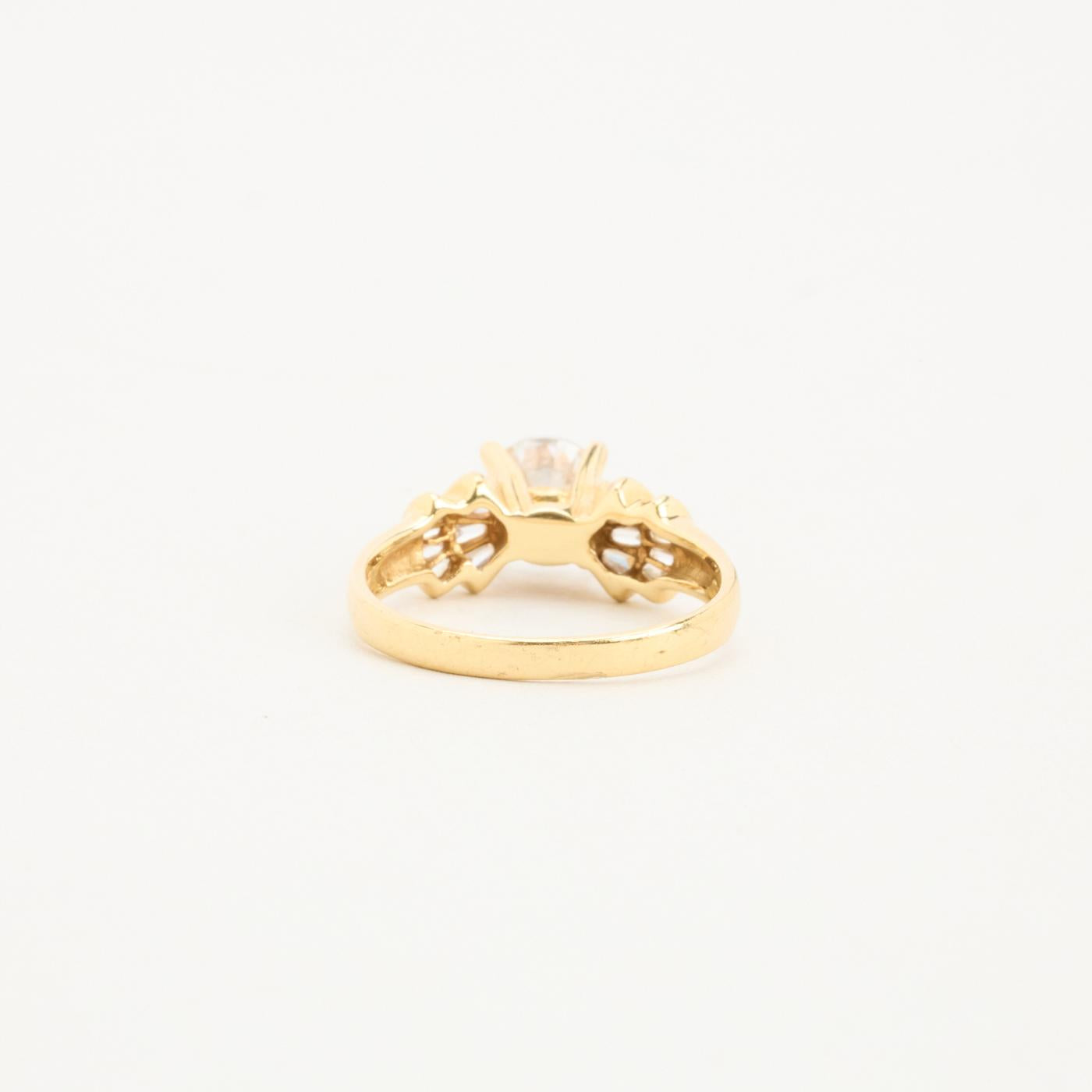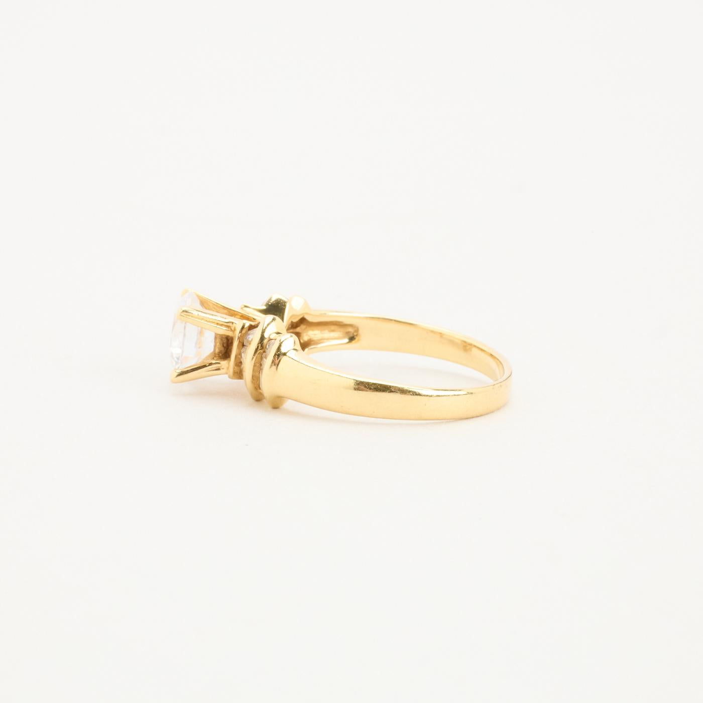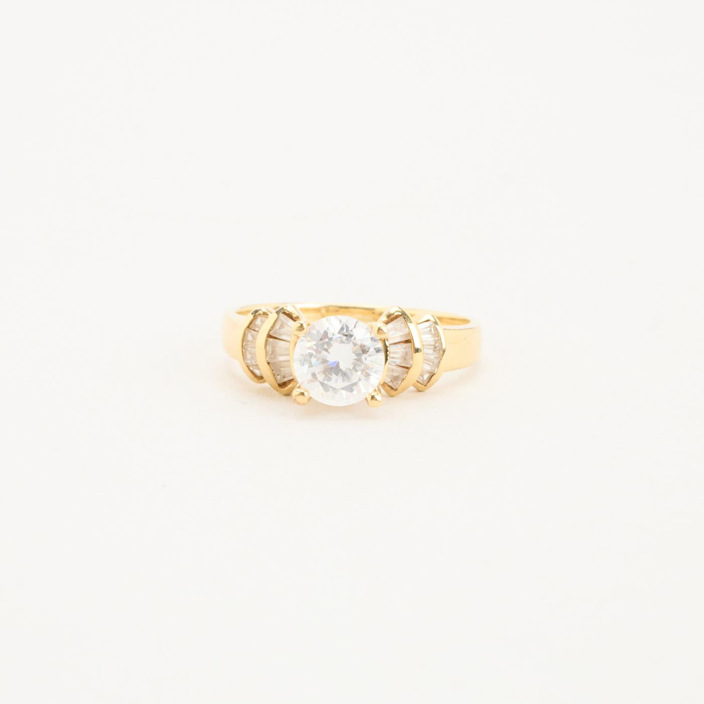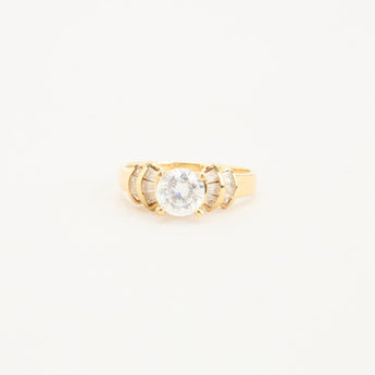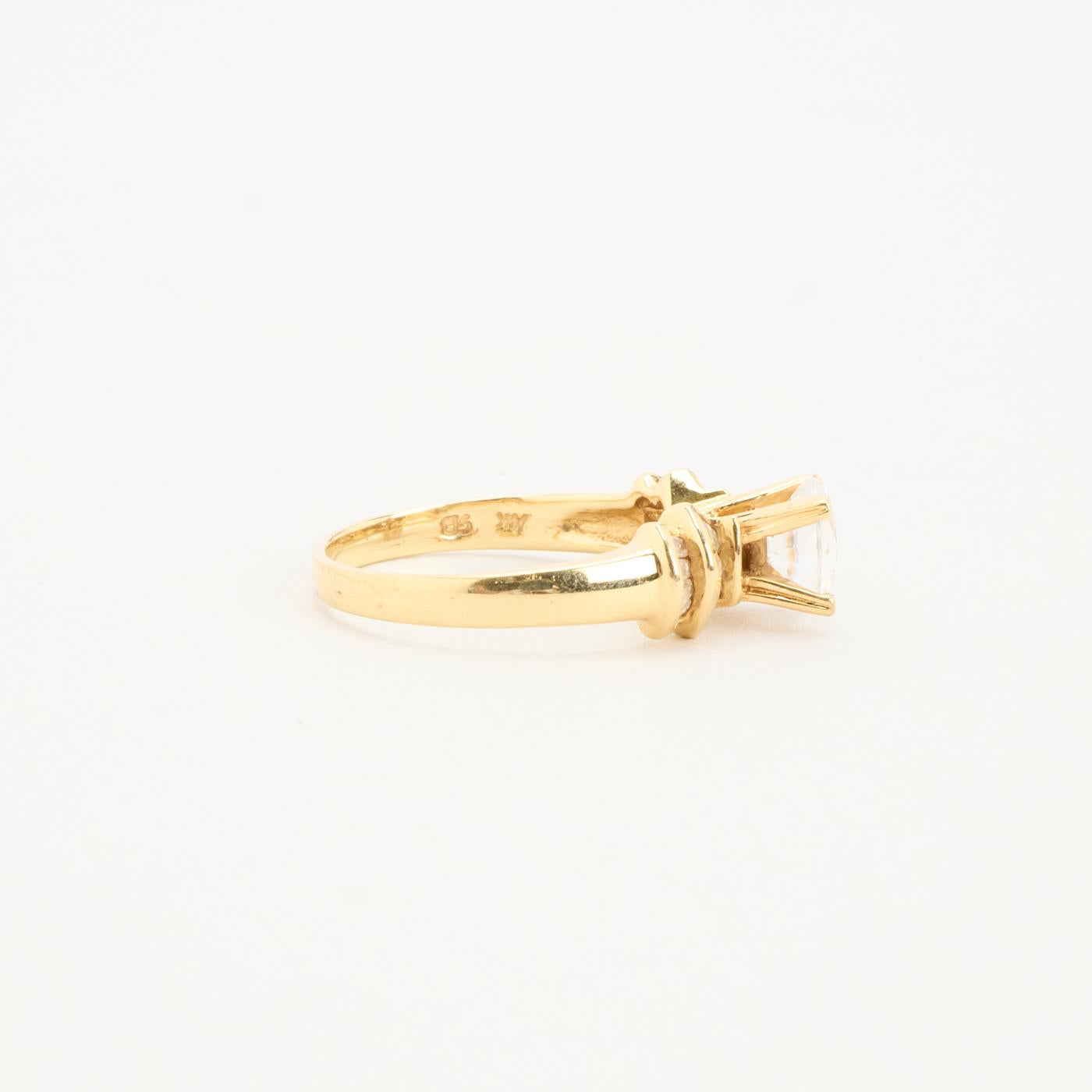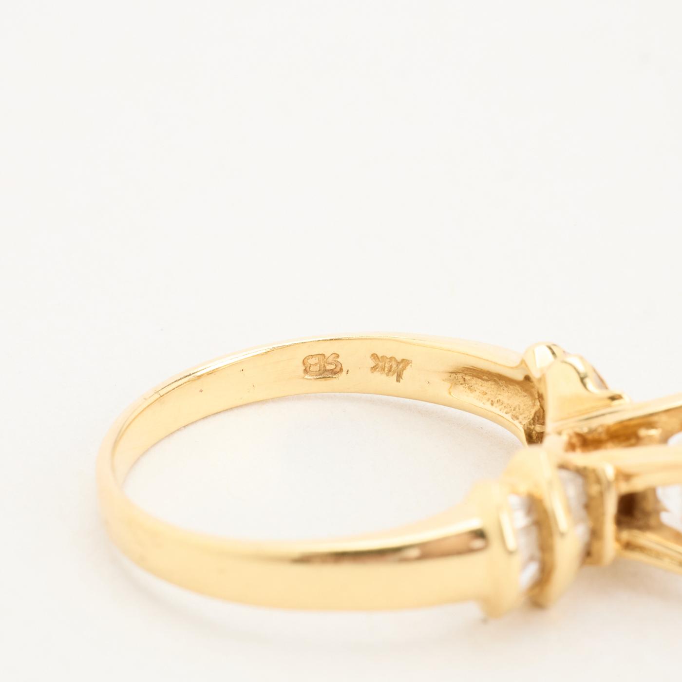 Solitairering i 14K guld med flere hvide sten, Str. 55
