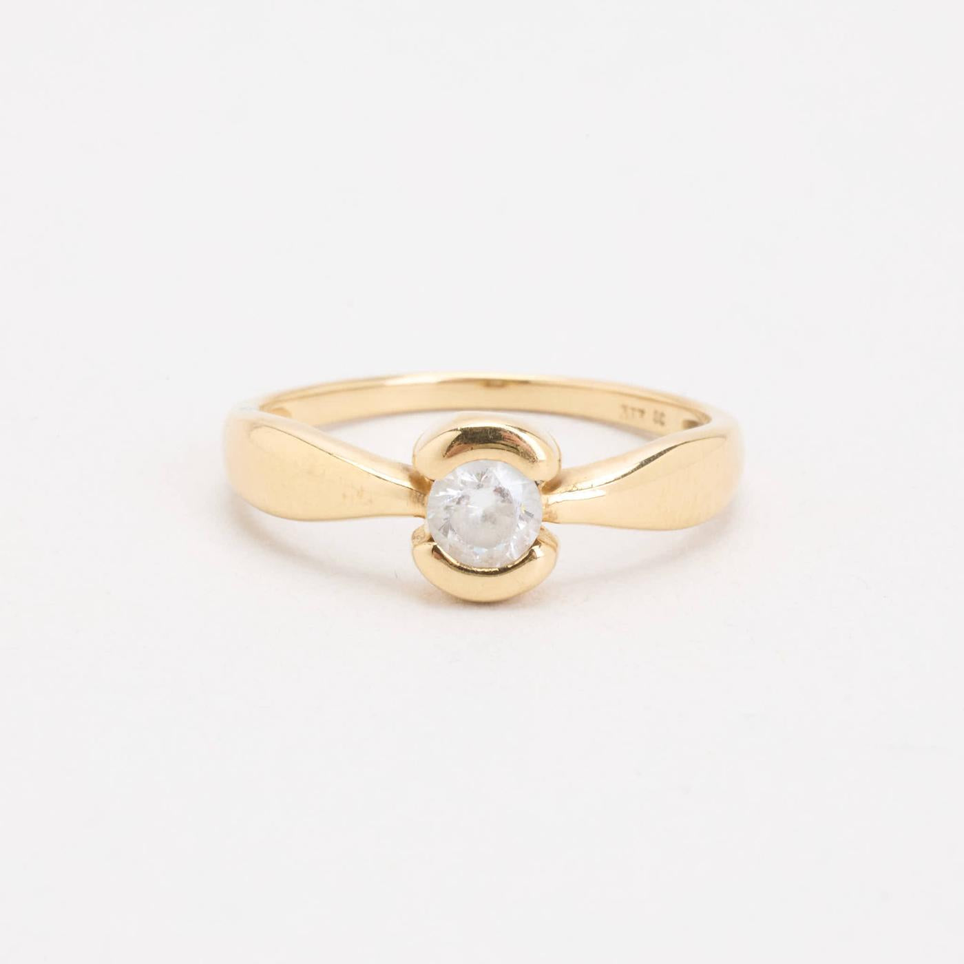 Solitairering i 8K guld med en zirkonia, Str. 54