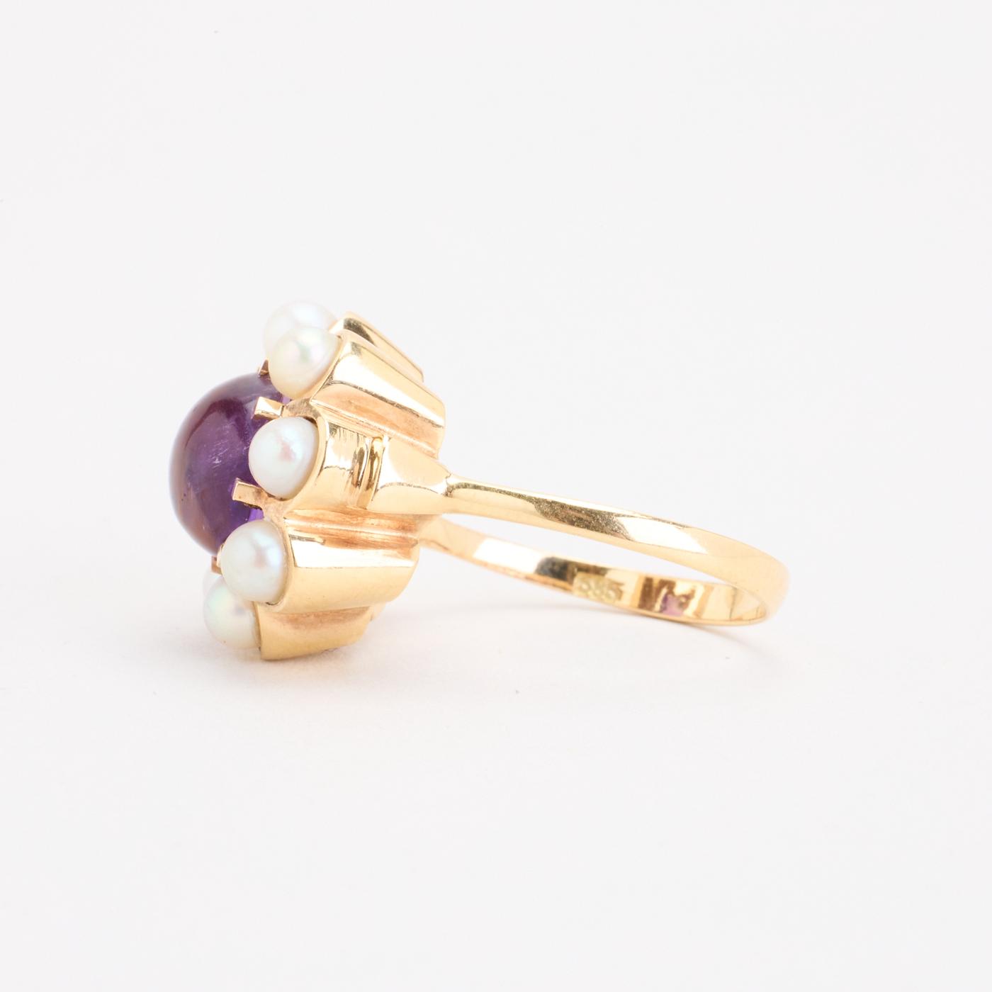 Perlering i 14K guld med en perle, str. 54