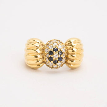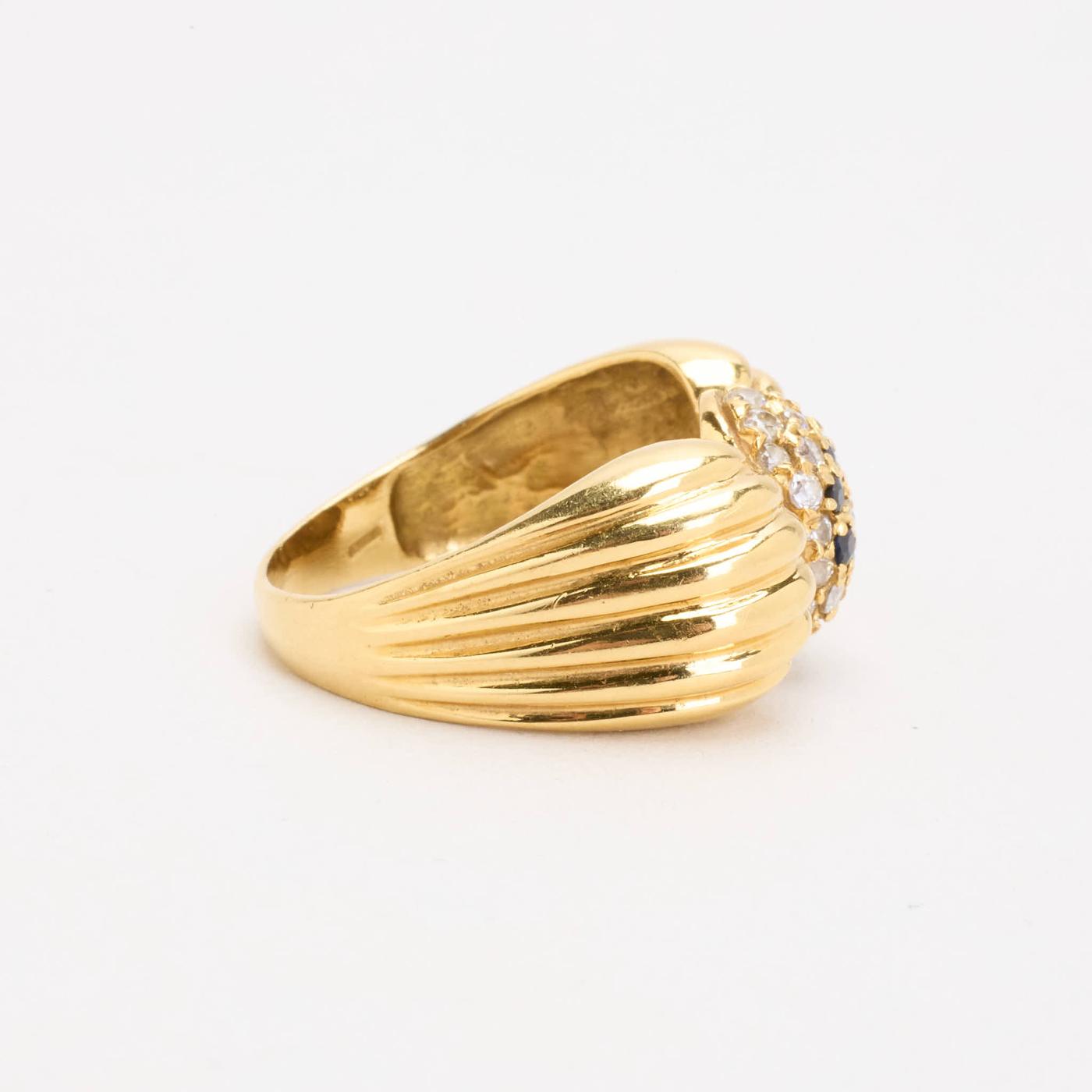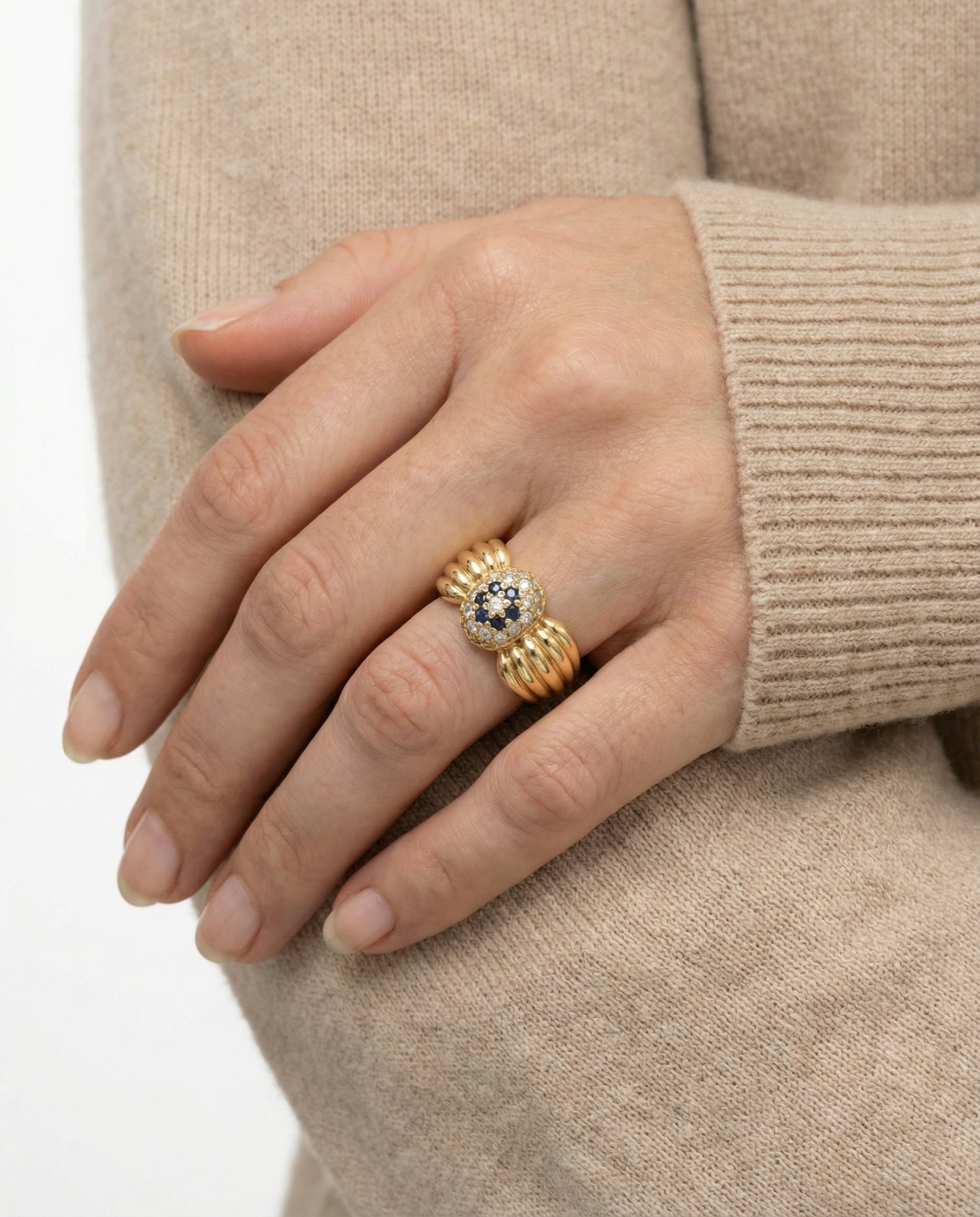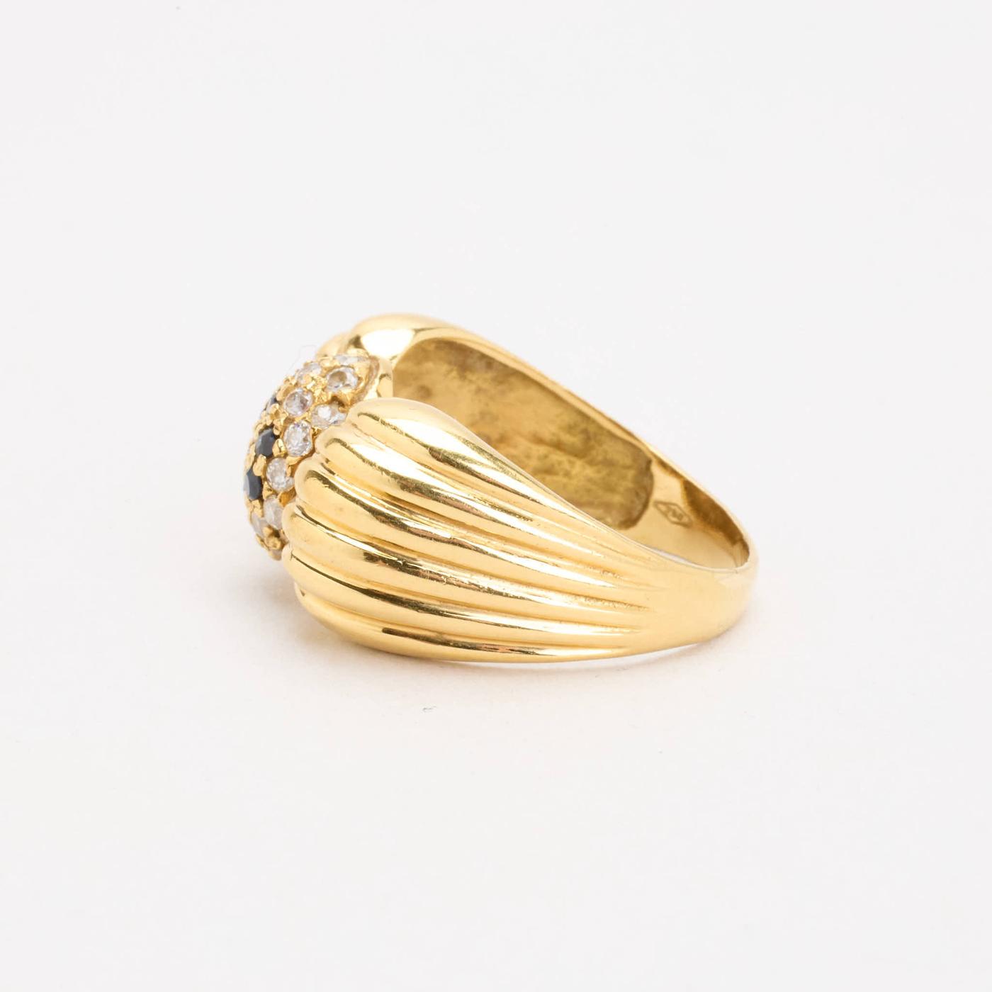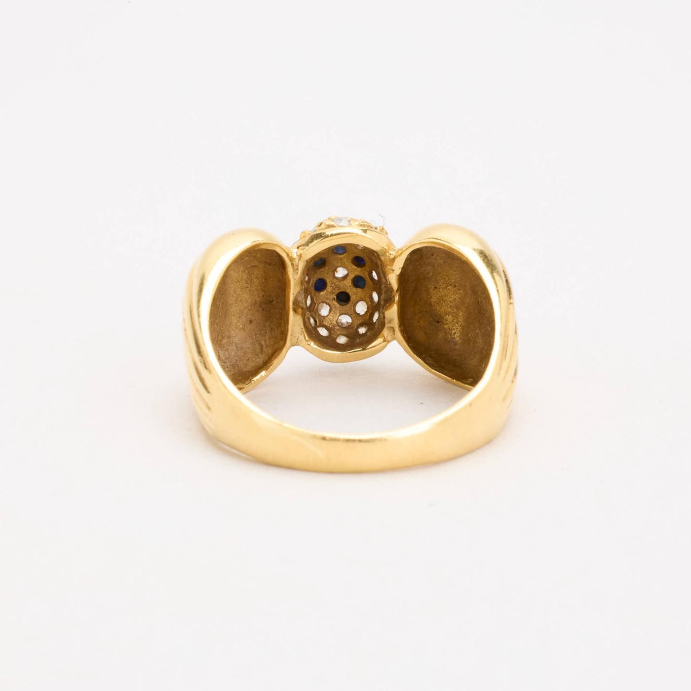 Pavéring i 18K guld med flere hvide og blå sten, Str. 60