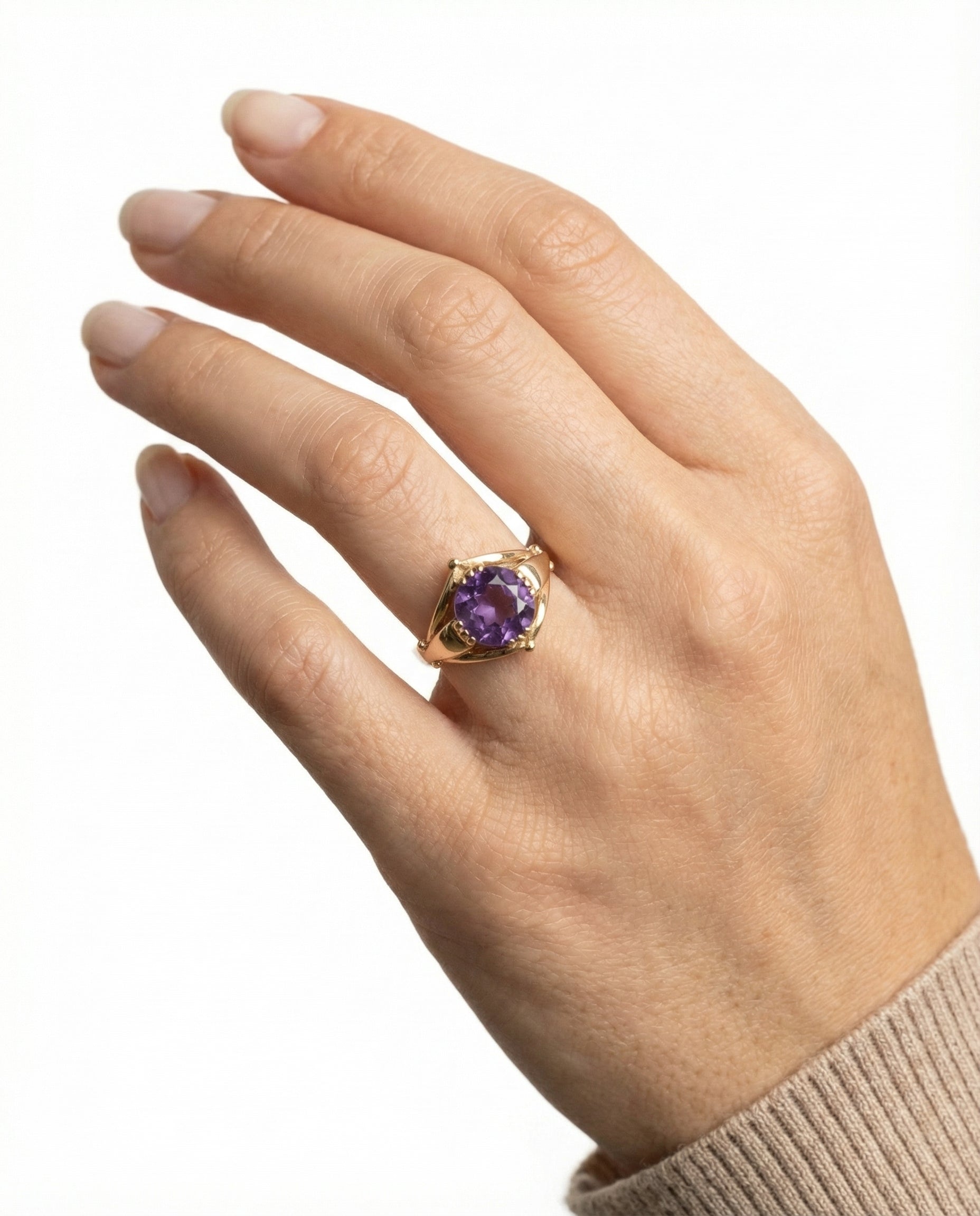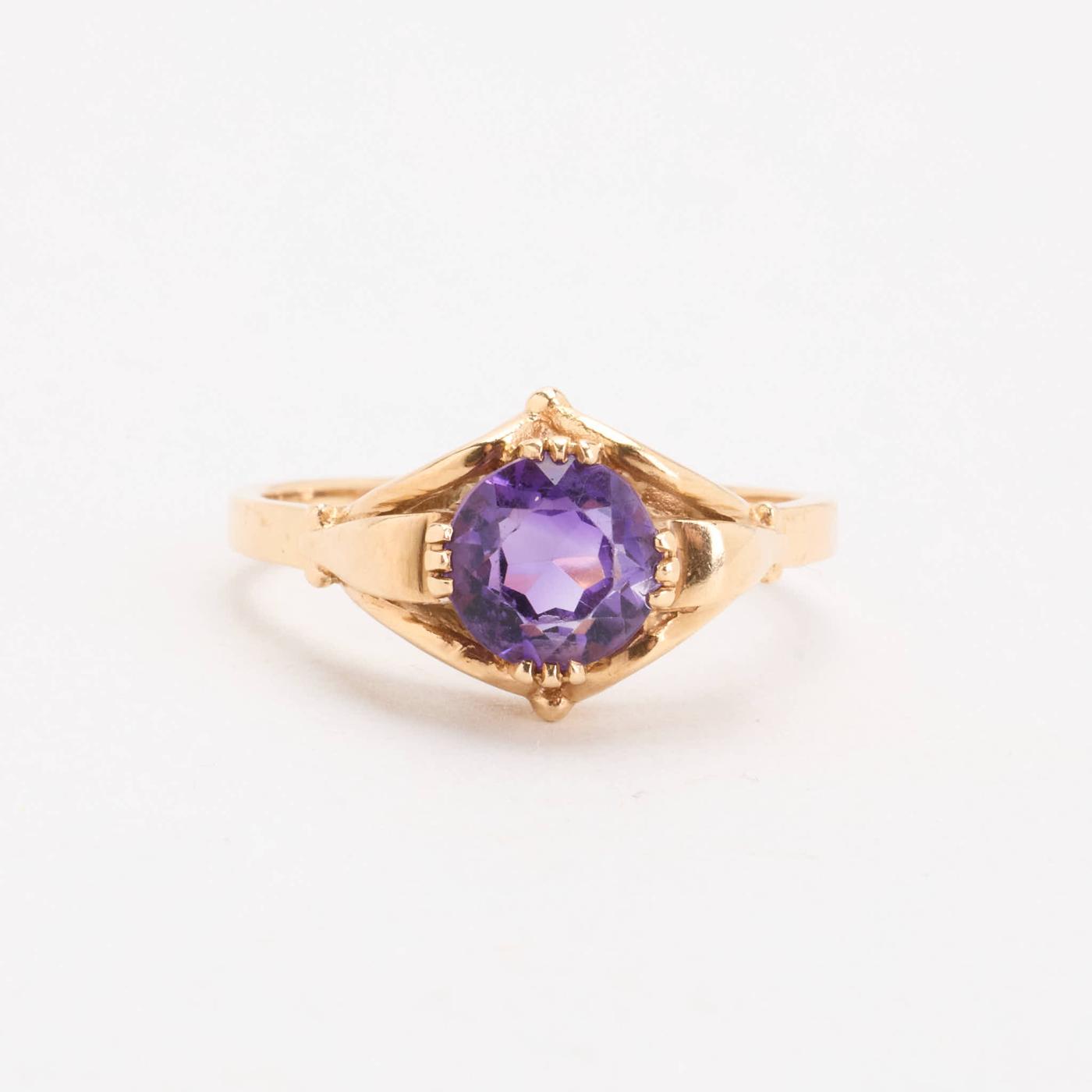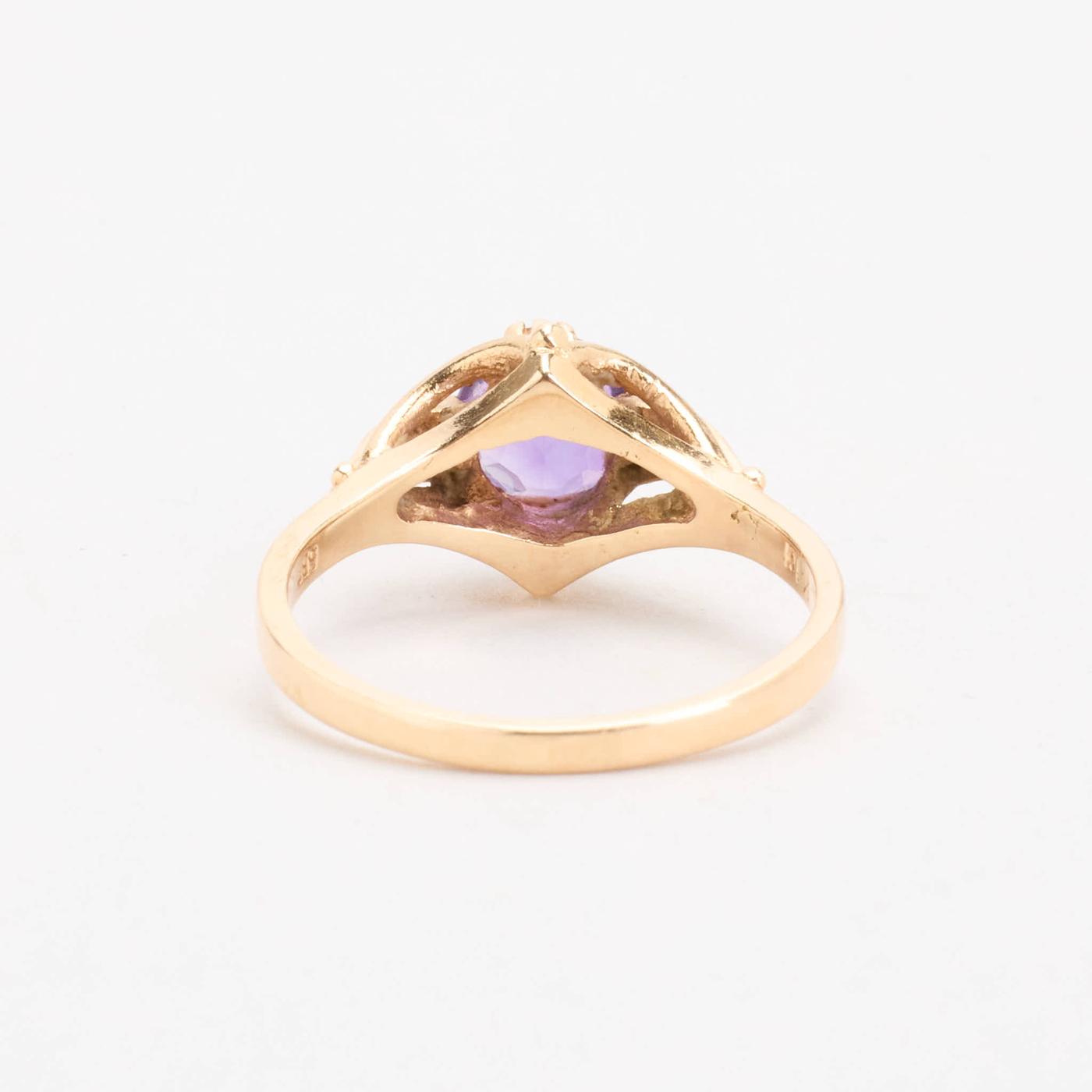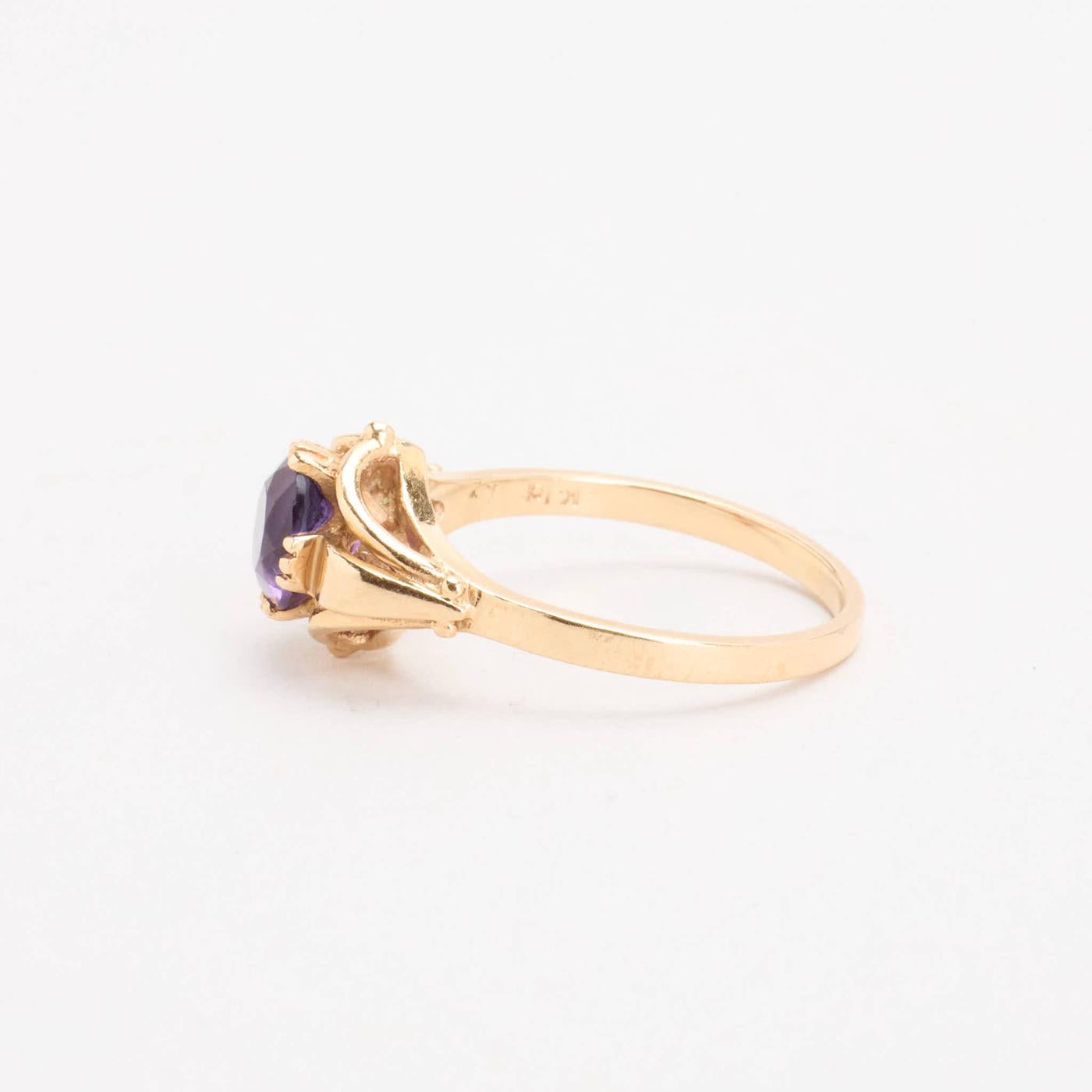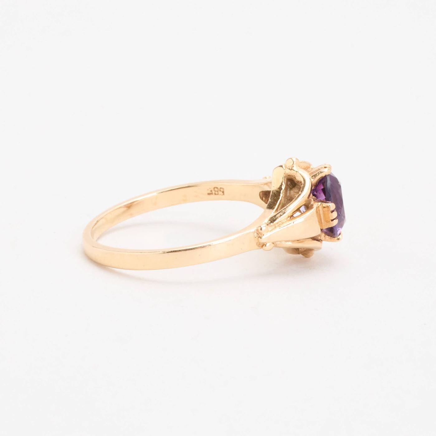 Cocktail ring i 14K guld med en lilla sten, Str. 59