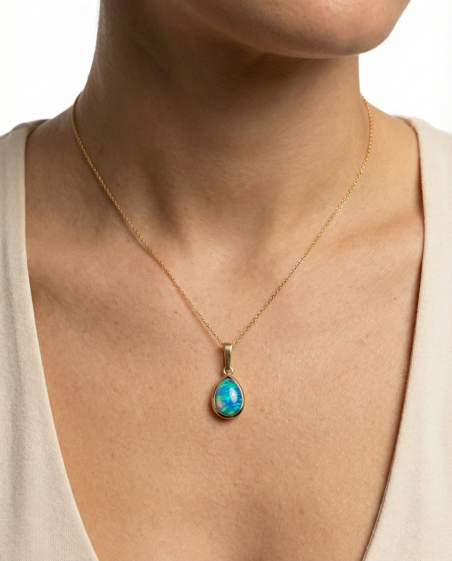 Dråbe vedhæng i 14K guld med en opal, 2.2 cm, 0.45 g