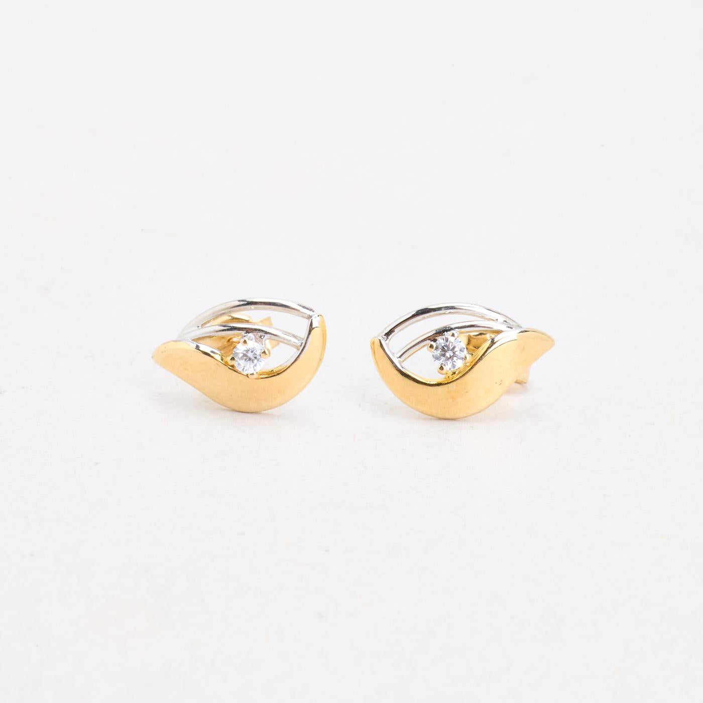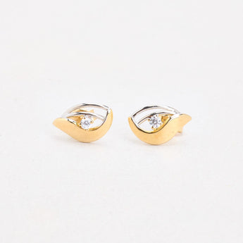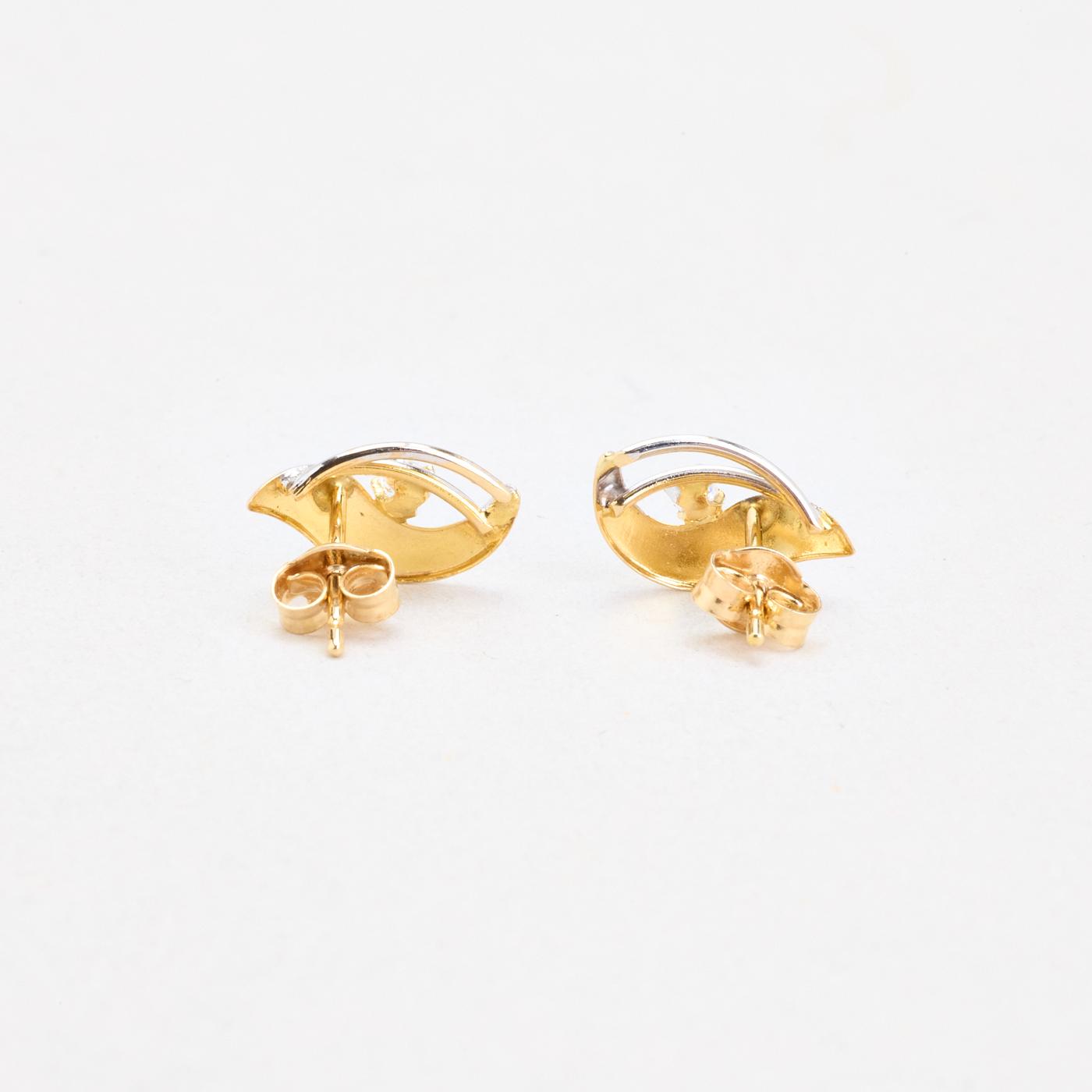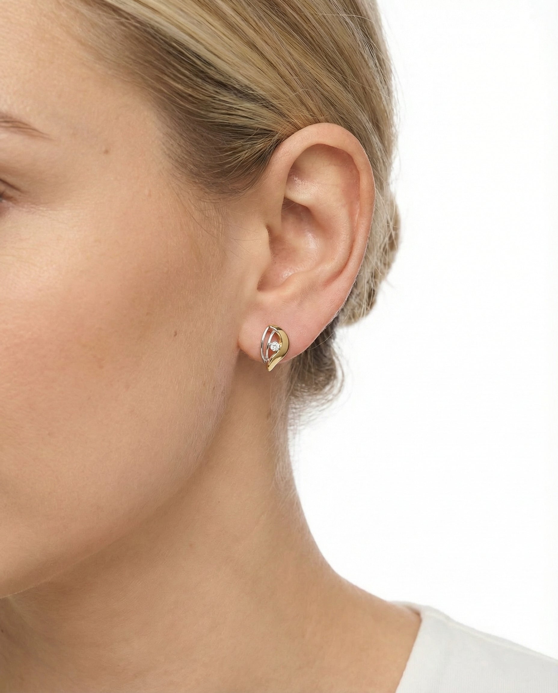 Øreringe med stik i 14K guld og hvidguld med en zirkonia, 1.5 cm,