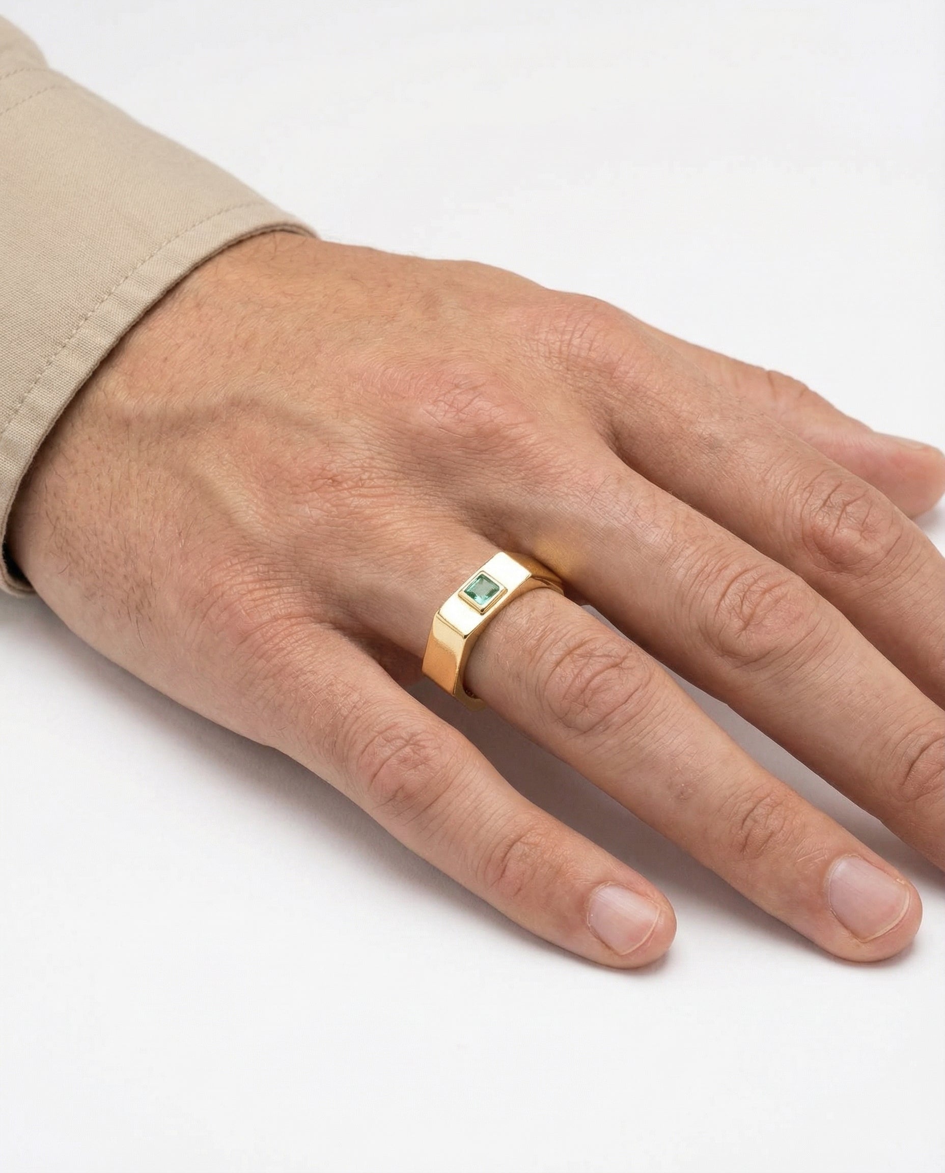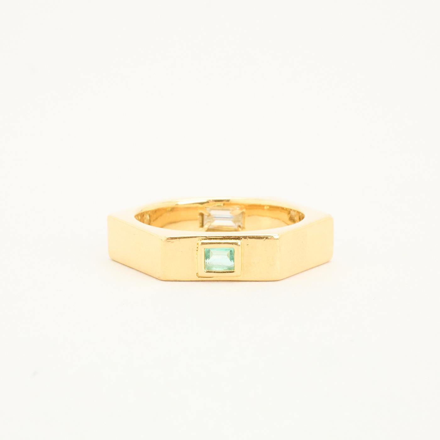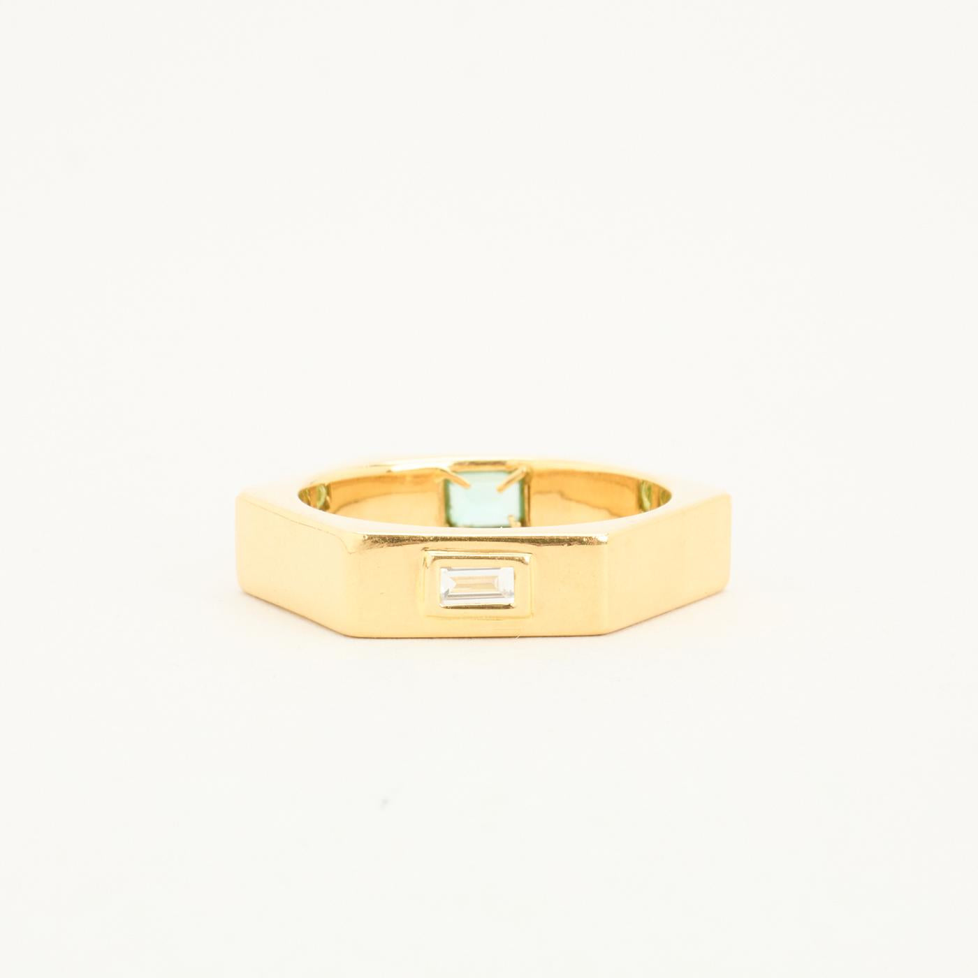 Bånd i 18K guld med en diamant (0.2 ct) og en beryl, Str. 70
