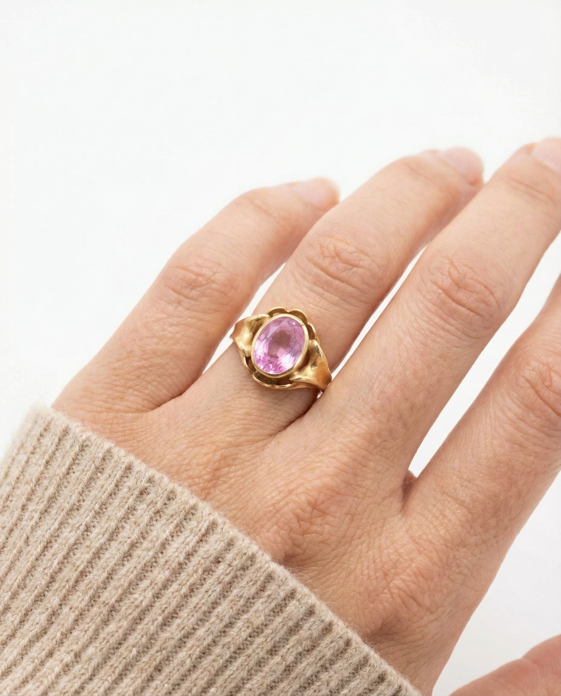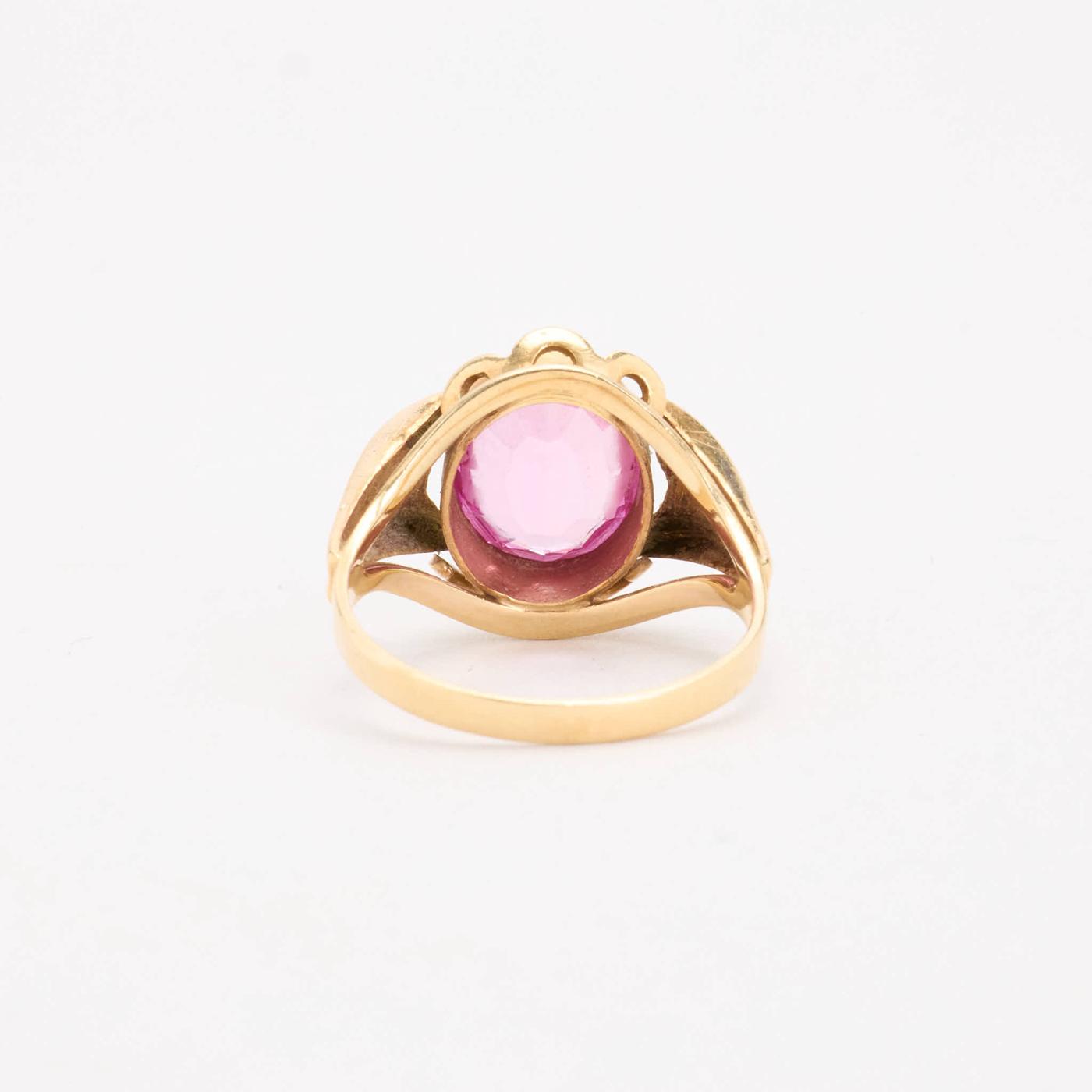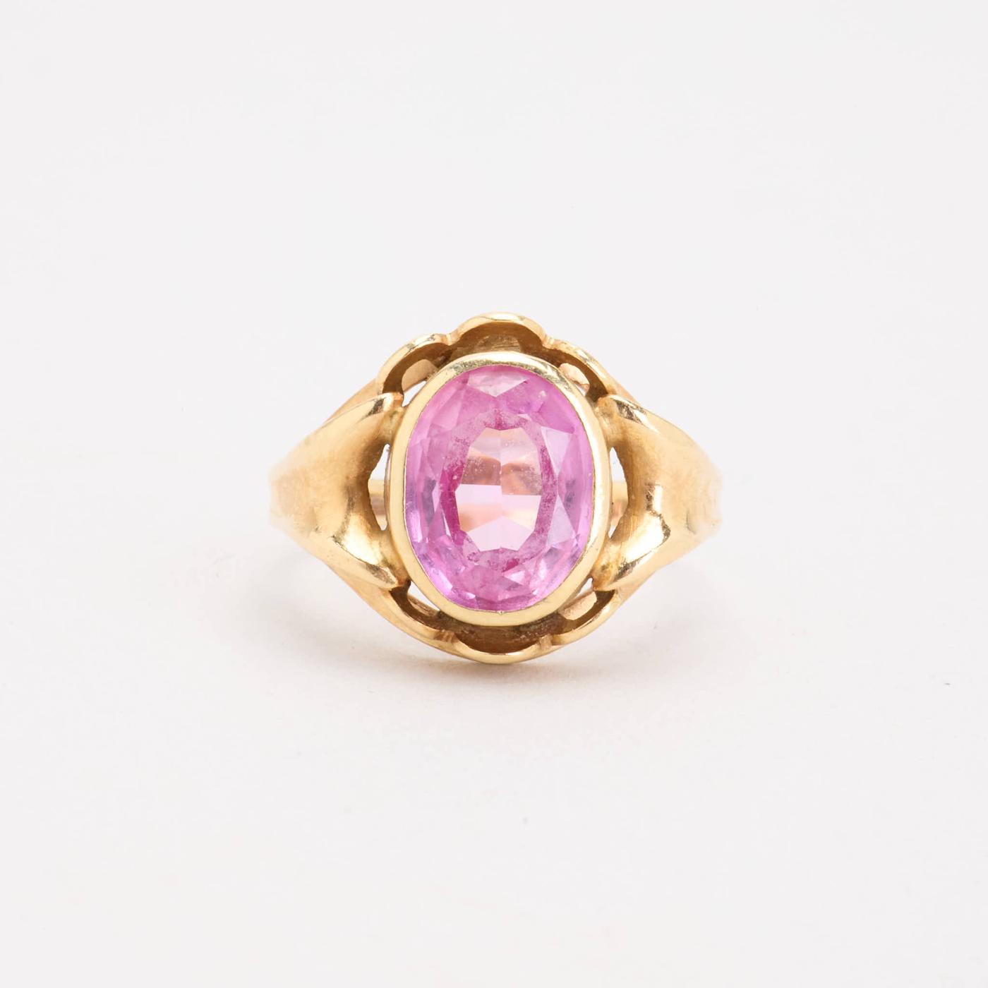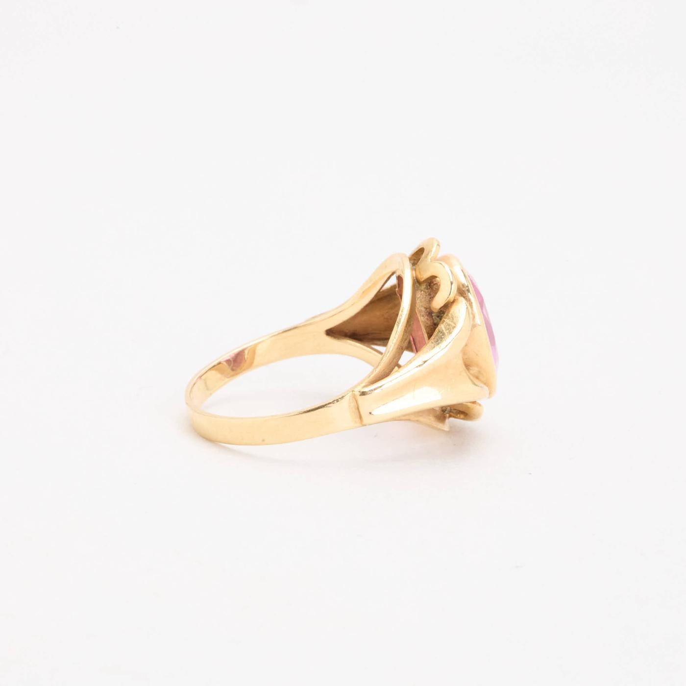 Signetring i 14K guld med en lyserød sten, Str. 51