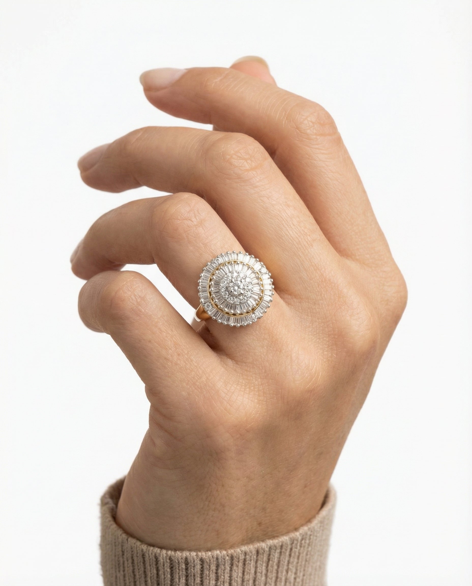 Illusionring i 14K guld og 14K hvidguld med diamanter (1.01 ct), Str. 53, 3.23 g