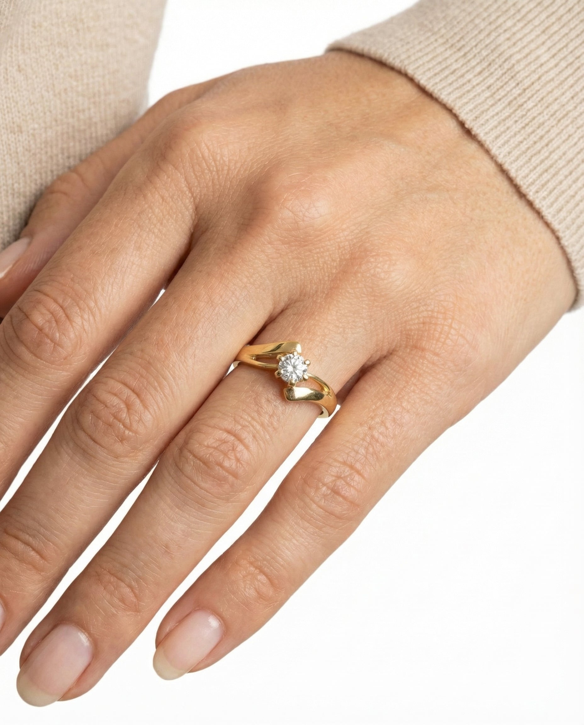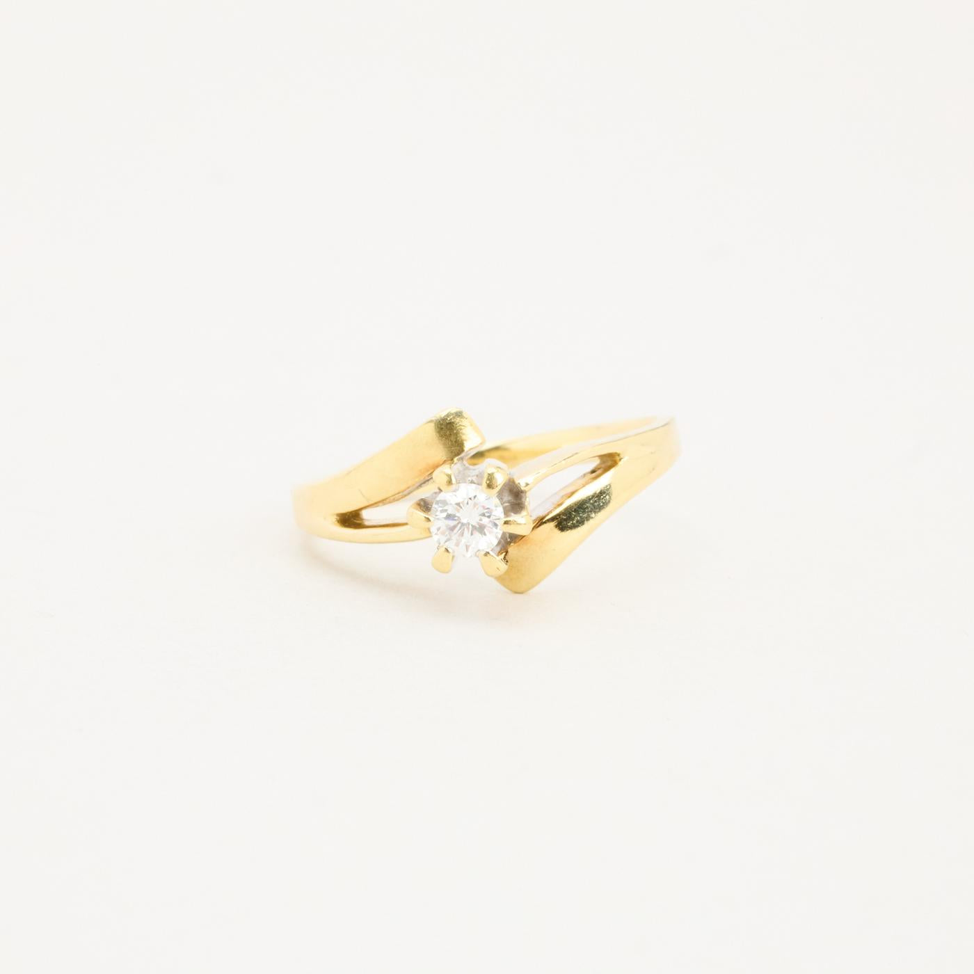 Solitairering med diamant (0.16 ct) i 14K guld str. 53, 2.93 g