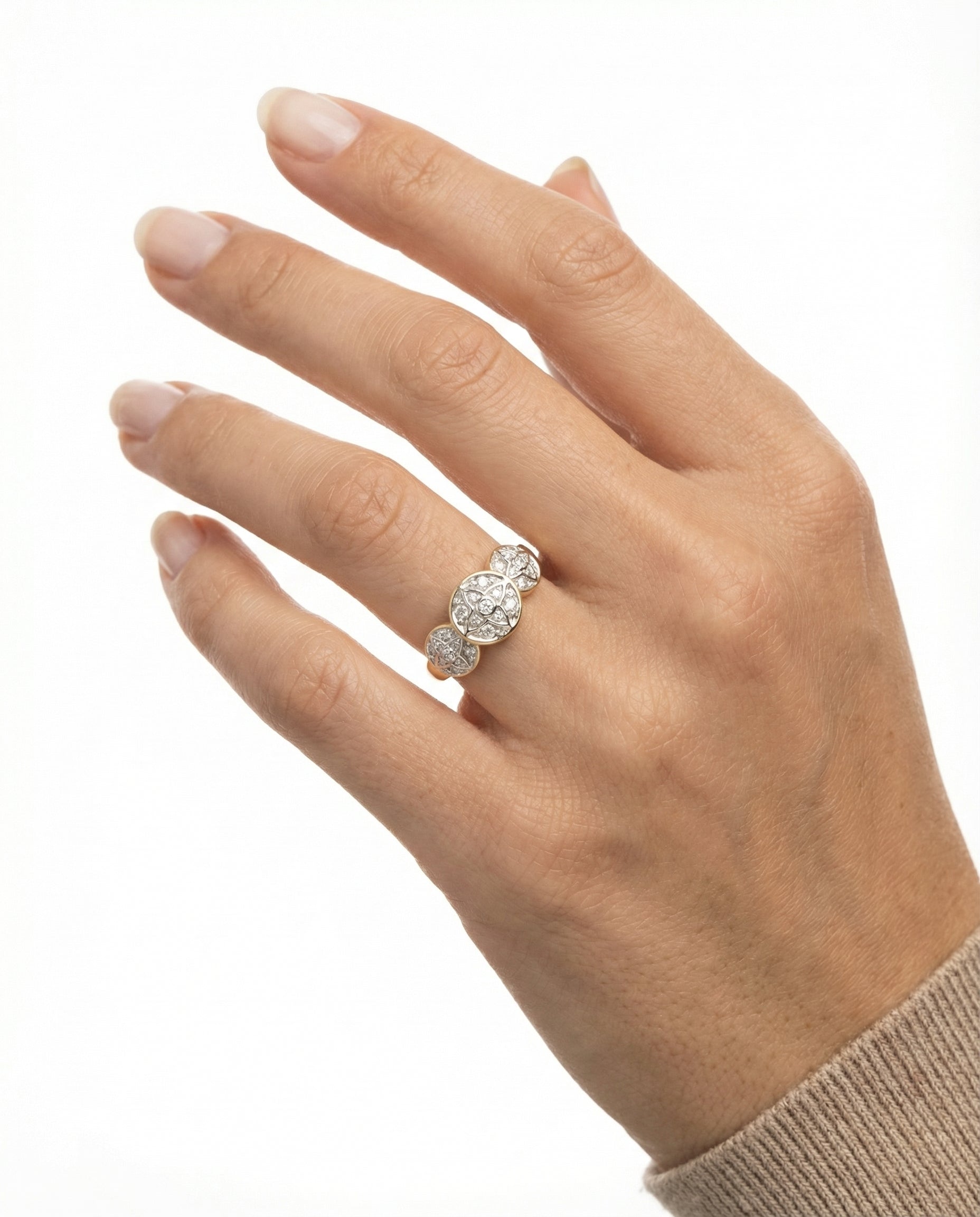 Illusion ring med diamant (0.13 ct) i 9K guld og hvidguld str. 54, 3.5 g