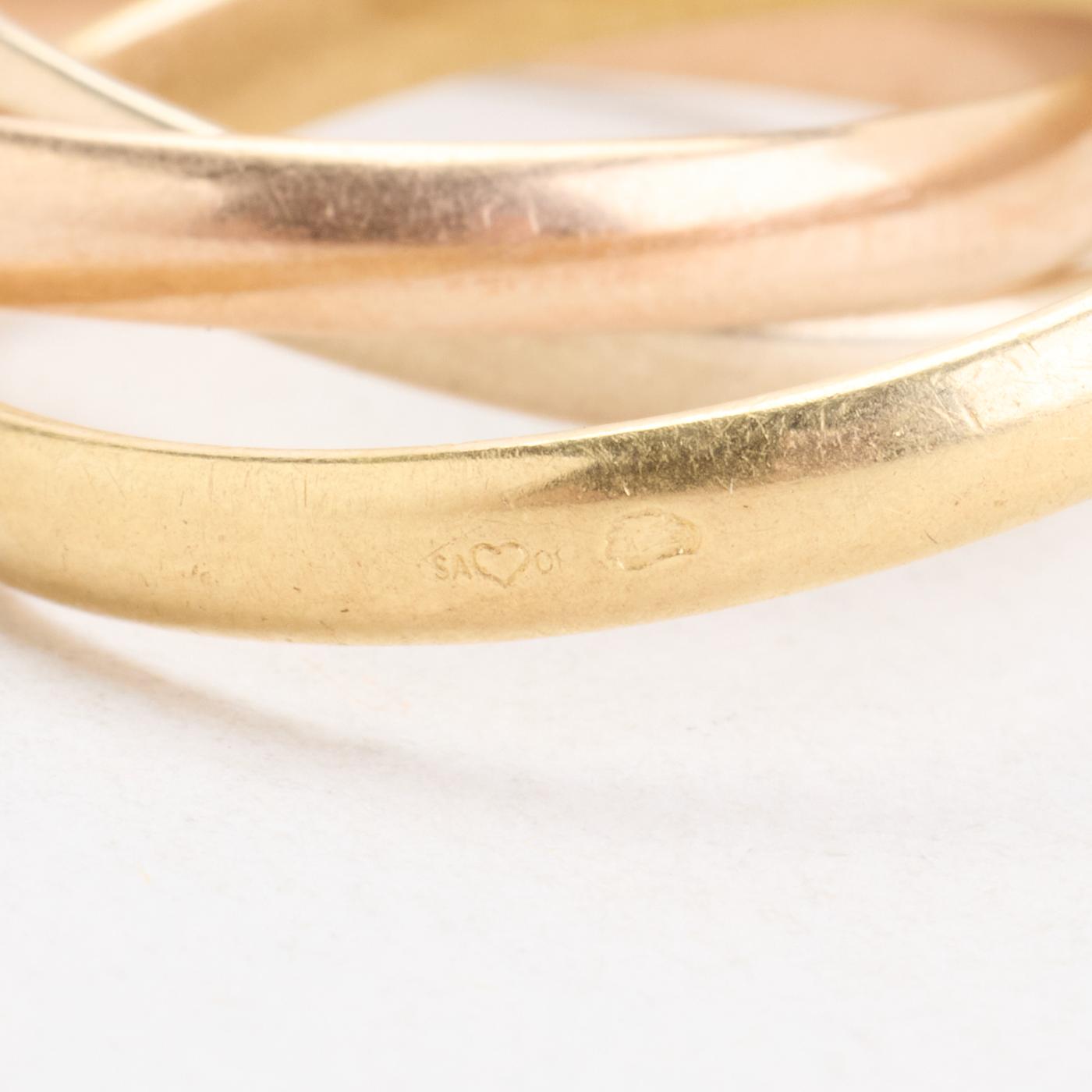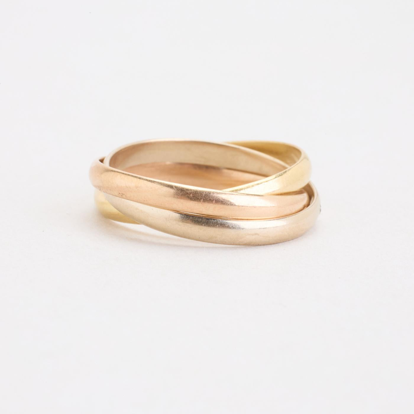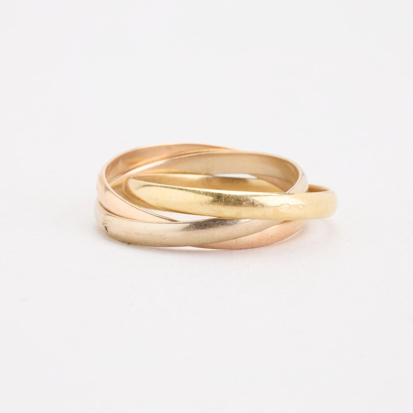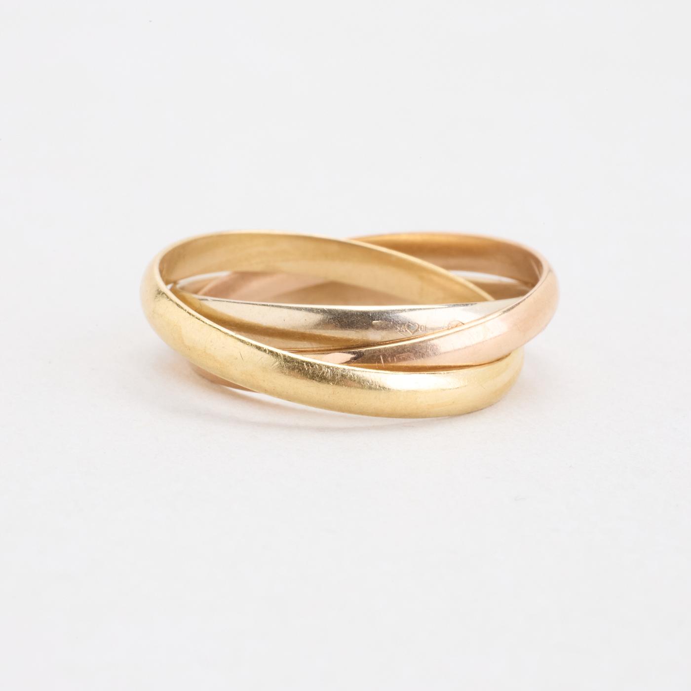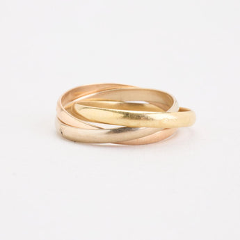Tre i en ring i 18K guld, hvidguld og rosaguld, str. 57