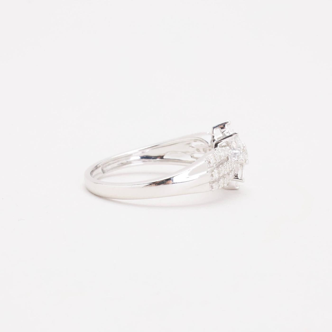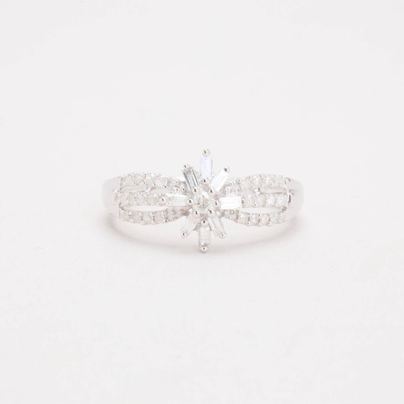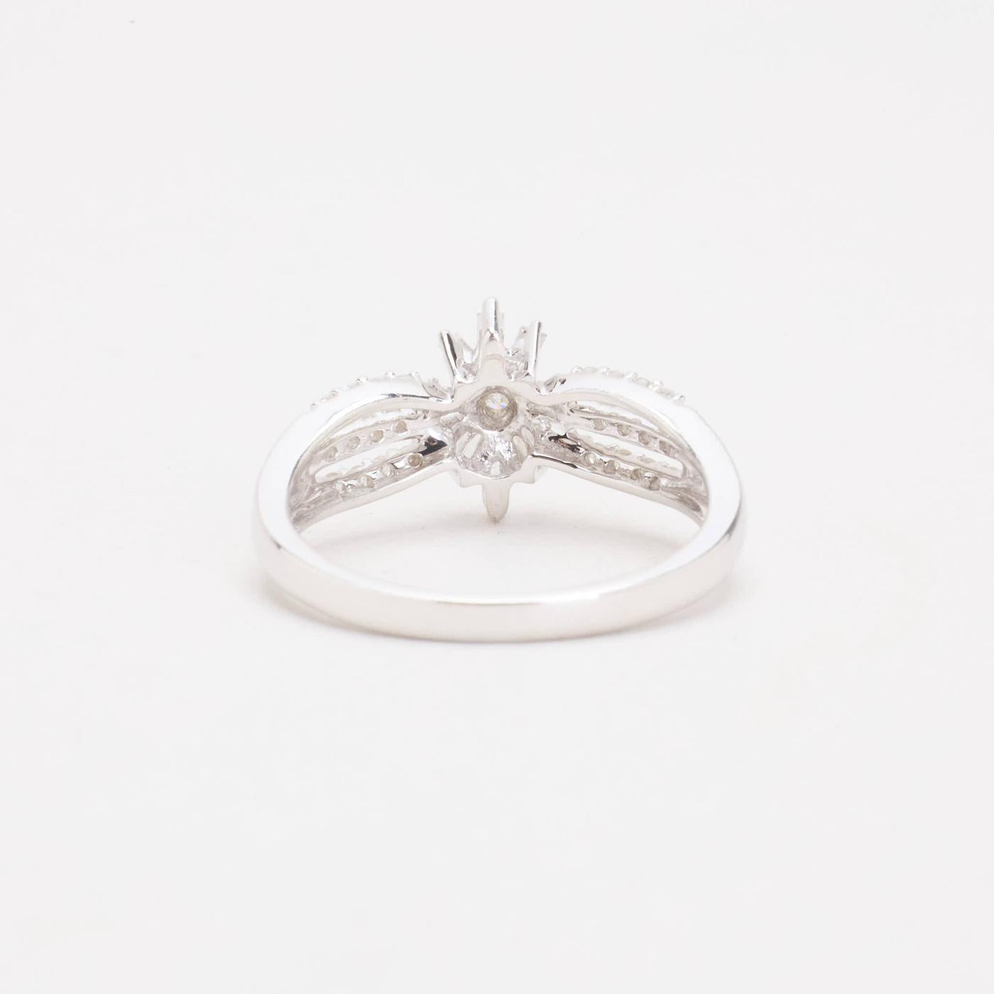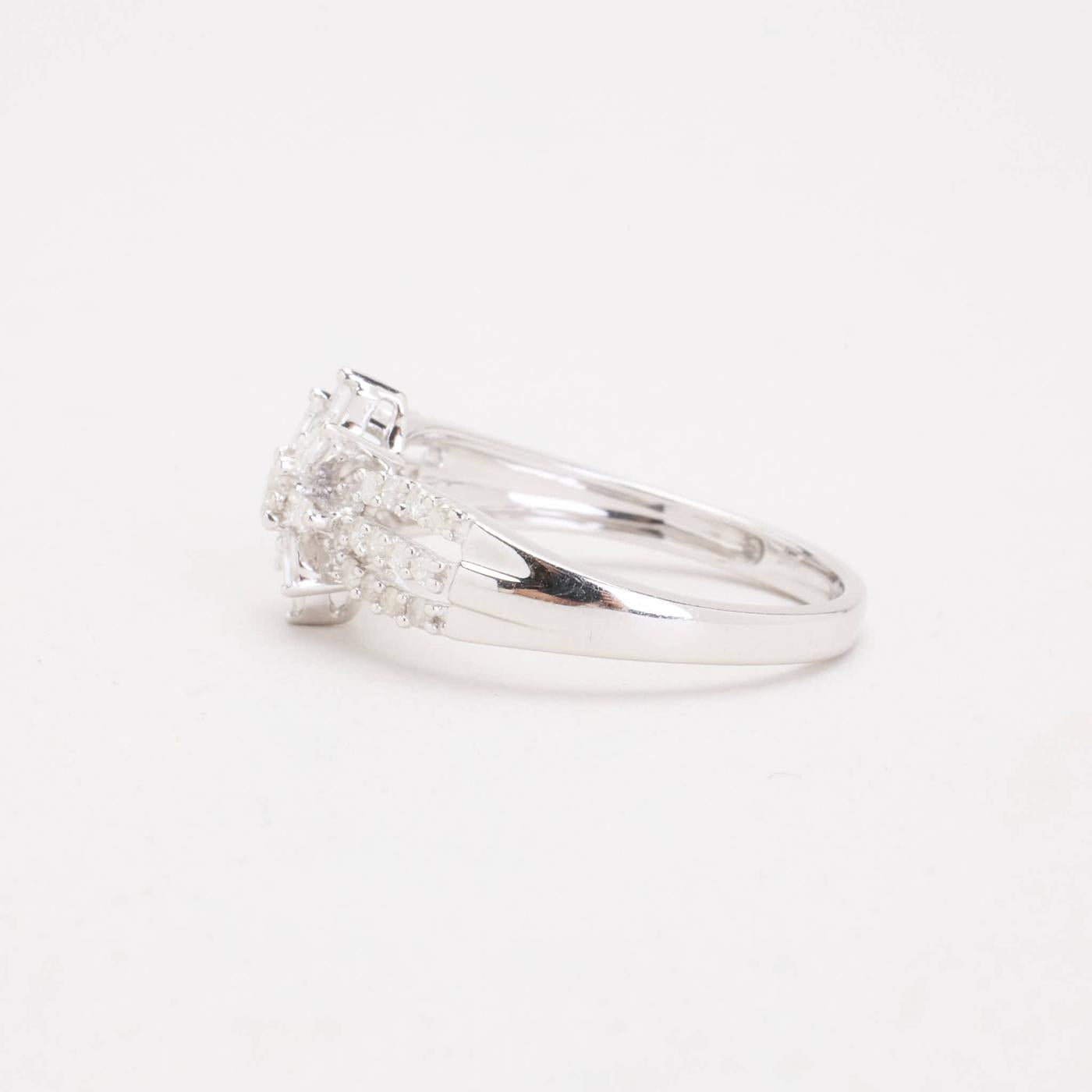 Blomsterring i 9K hvidguld med diamanter (0.29 ct), Str. 54, 2.56 g