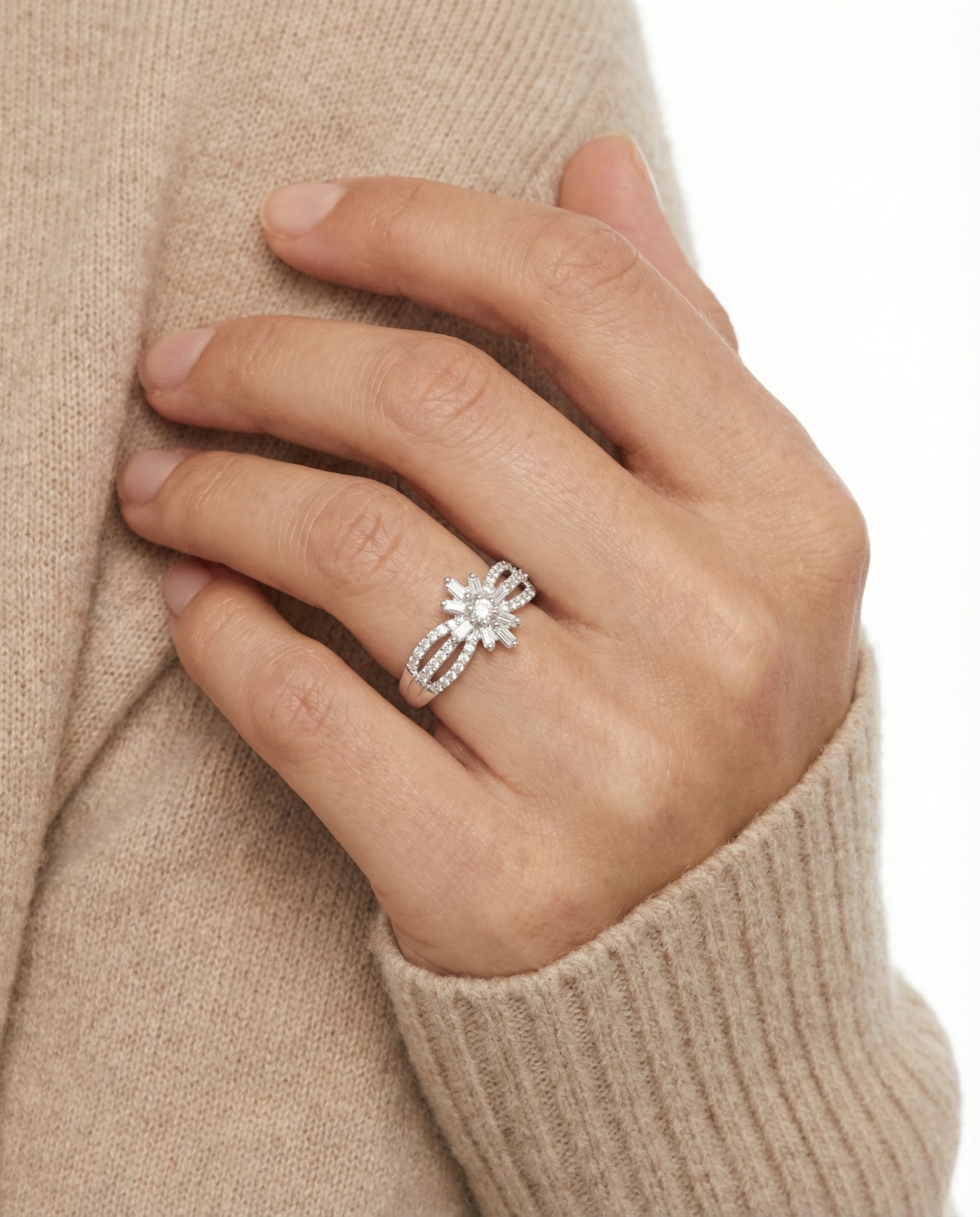 Blomsterring i 9K hvidguld med diamanter (0.53 ct), Str. 54, 2.56 g