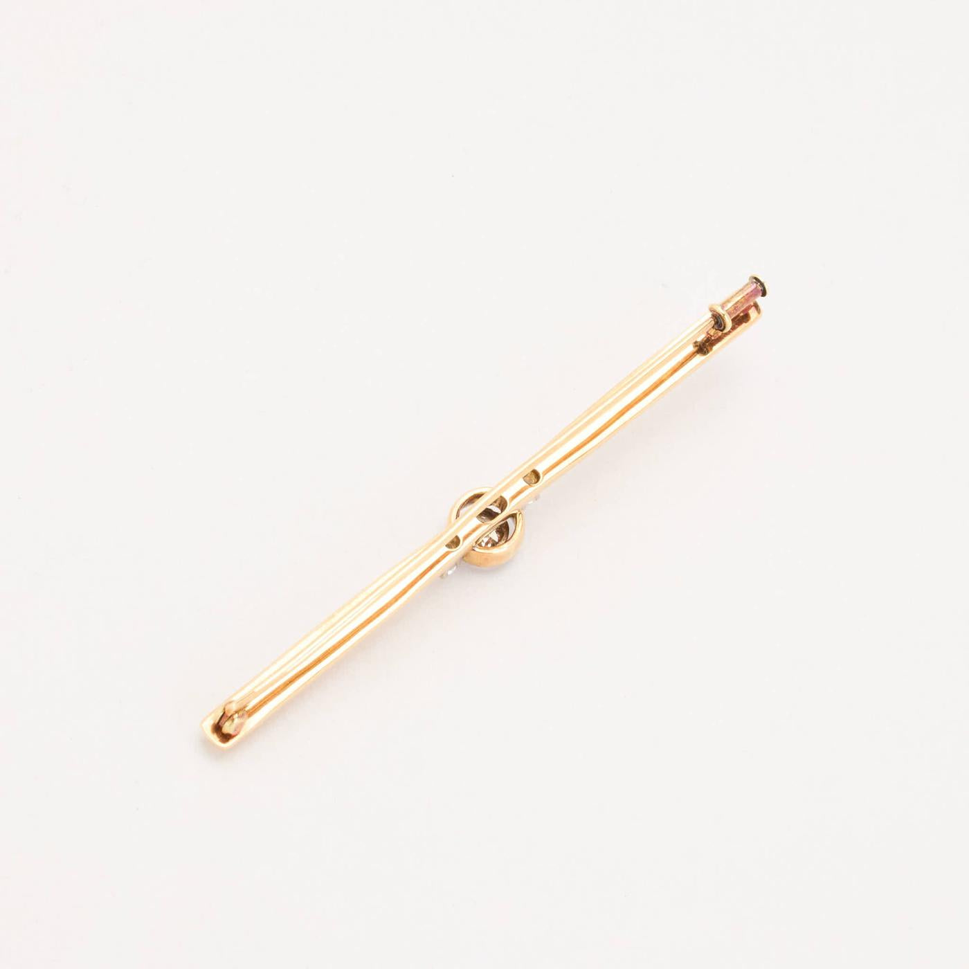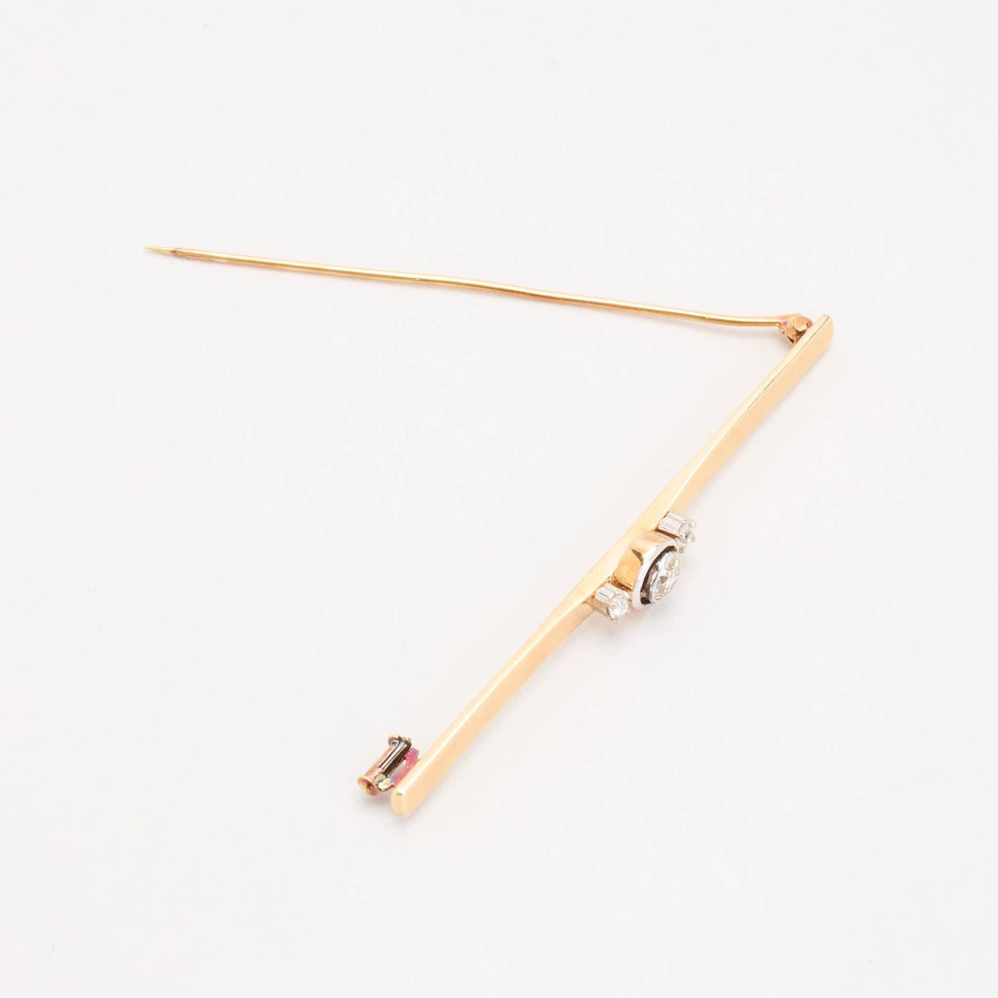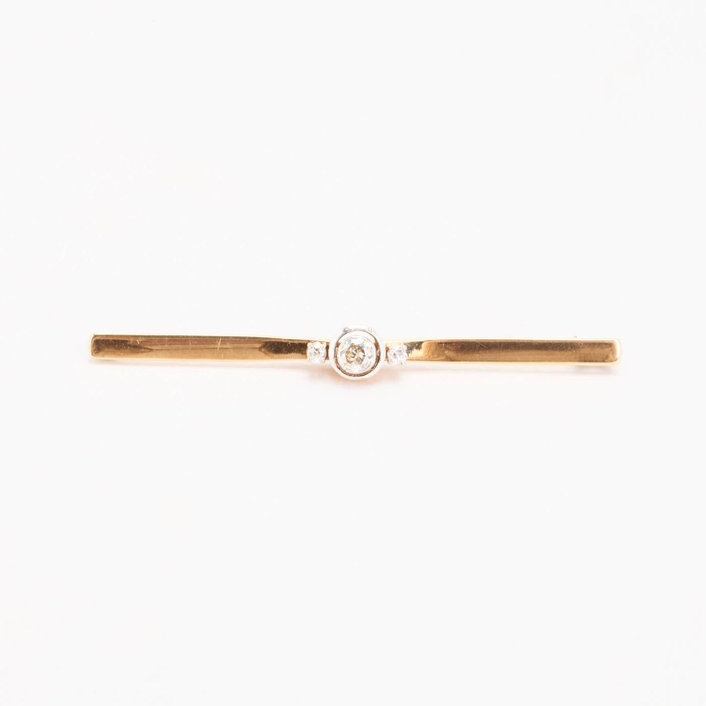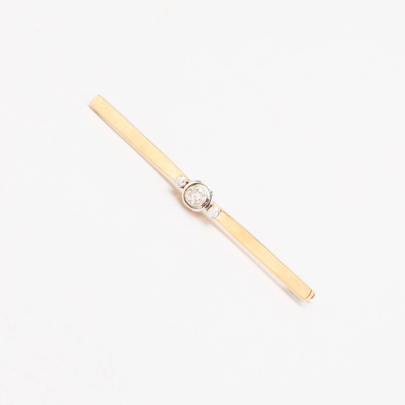 Broche i 14K guld og hvidguld med diamanter (0.46 ct), 6.9 cm, 6.14 g