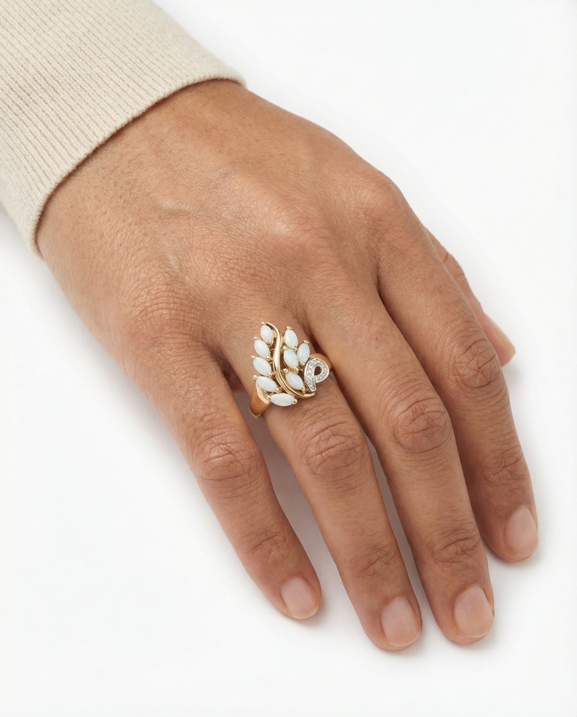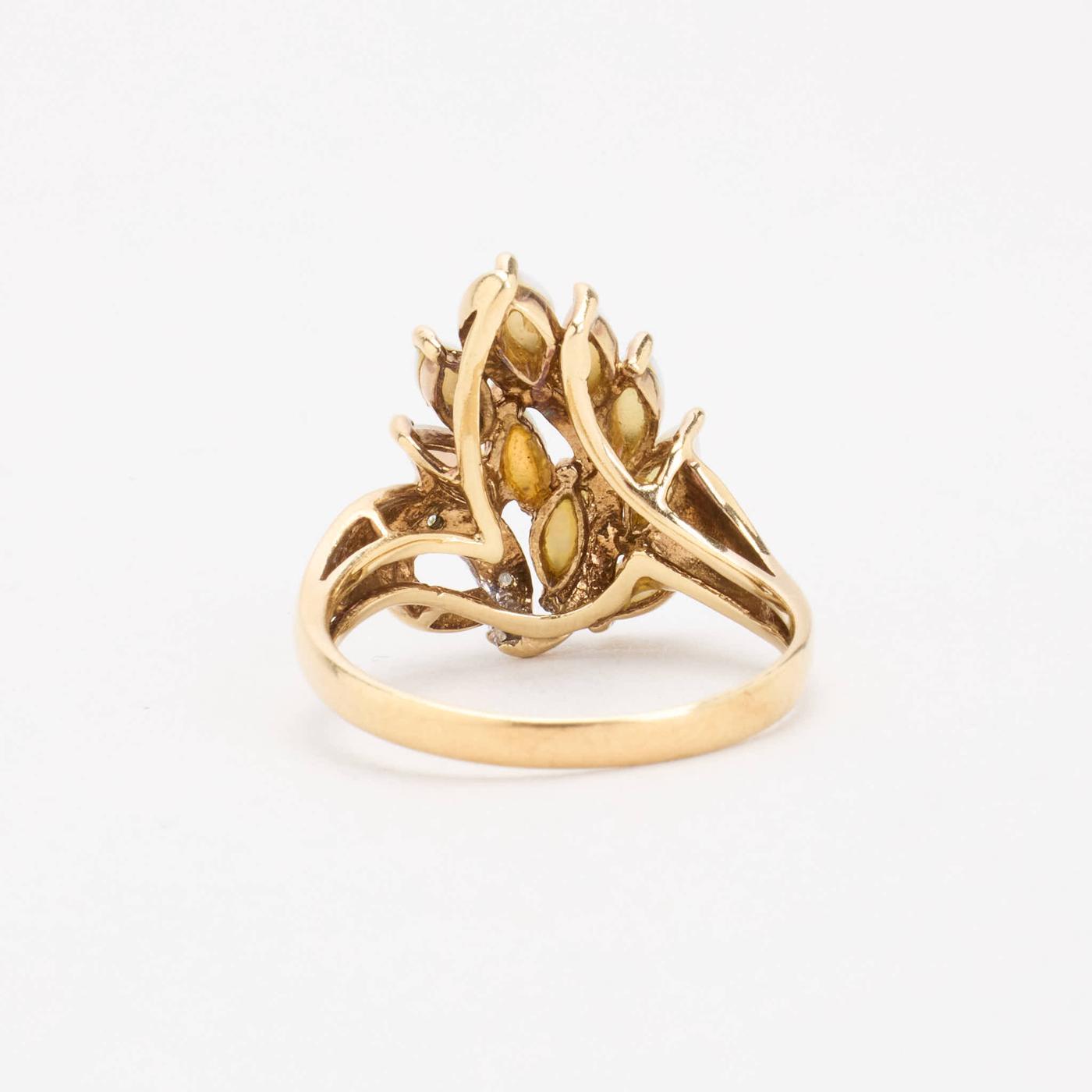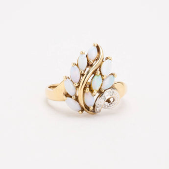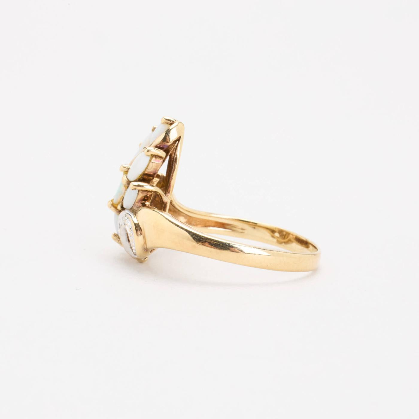 Clusterring med diamant (0.02 ct) i 8K guld med en opal, str. 60, 4.32 g