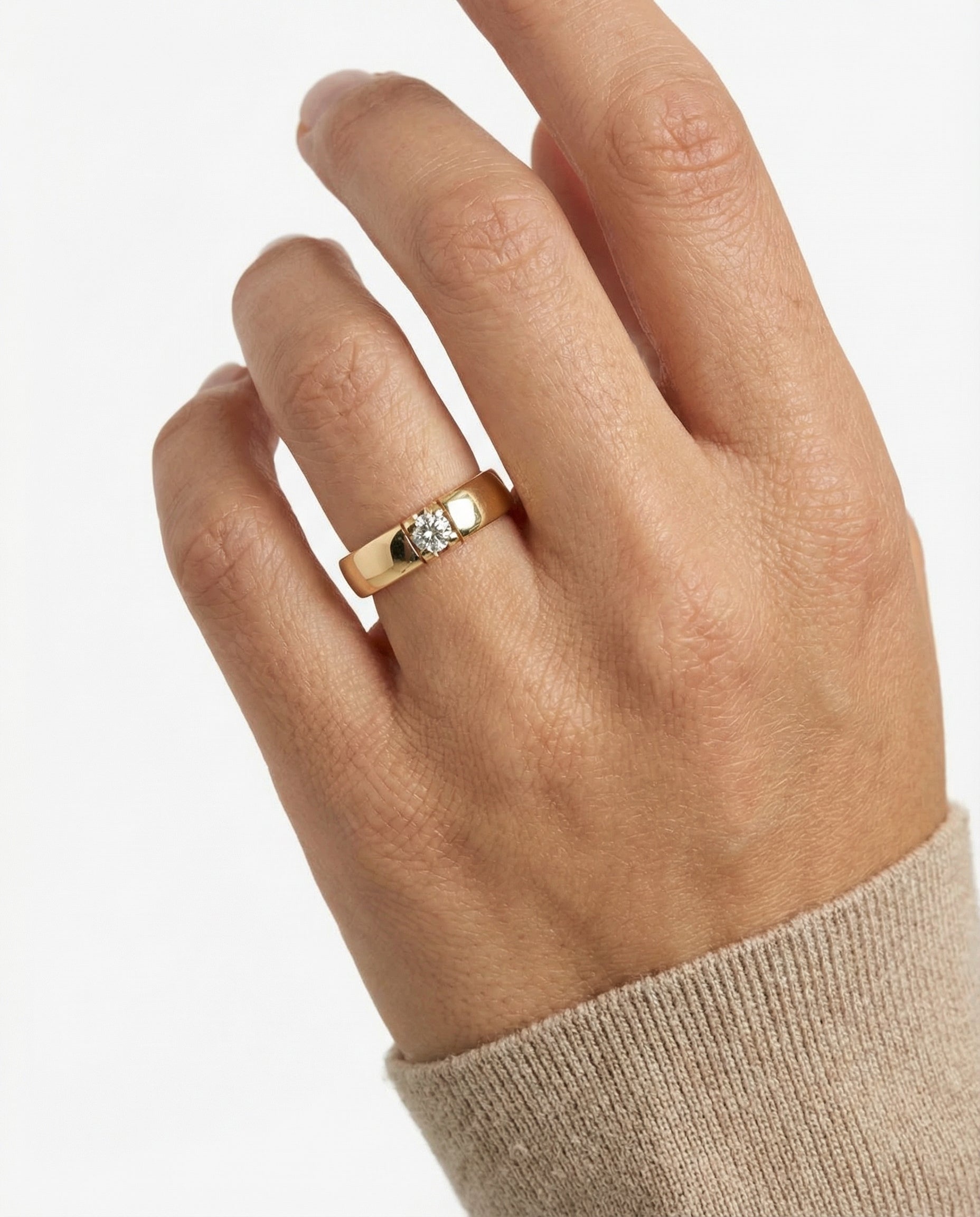 Alliancering i 14K guld med en diamant (0.13 ct), Str. 56, 5.69 g