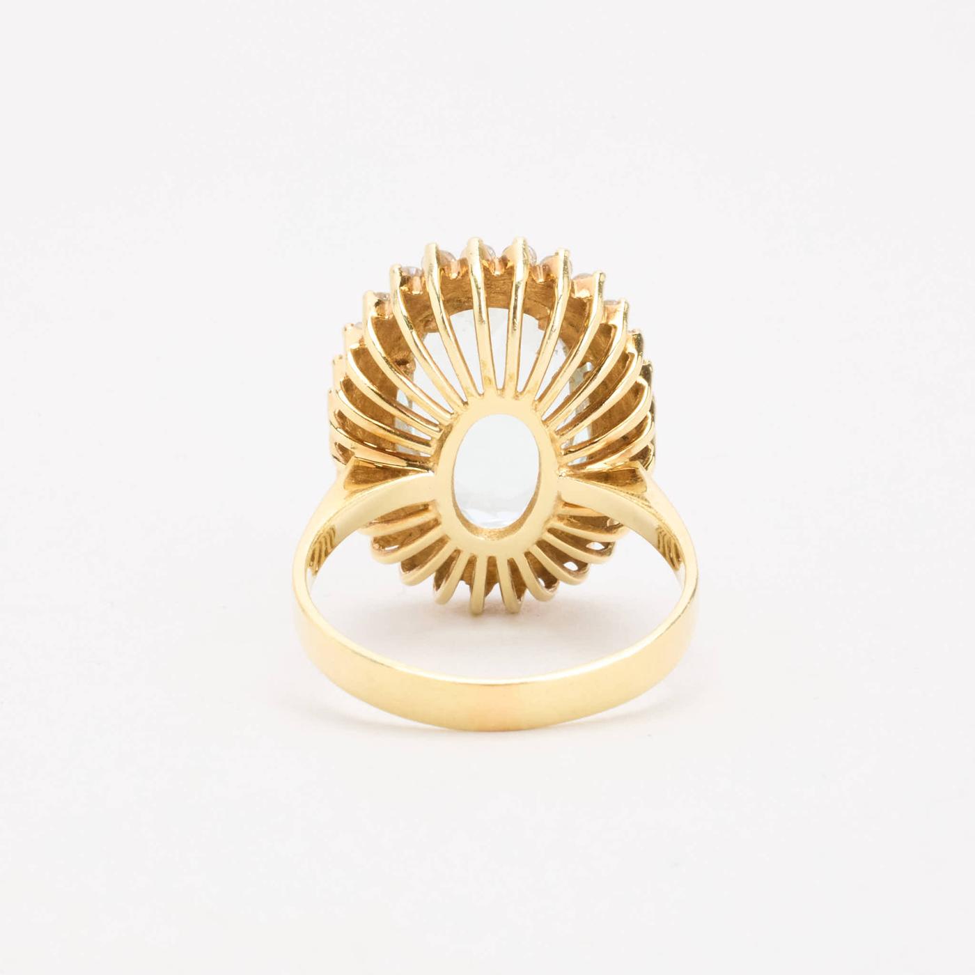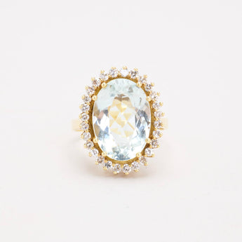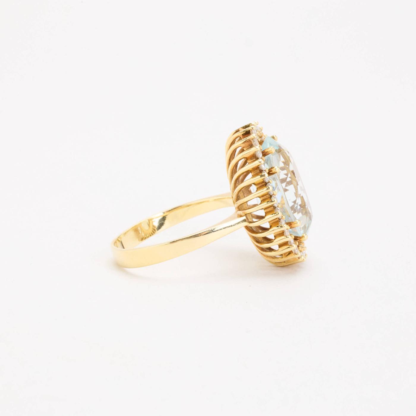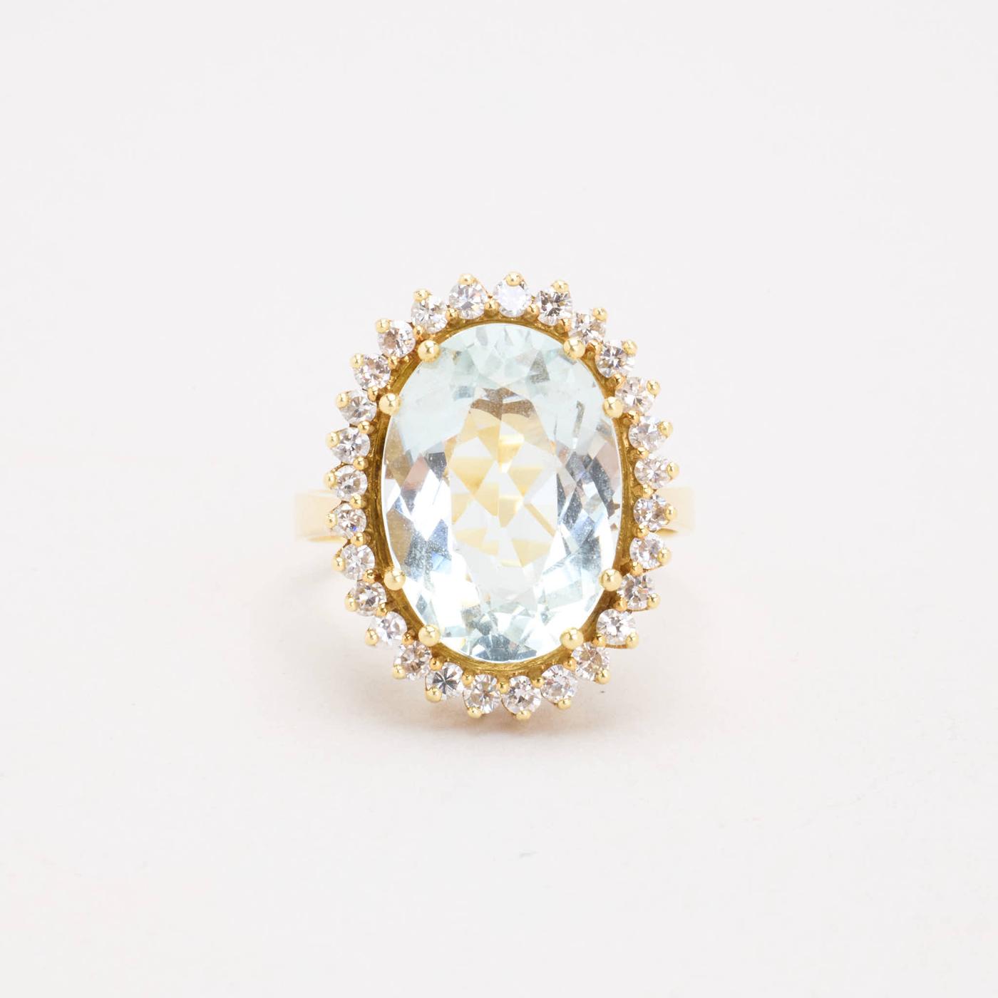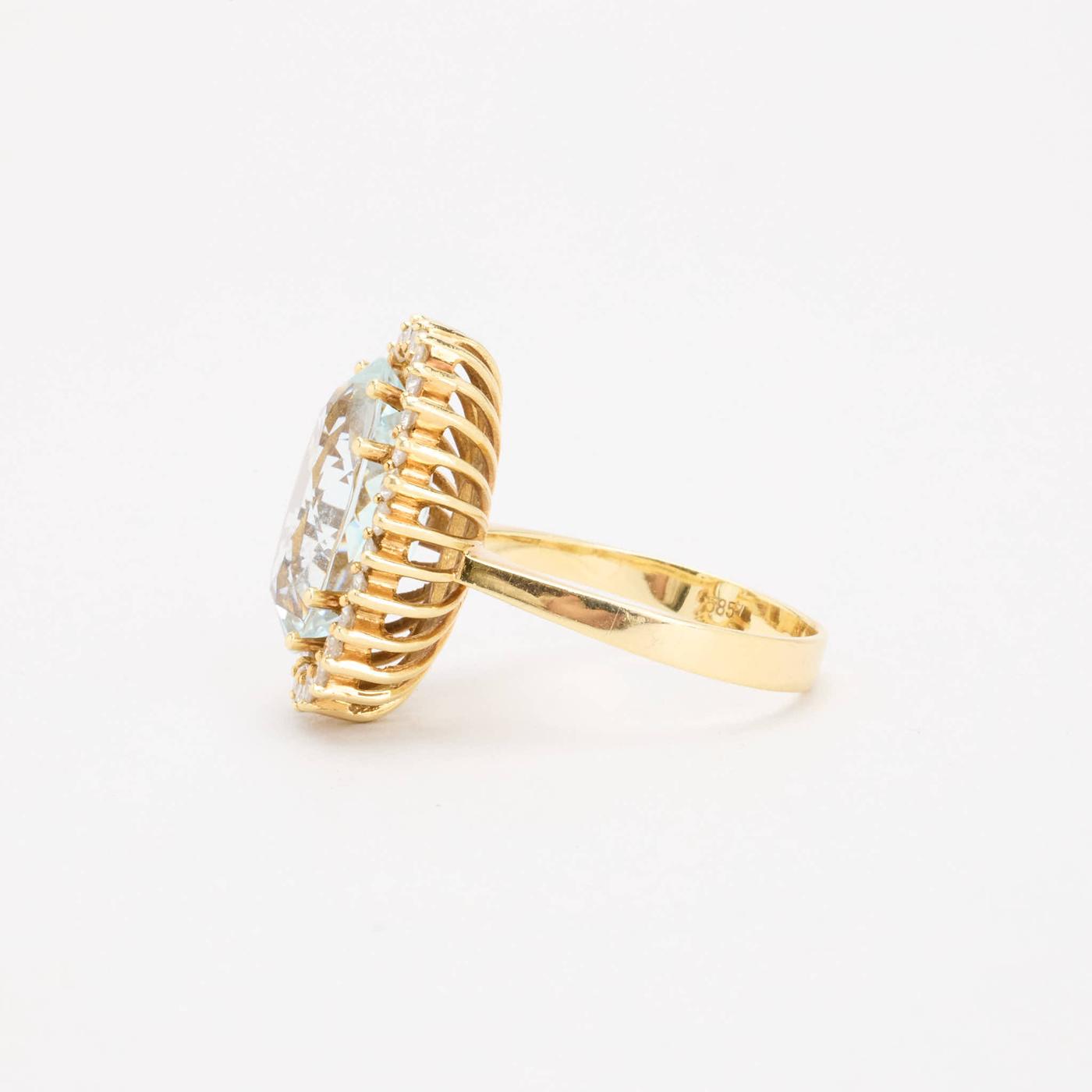 Rosetring i 14K guld med en diamant (0.91 ct) og en akvamarin, Str. 56, 6.82 g