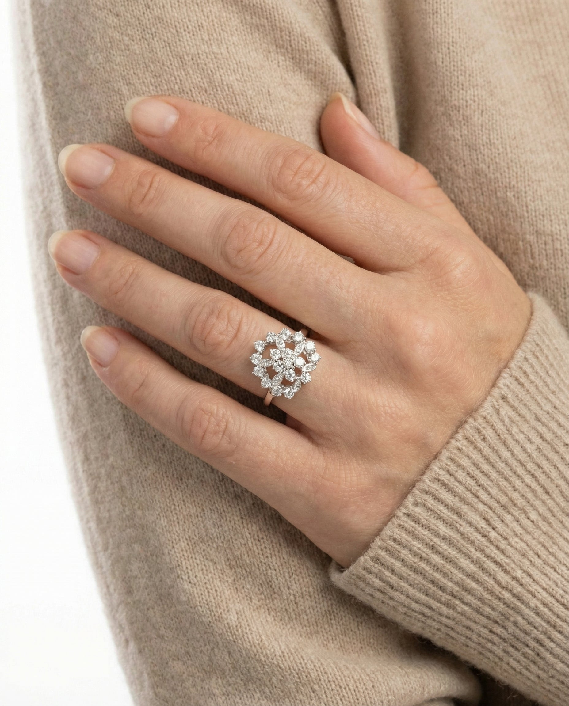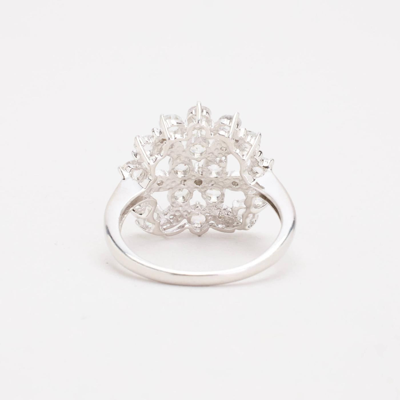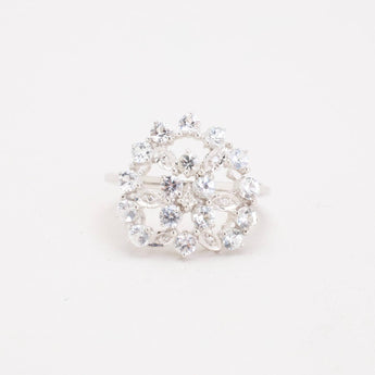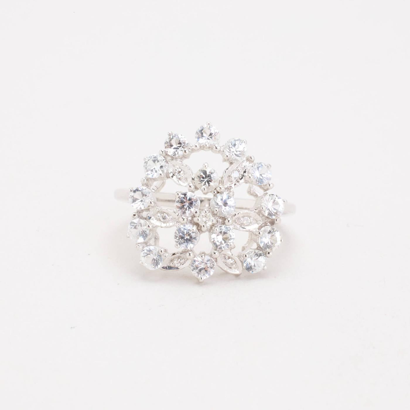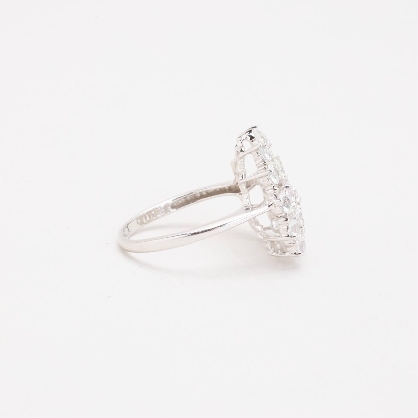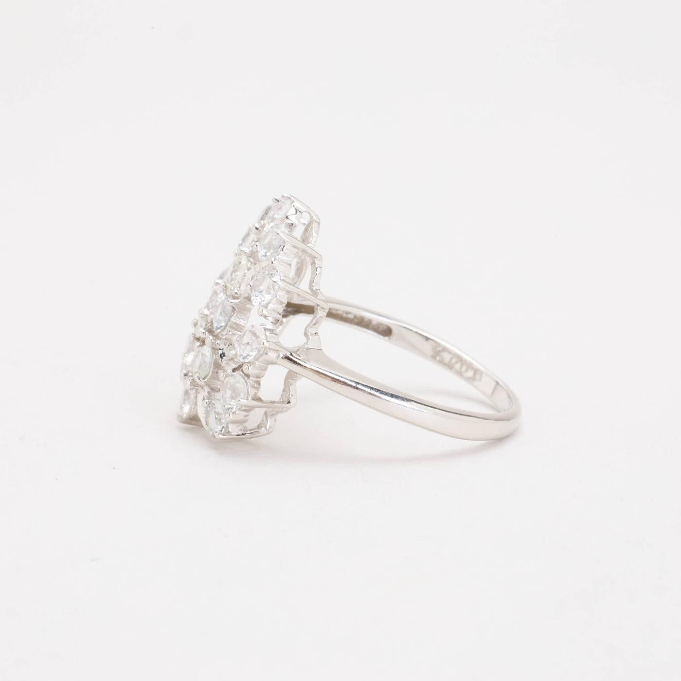 Clusterring i 9K hvidguld med hvid sten, str. 54, 3.52 g
