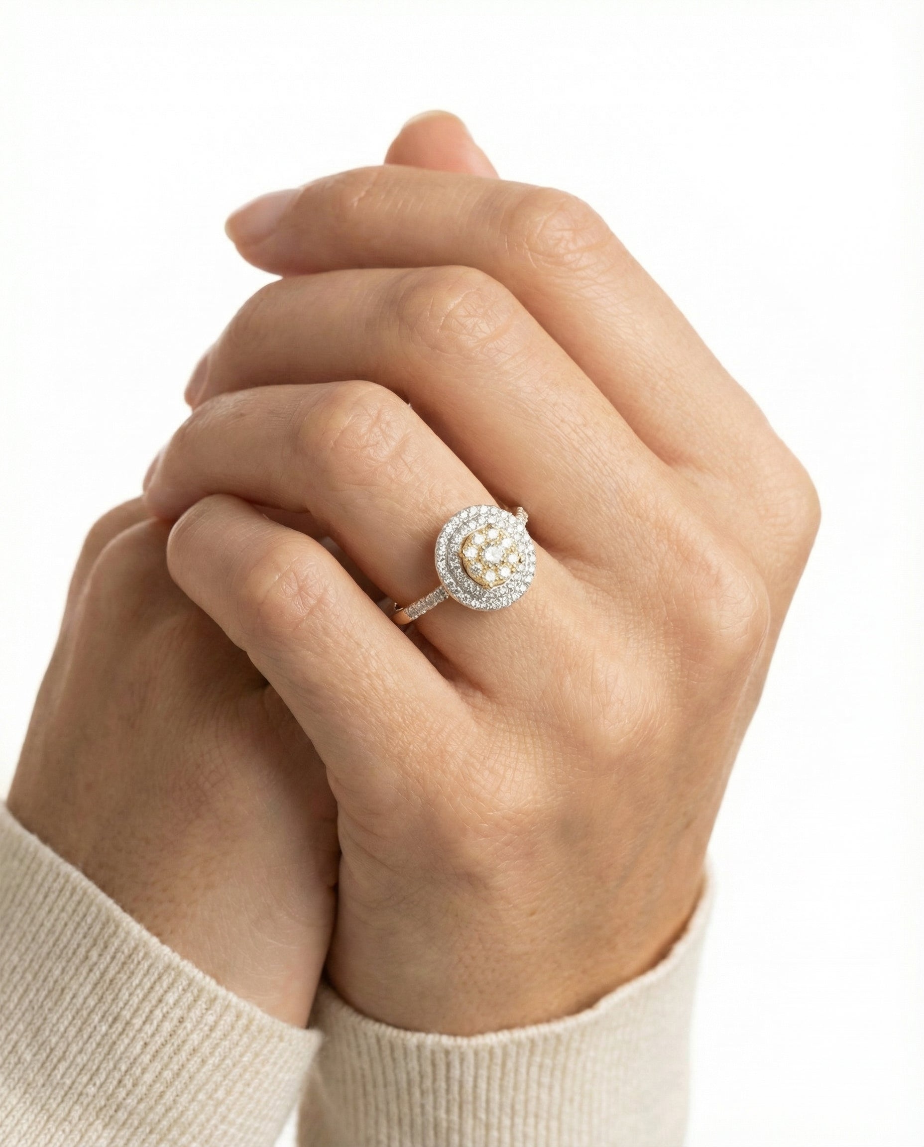 Illusion ring i 14K guld og hvidguld med diamanter (0.50 ct), Str. 56, 3.14 g