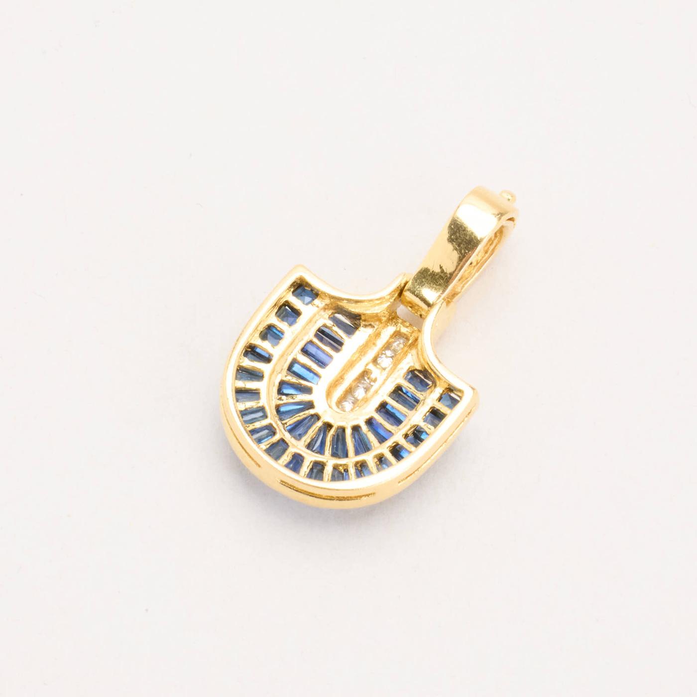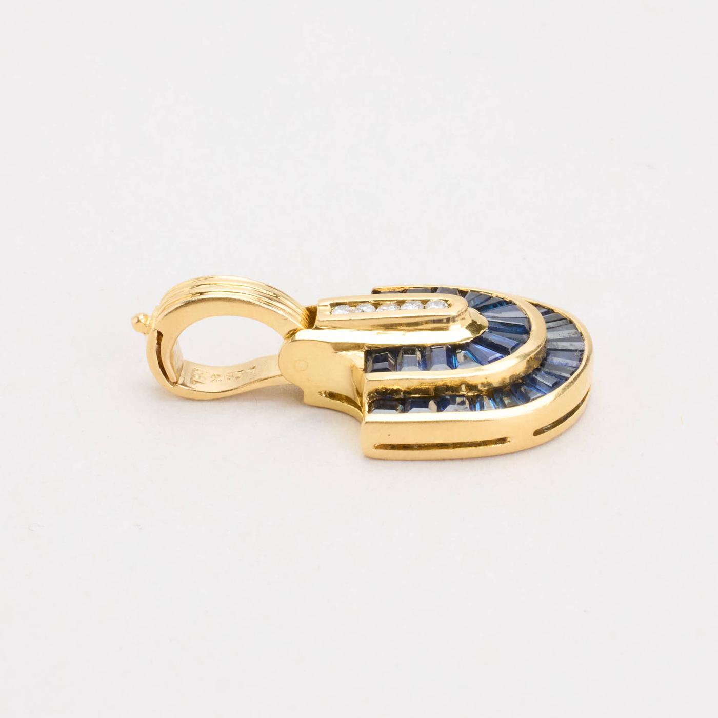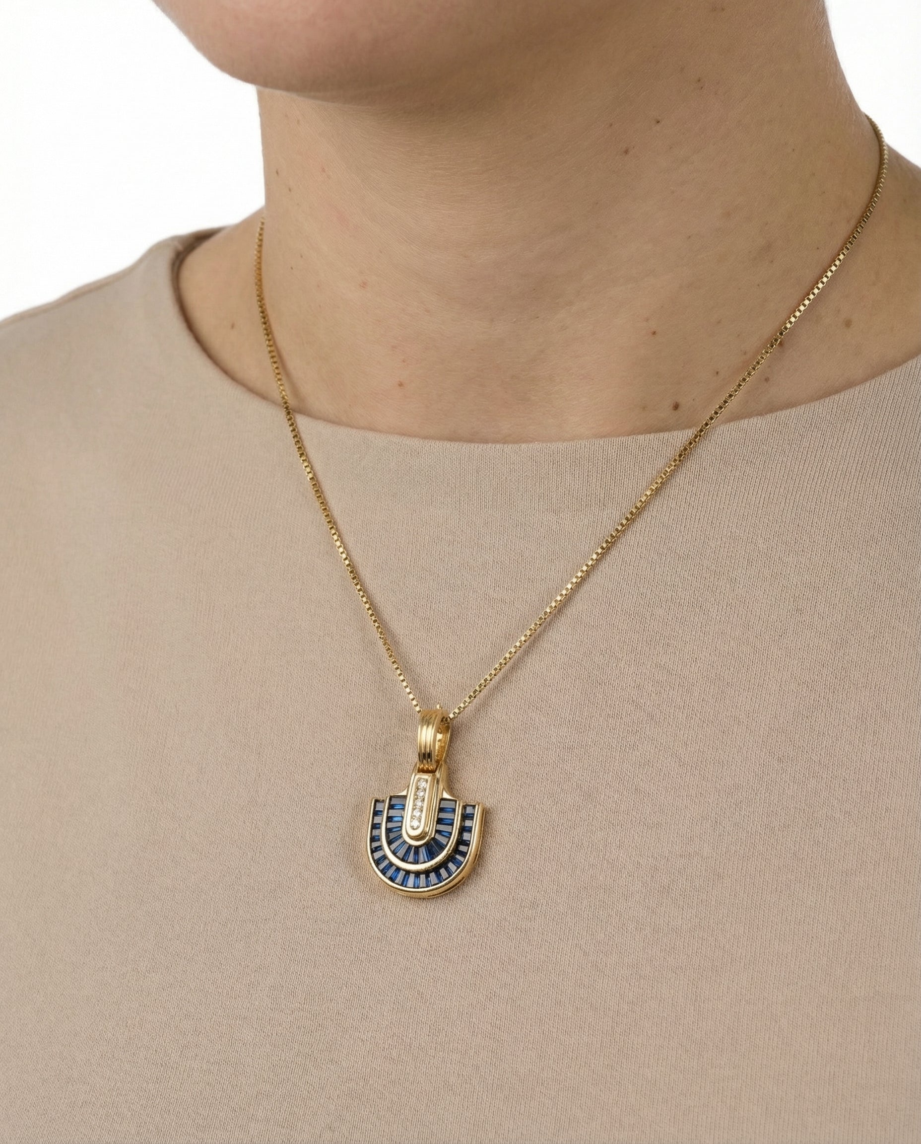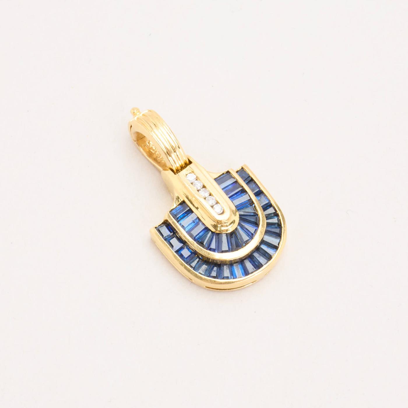 Vedhæng med diamant (0.05 ct) i 18K guld med blå sten, 2.5 cm,, 5.01 g