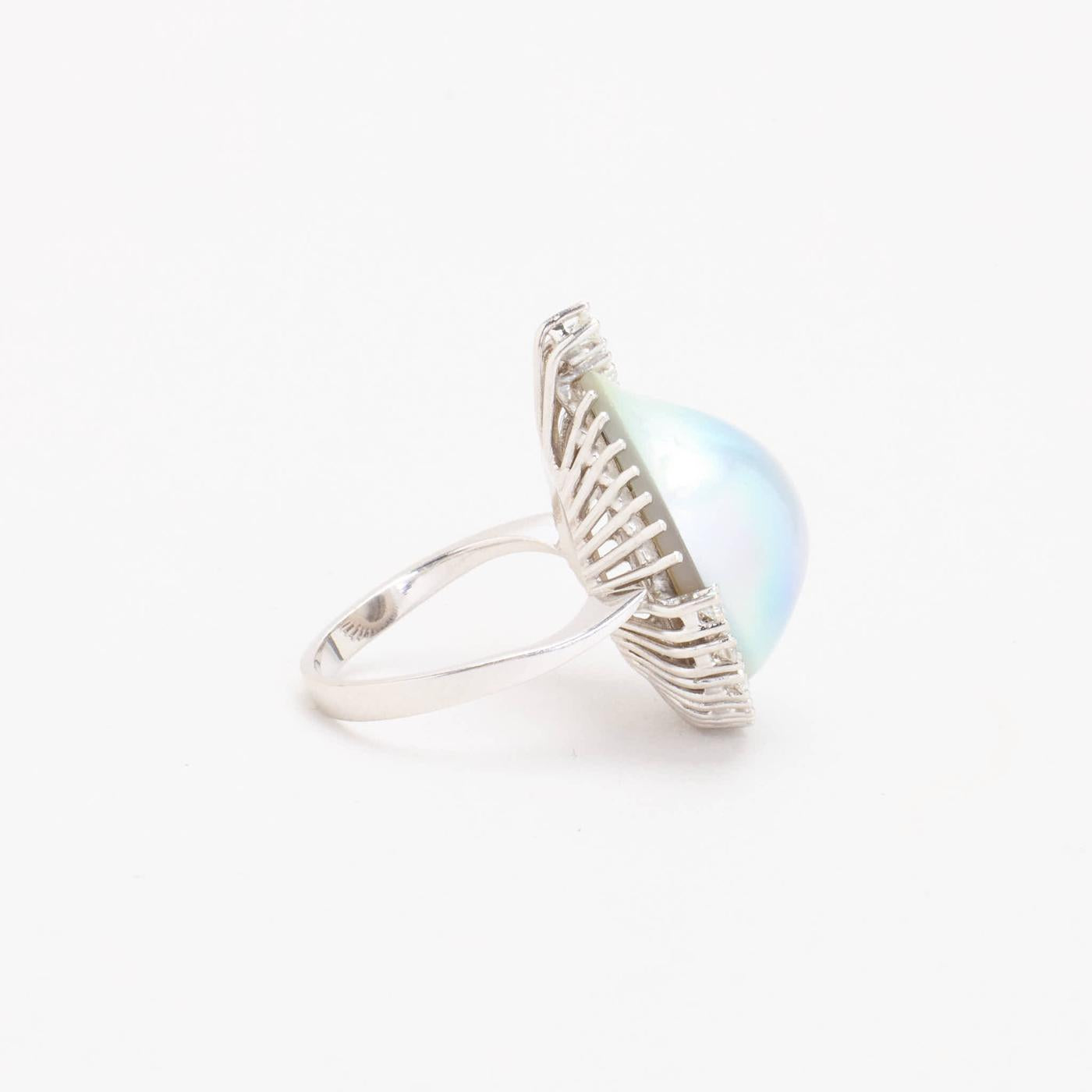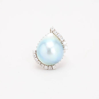 Perlering med diamant (0.69 ct) i 14K hvidguld med en perle, str. 56, 10.62 g